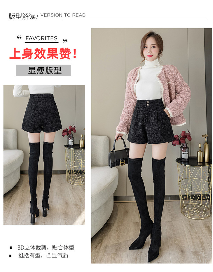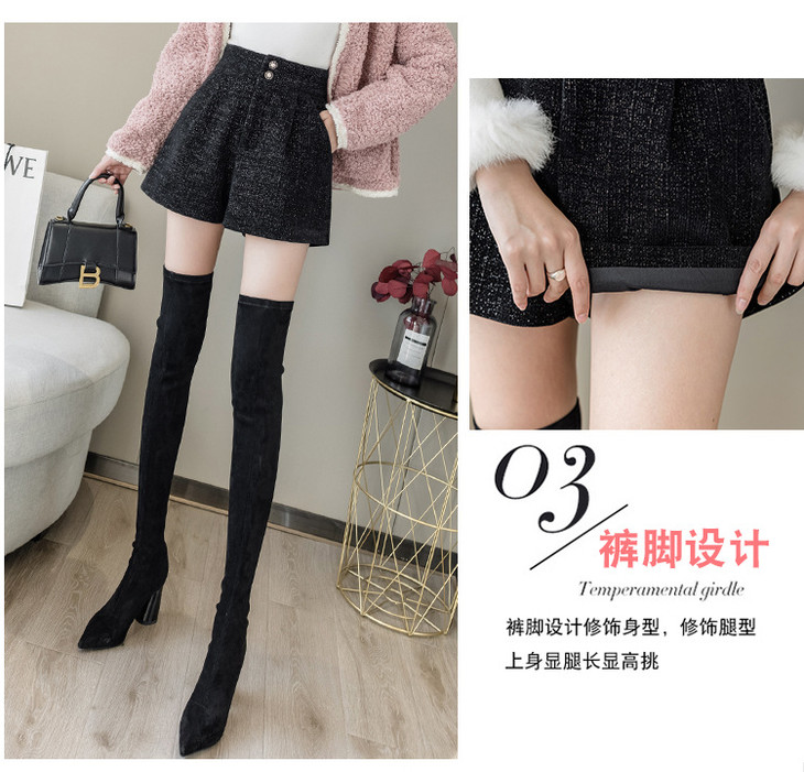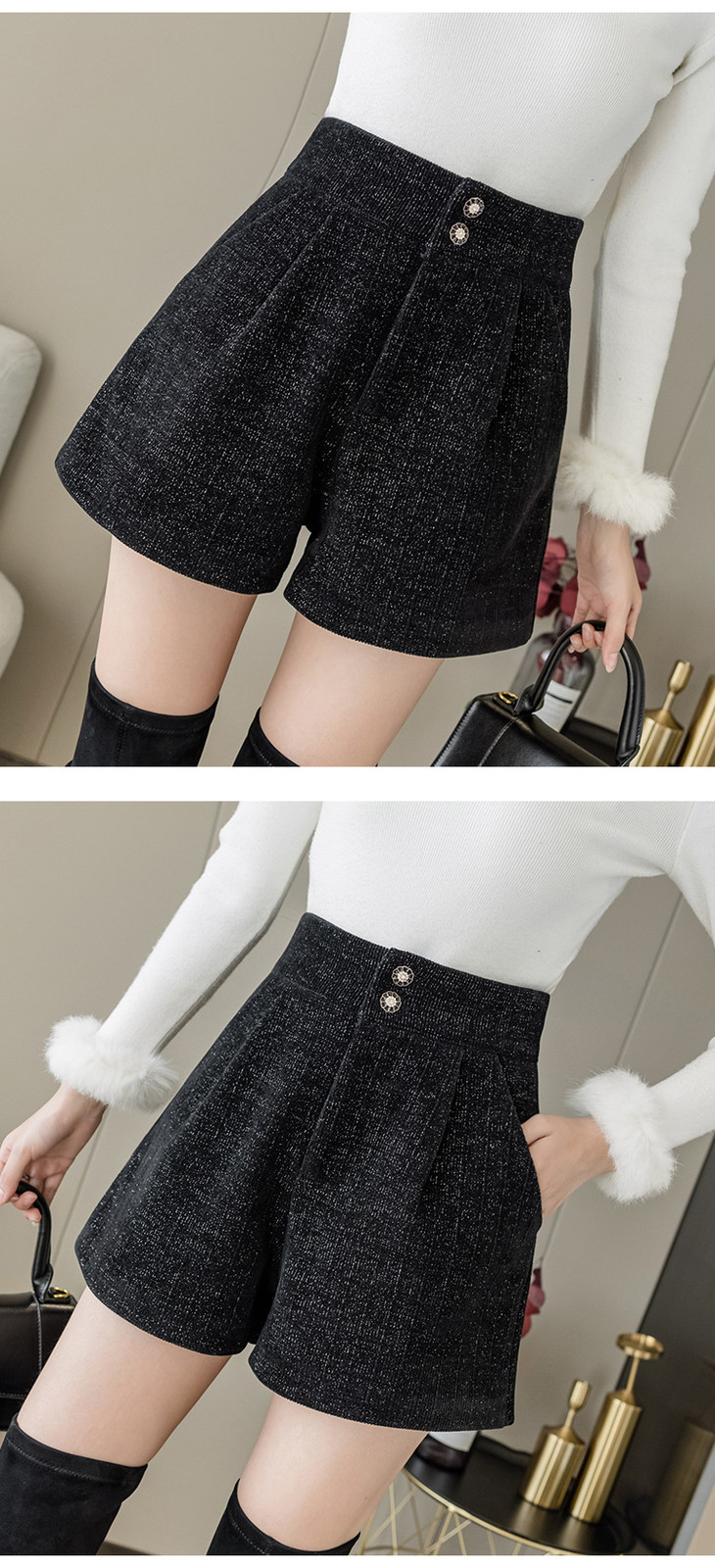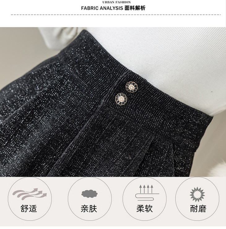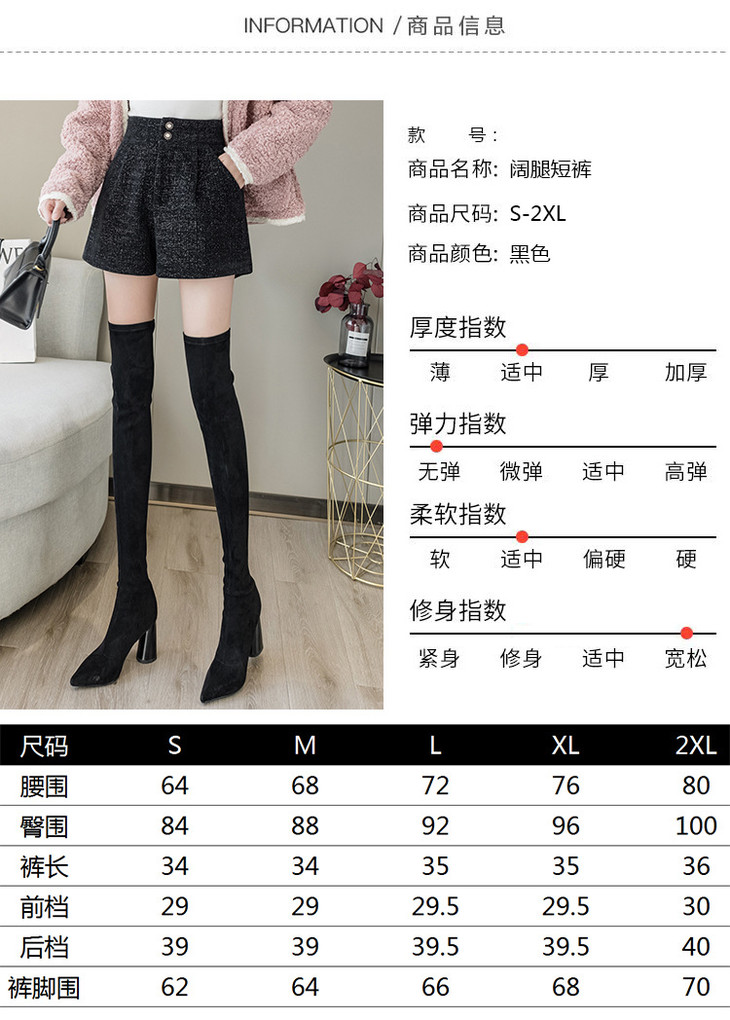 【服饰鞋包】时尚宽松显瘦外穿靴裤休闲简约雪呢绒亮丝阔腿短裤