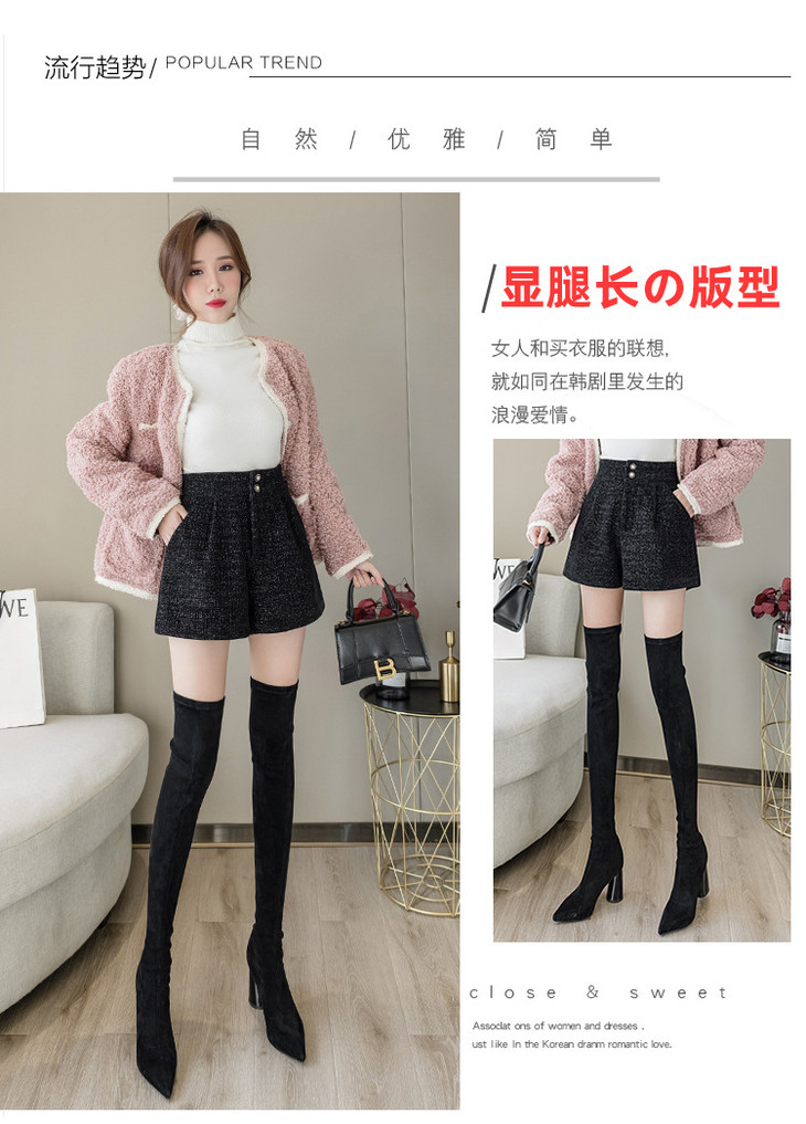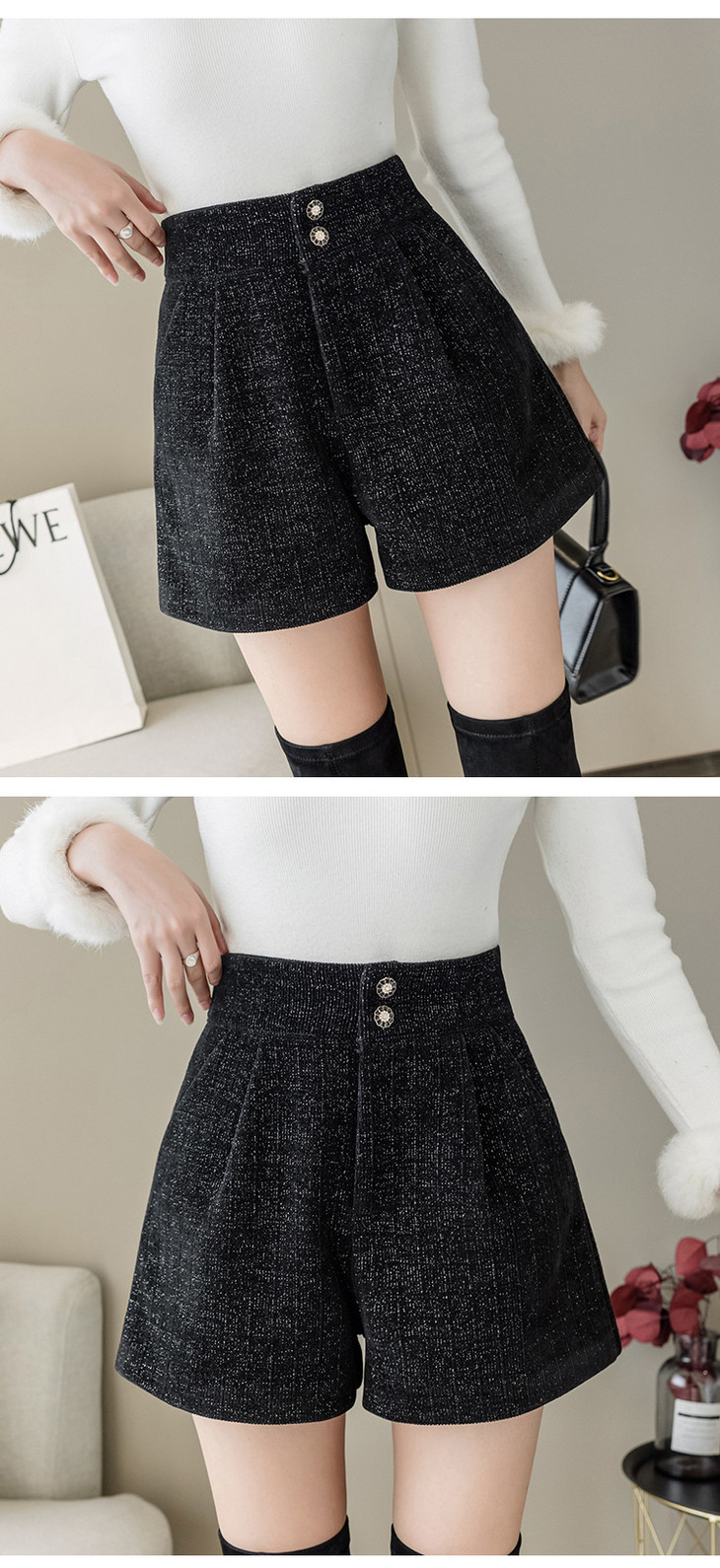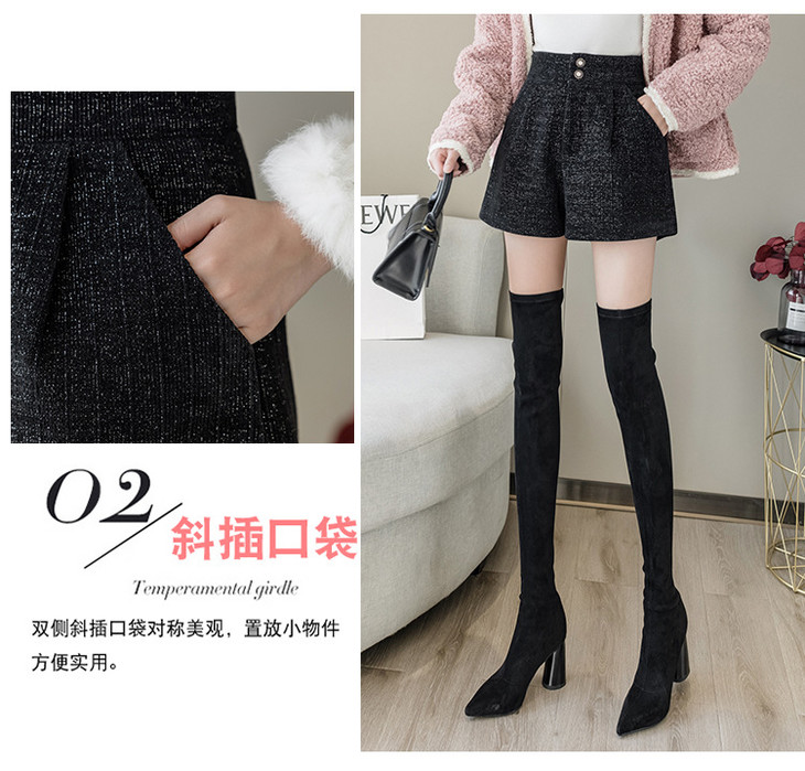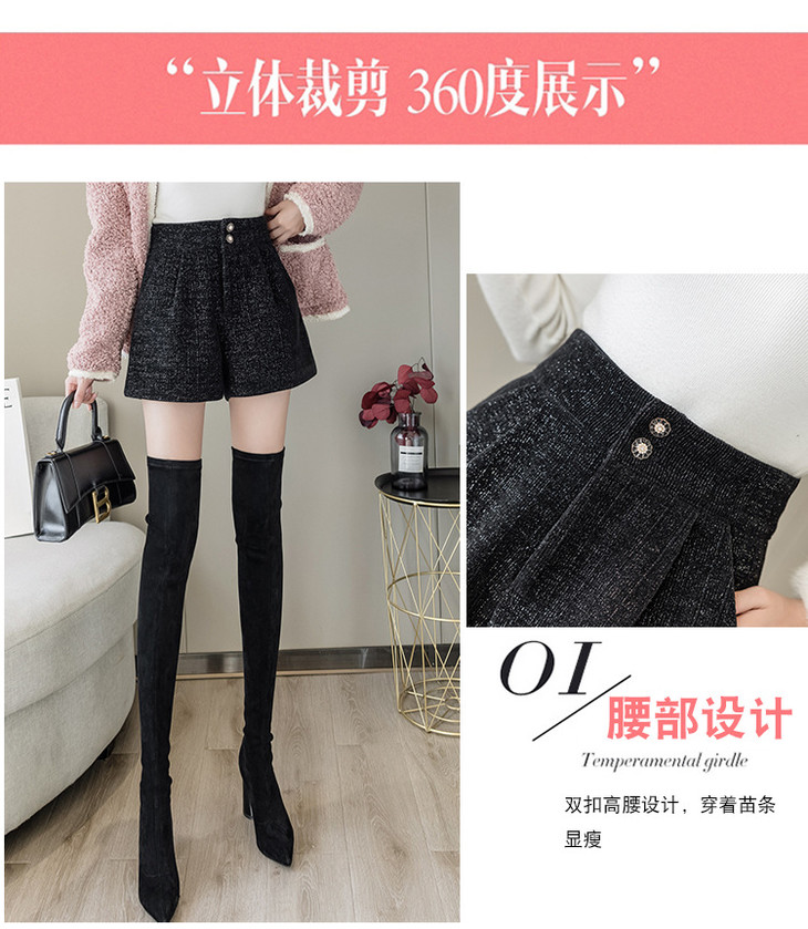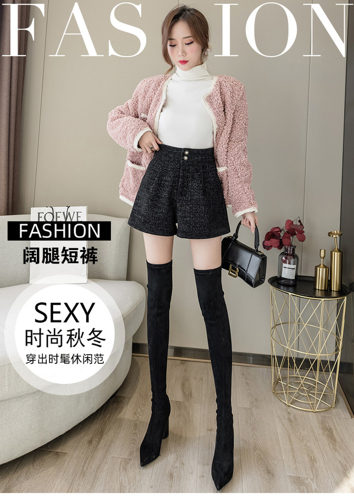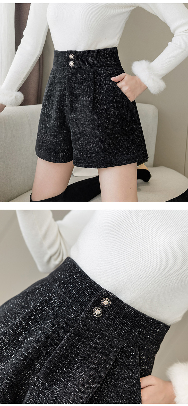 【服饰鞋包】时尚宽松显瘦外穿靴裤休闲简约雪呢绒亮丝阔腿短裤