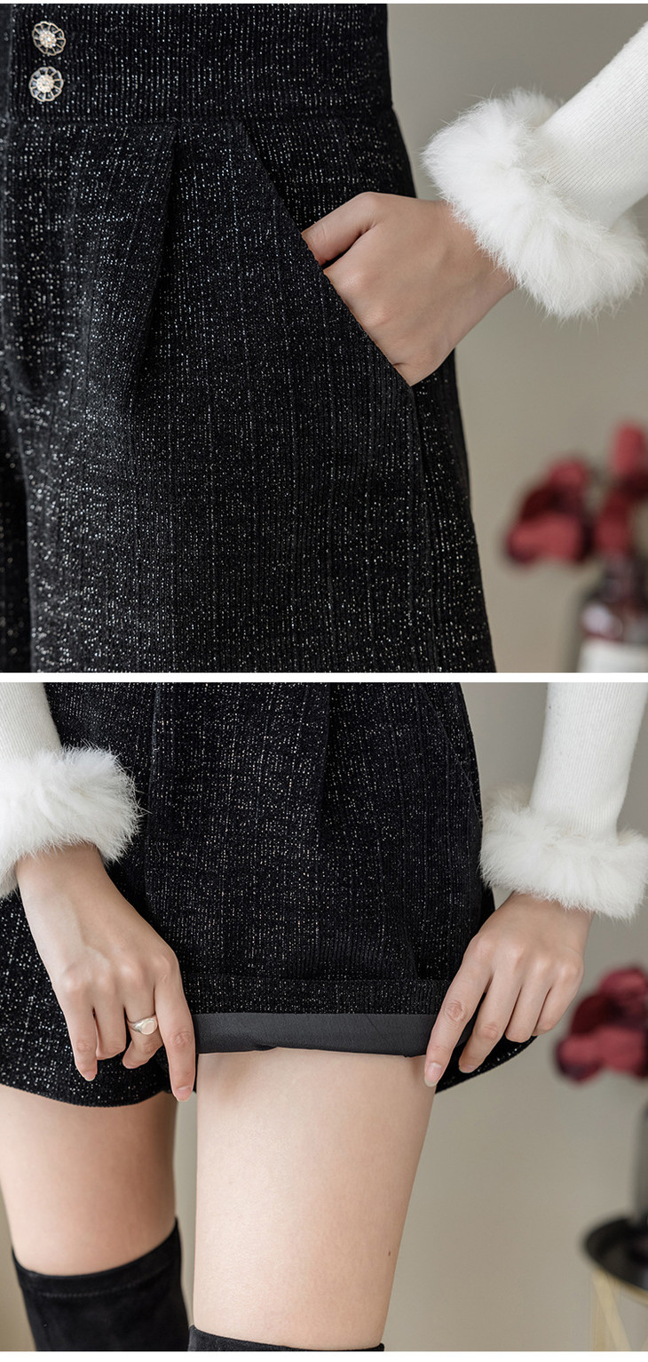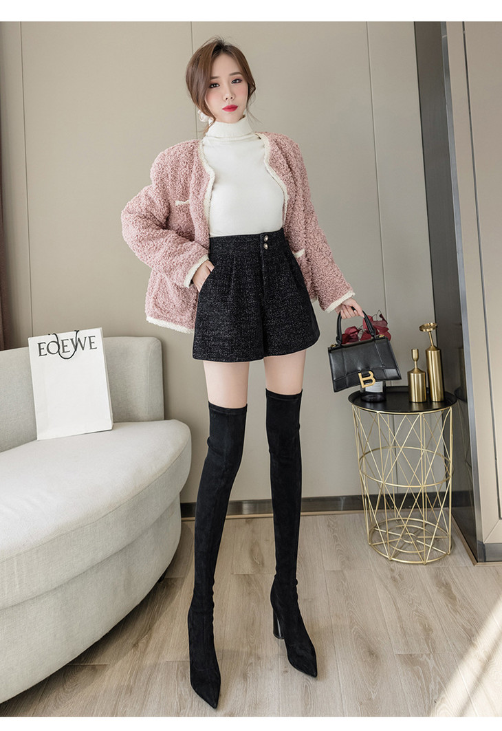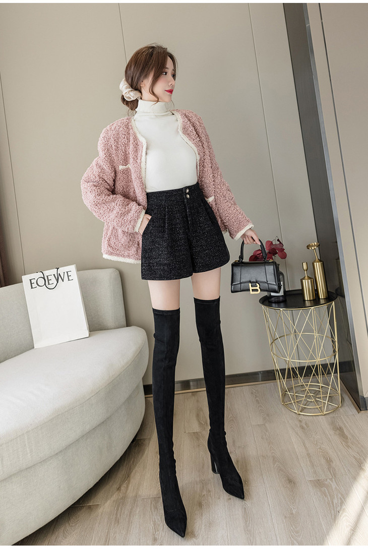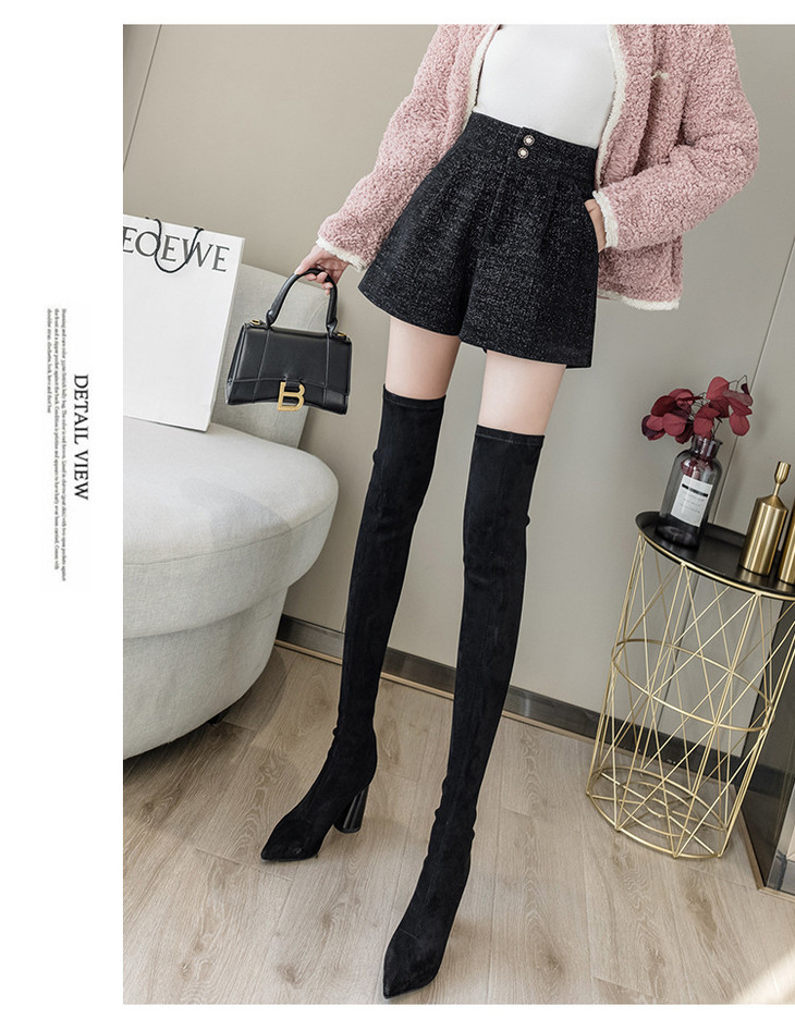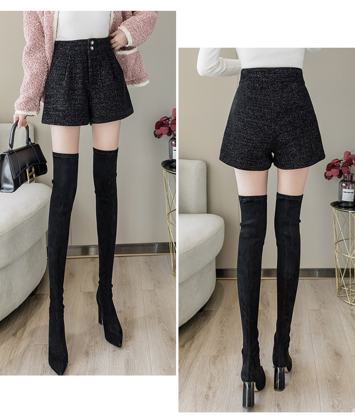 【服饰鞋包】时尚宽松显瘦外穿靴裤休闲简约雪呢绒亮丝阔腿短裤