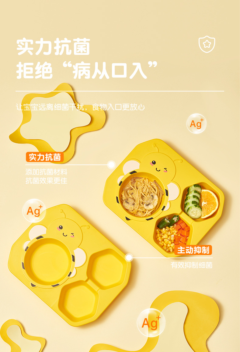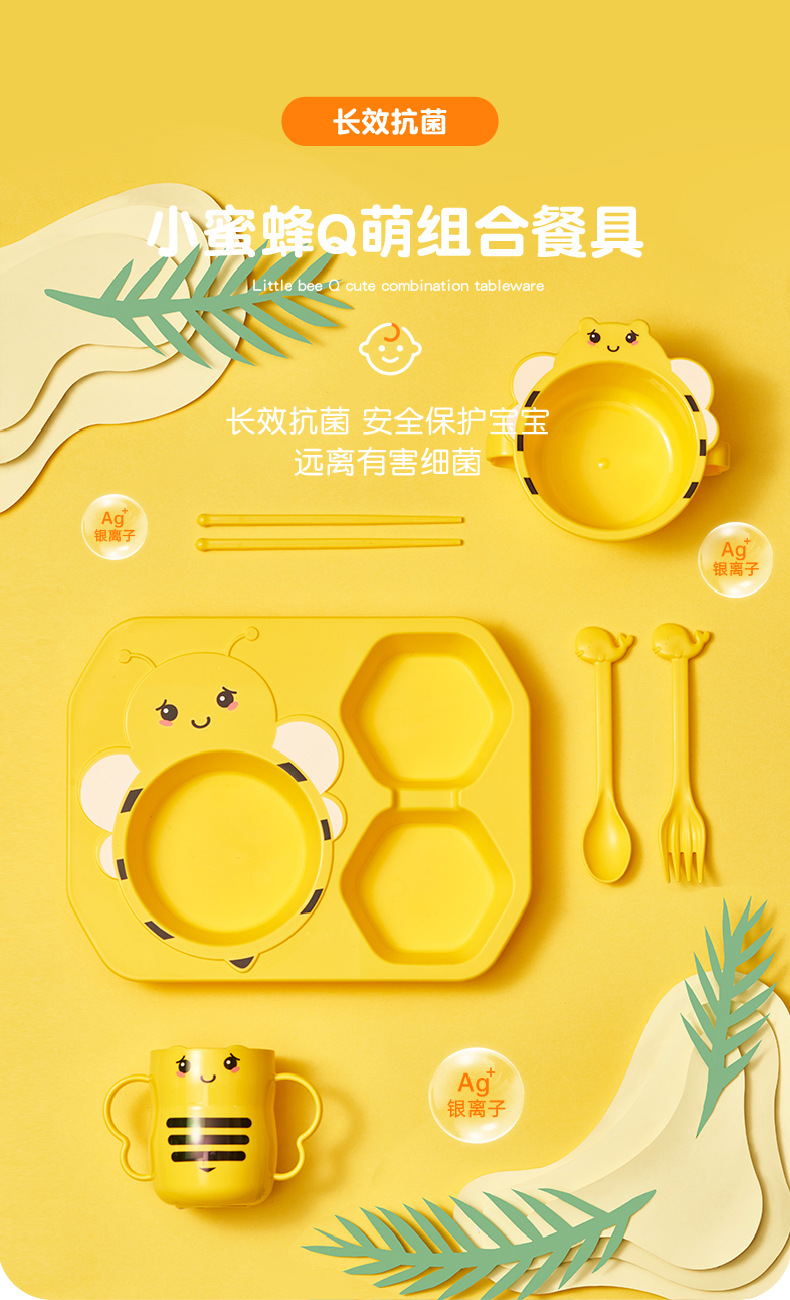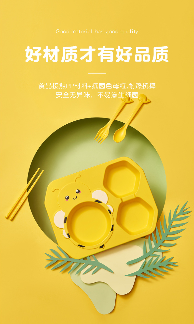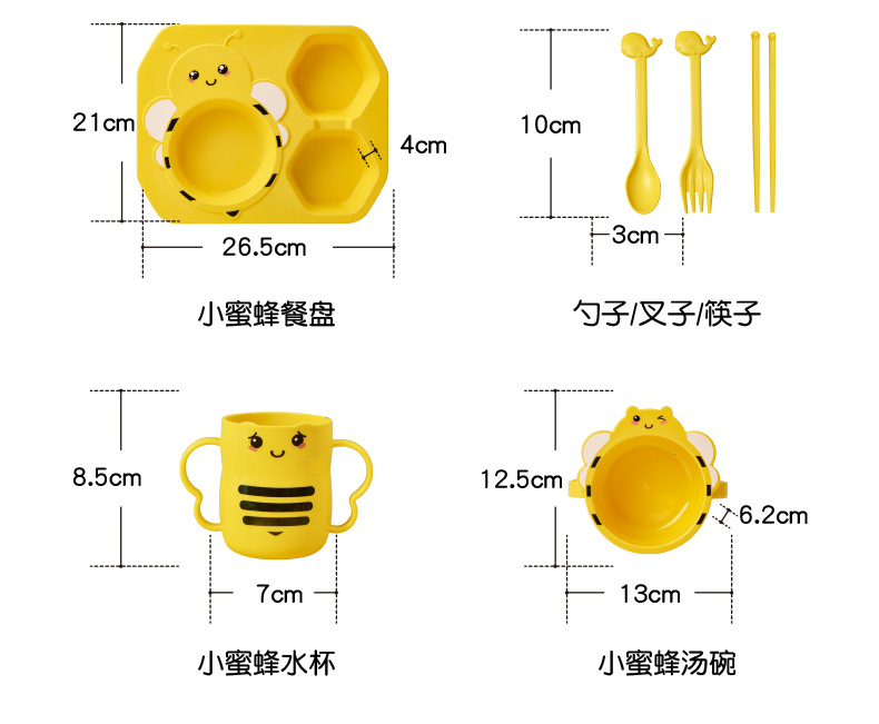 【母婴】儿童餐具6件套创意小蜜蜂造型分格家用餐盘PP耐摔杯碗勺叉筷