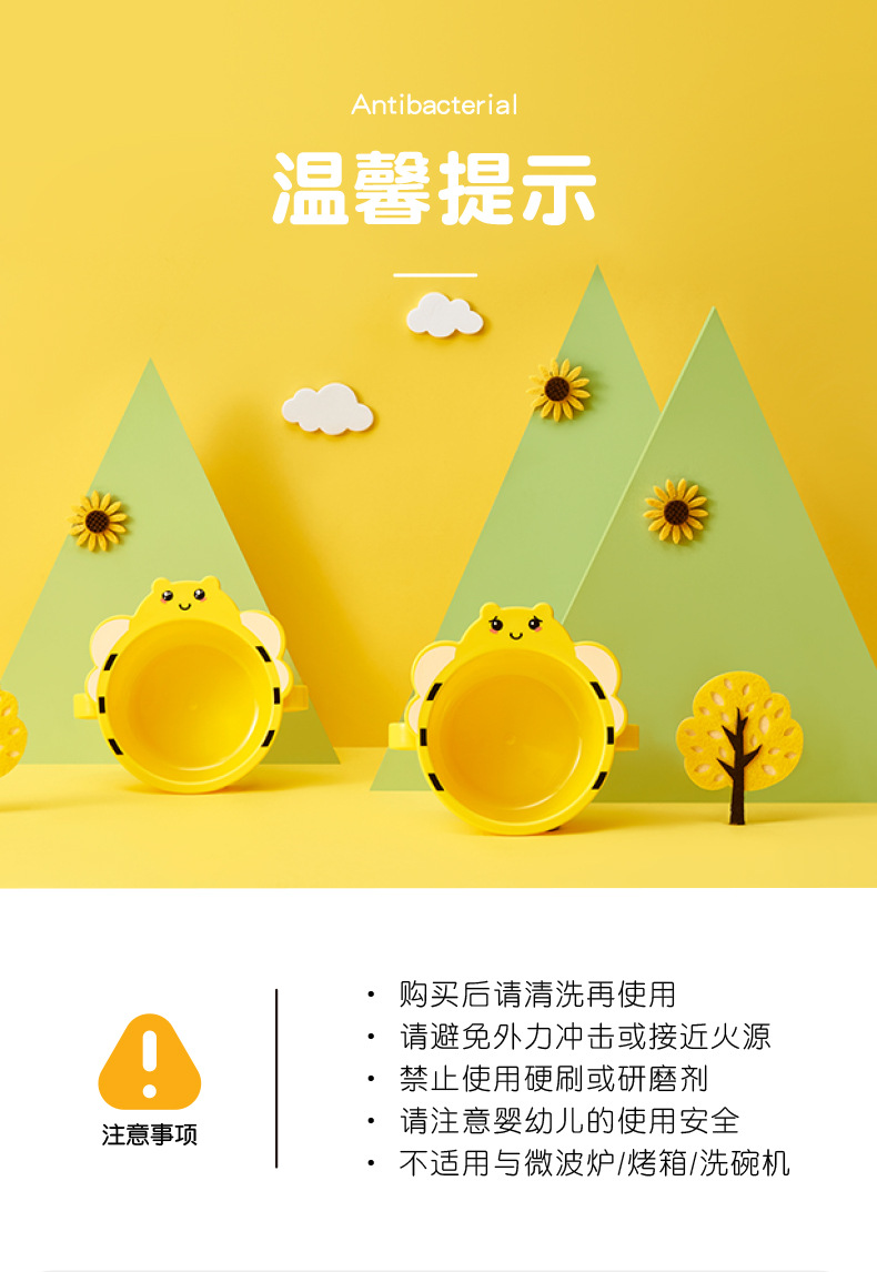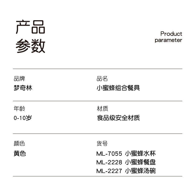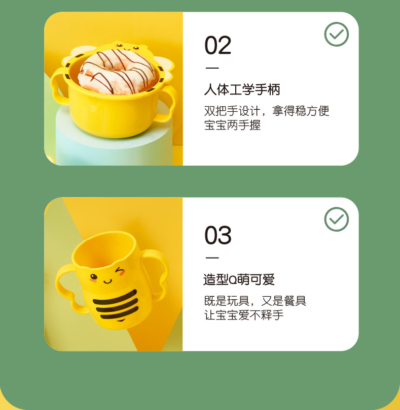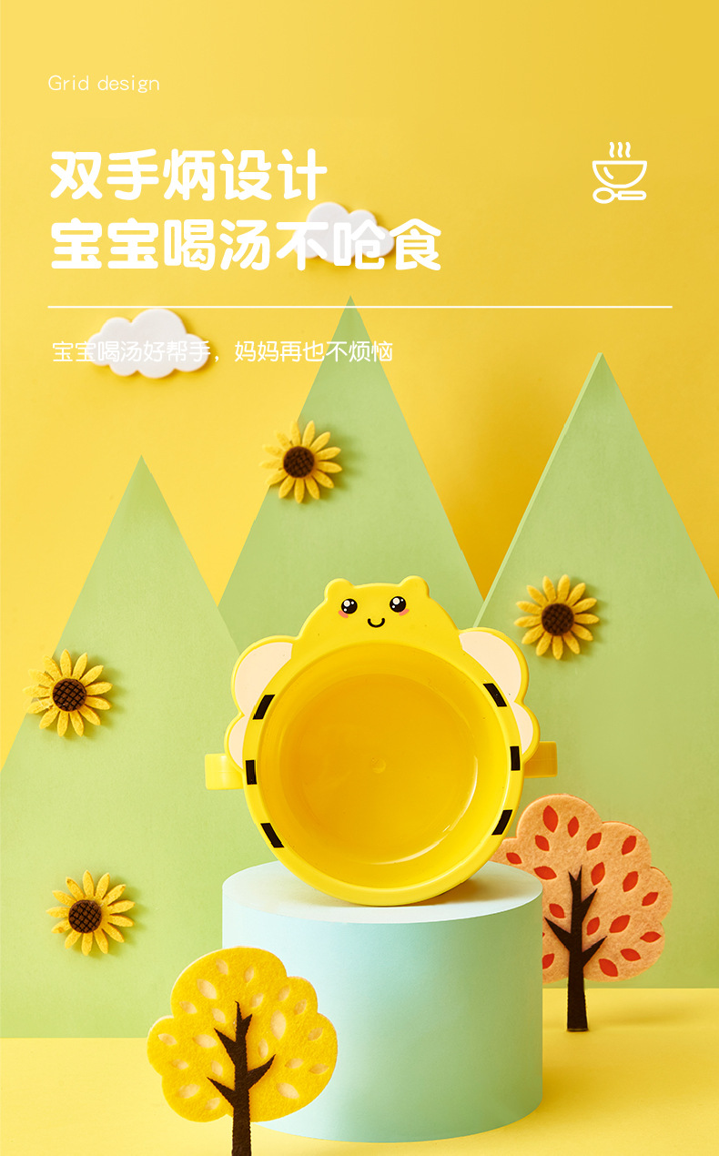 【母婴】儿童餐具6件套创意小蜜蜂造型分格家用餐盘PP耐摔杯碗勺叉筷