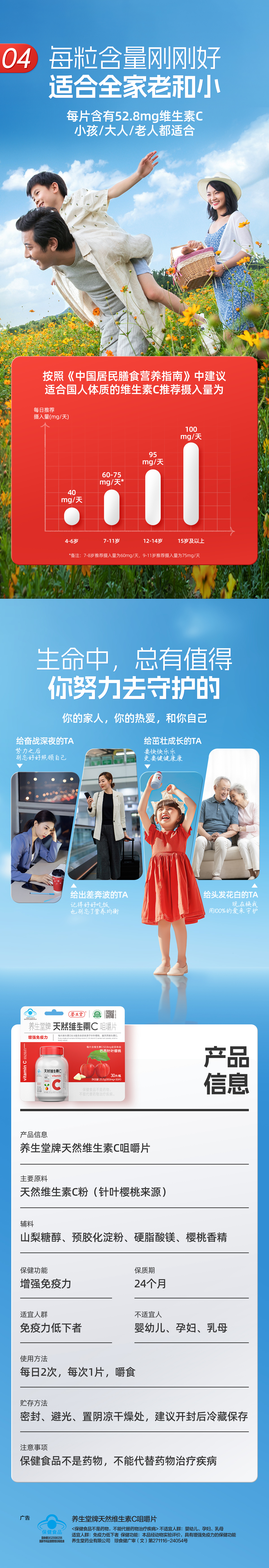 【三诺心选】养生堂天然维生素VE100粒+VC30片