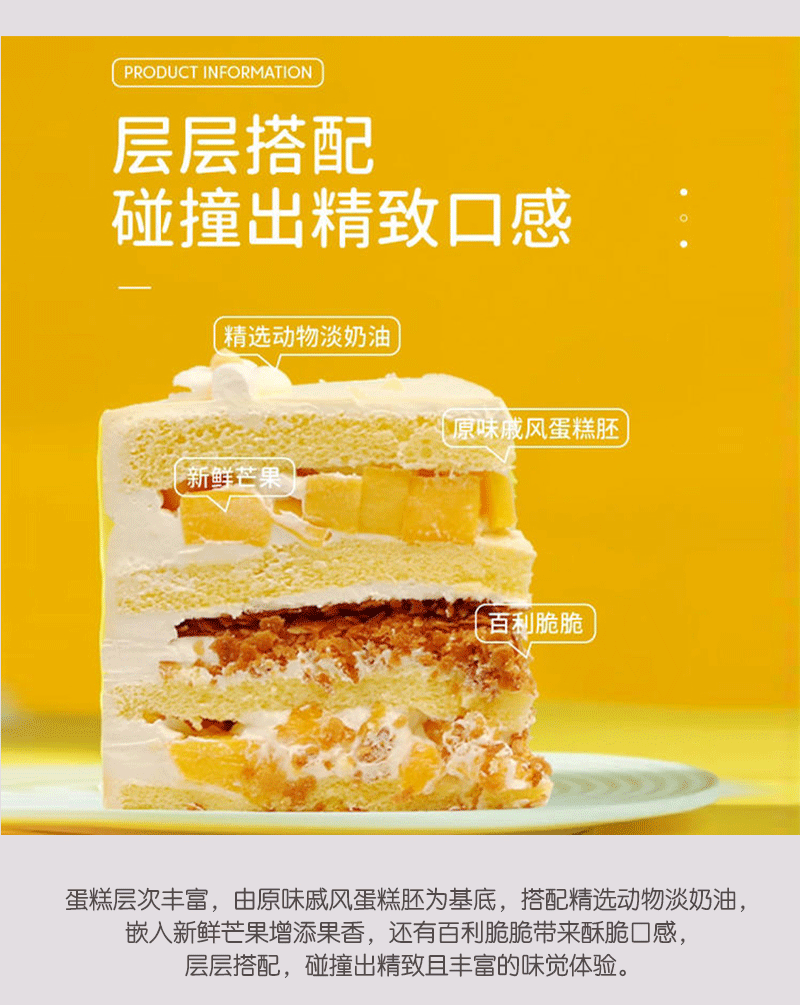 我们坚持当日接单、新鲜现做,拒绝罐头果肉与植物奶油,让每一口都保留食材本真的鲜活清甜。生活需要一点甜,我们的蛋糕不只是一份甜品,更是传递快乐的仪式感,为你带来视觉与味蕾的双重满足~
