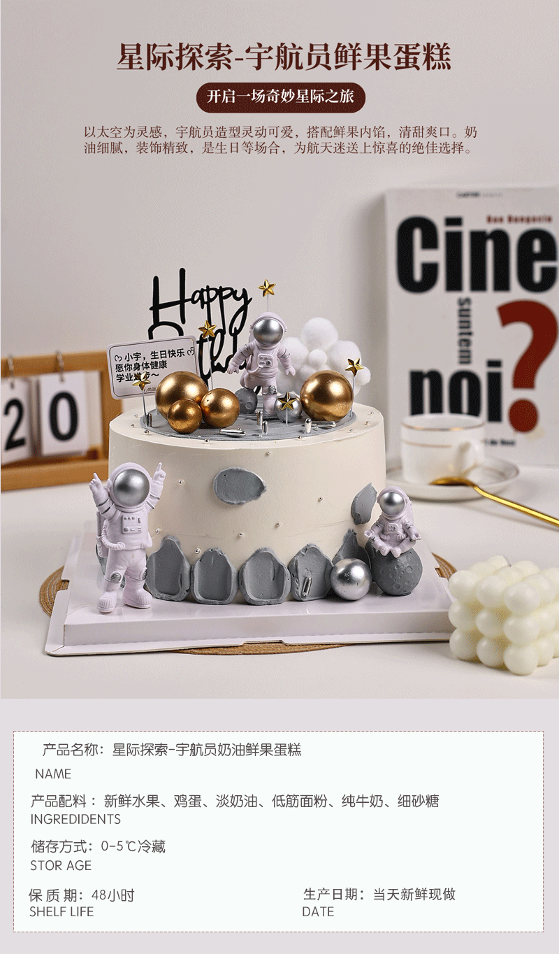 星际探索-宇航员奶油鲜果蛋糕,聆听你生日的愿望,助力宇宙航天梦想【惠州】
