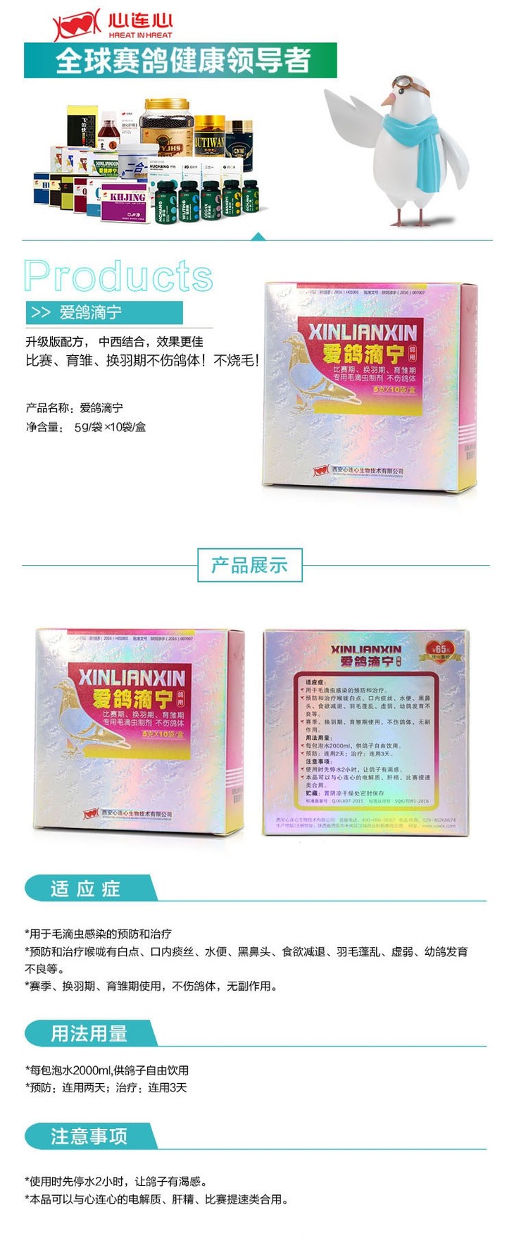 【爱鸽滴宁】 比赛、育雏、换羽期不伤鸽体!不烧毛!(心连心)