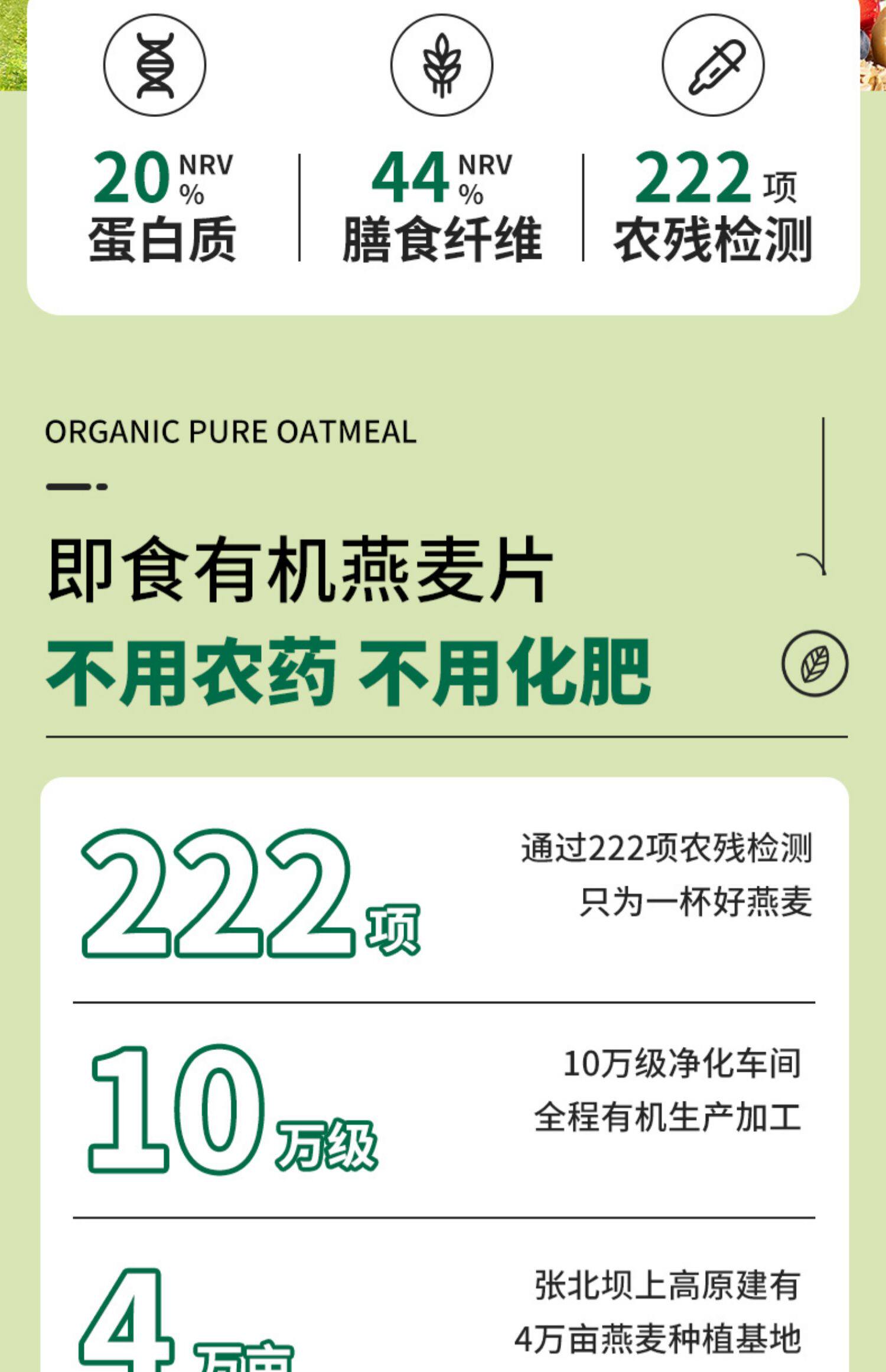 【福利购】420g第三主粮有机燕麦片 即食营养早餐冲泡免煮老人饱腹代餐