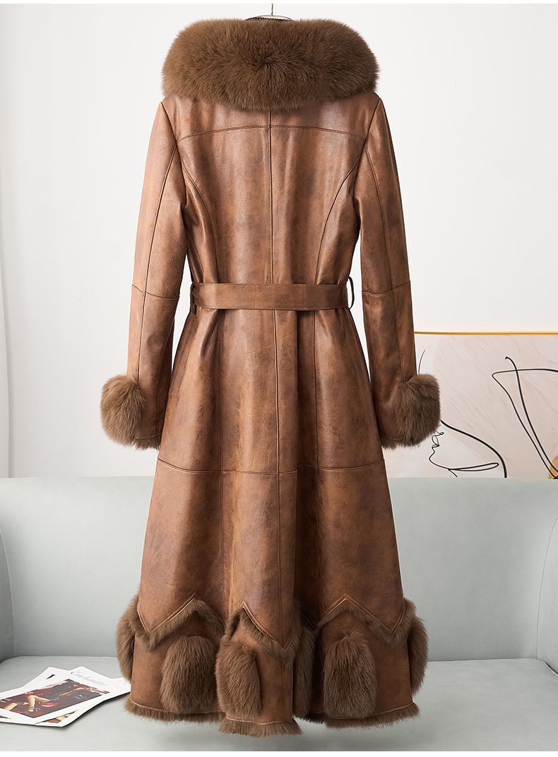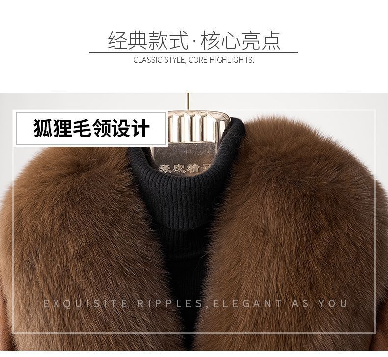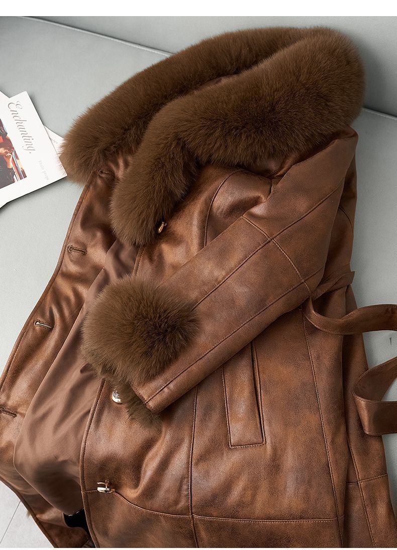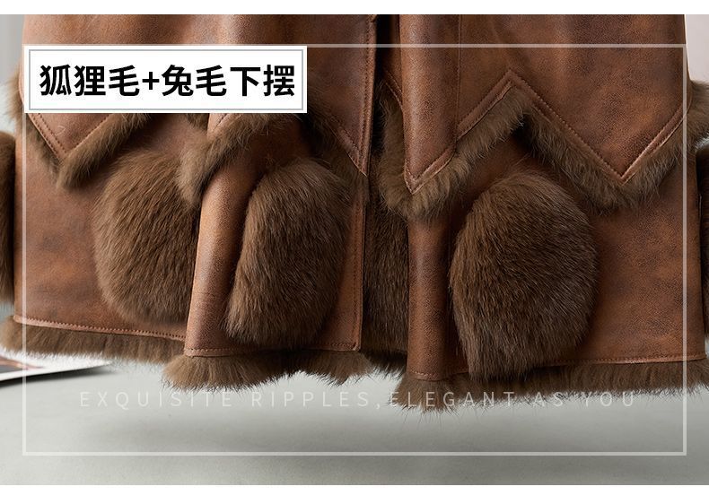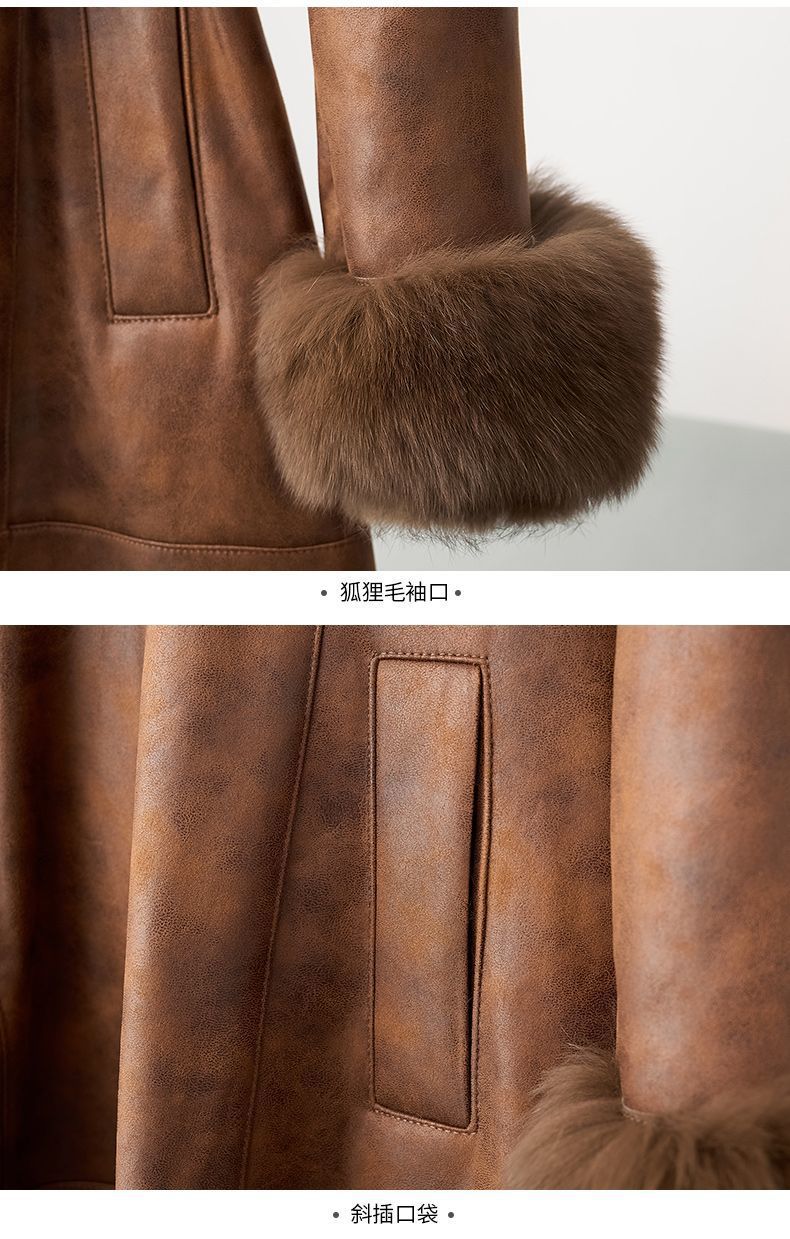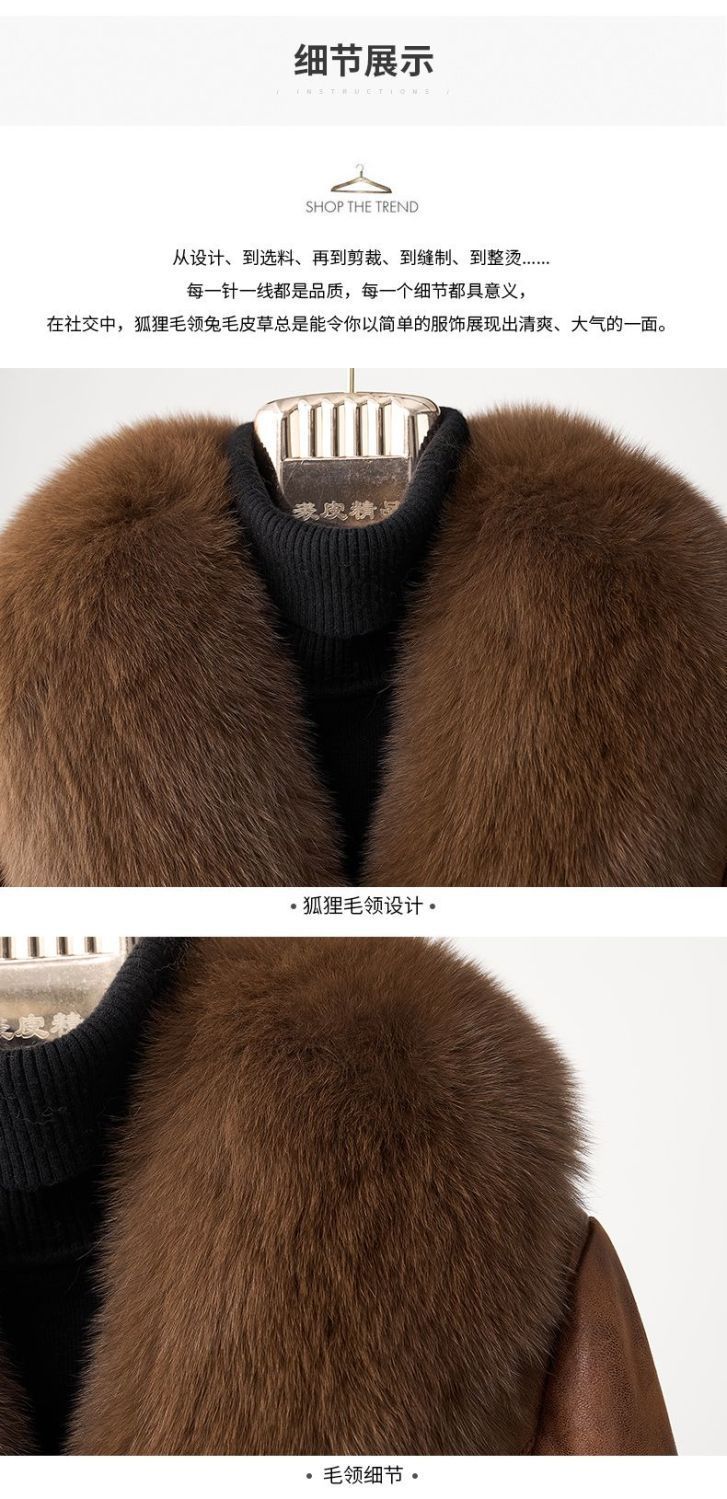 HH OH26185C狐狸毛领皮草外套系带内里兔皮毛一体大衣