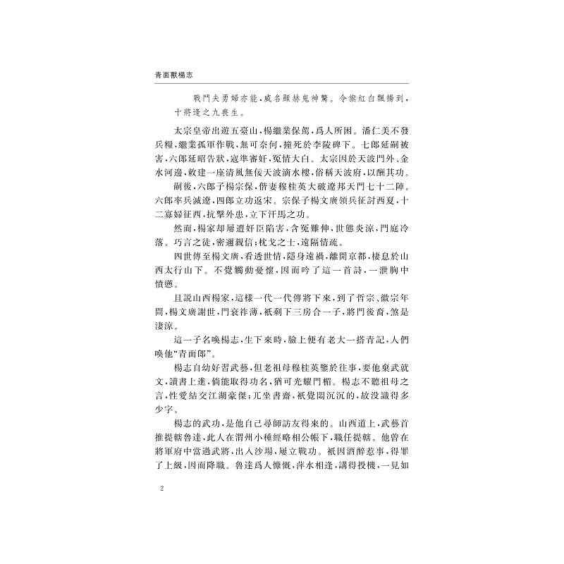 本书是据民间的杨志传说编演的章回小说,叙述杨志离开天波府的曲折经历。杨志既有家传刀、枪、剑等十八般兵器的精湛武技,又有义兄鲁智深私授的天下diyi棍——“疯魔棍”法,故他能笑傲江湖、震慑顽凶、横扫奸徒。在这些方面,书中都有绘形绘色的描写。刀光棍影中,倒下了独脚大盗、蒙面淫僧、马上悍将、店中凶妇等。本书集中并糅合了有关杨志的大量素材,细腻生动地塑造了一个武艺高强、正直无私、疾恶如仇的英雄形象——杨志。