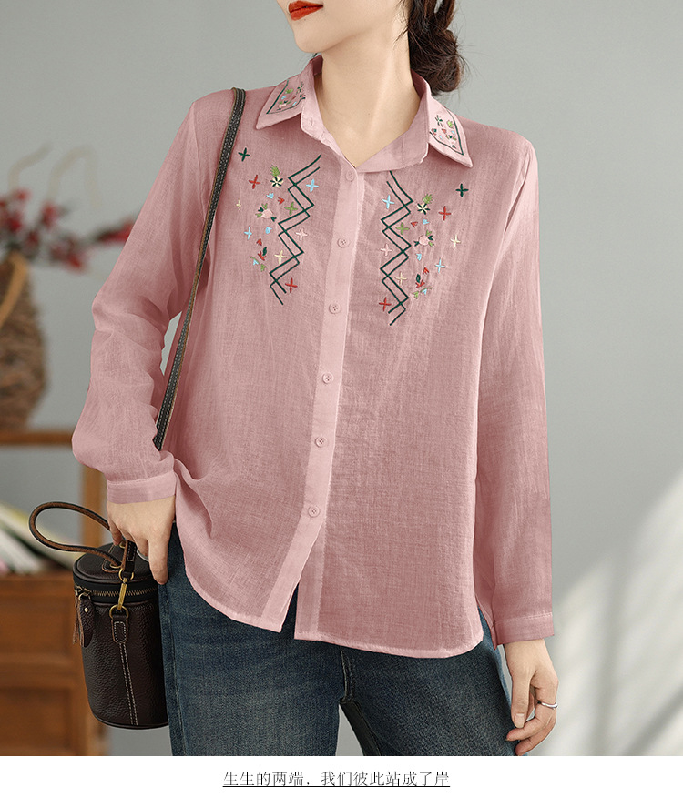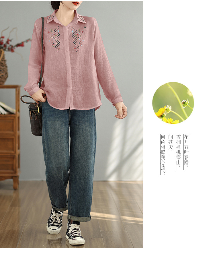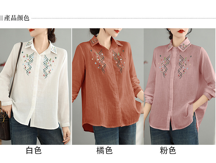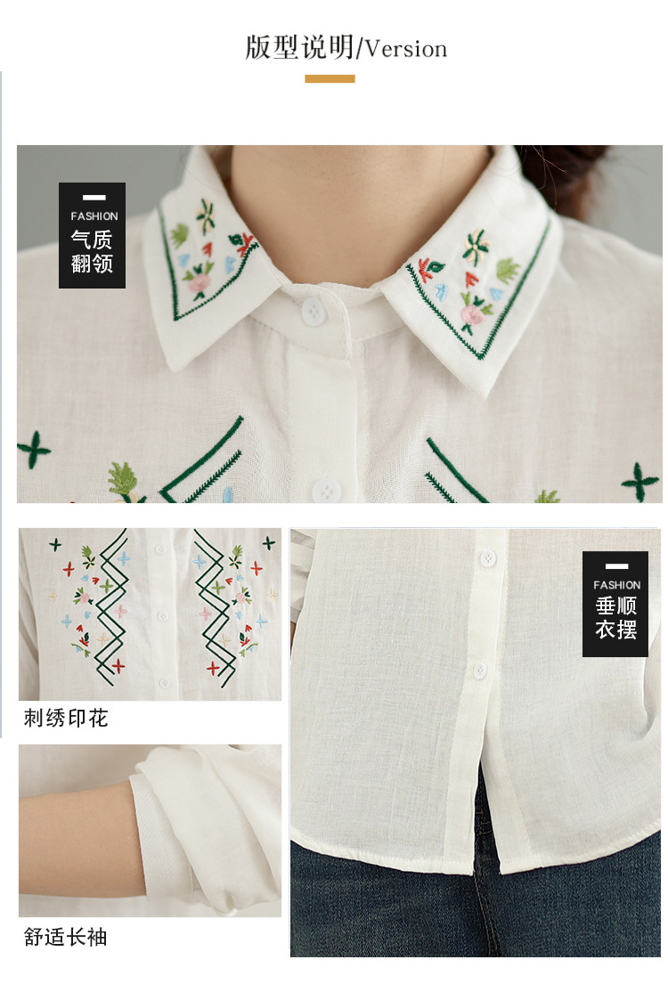 AHM wyss6982碎花刺绣勾花双层纱衬衫时尚翻领宽松上衣 商品图3