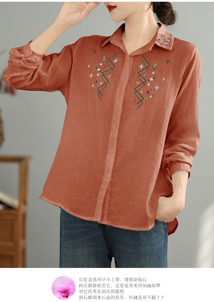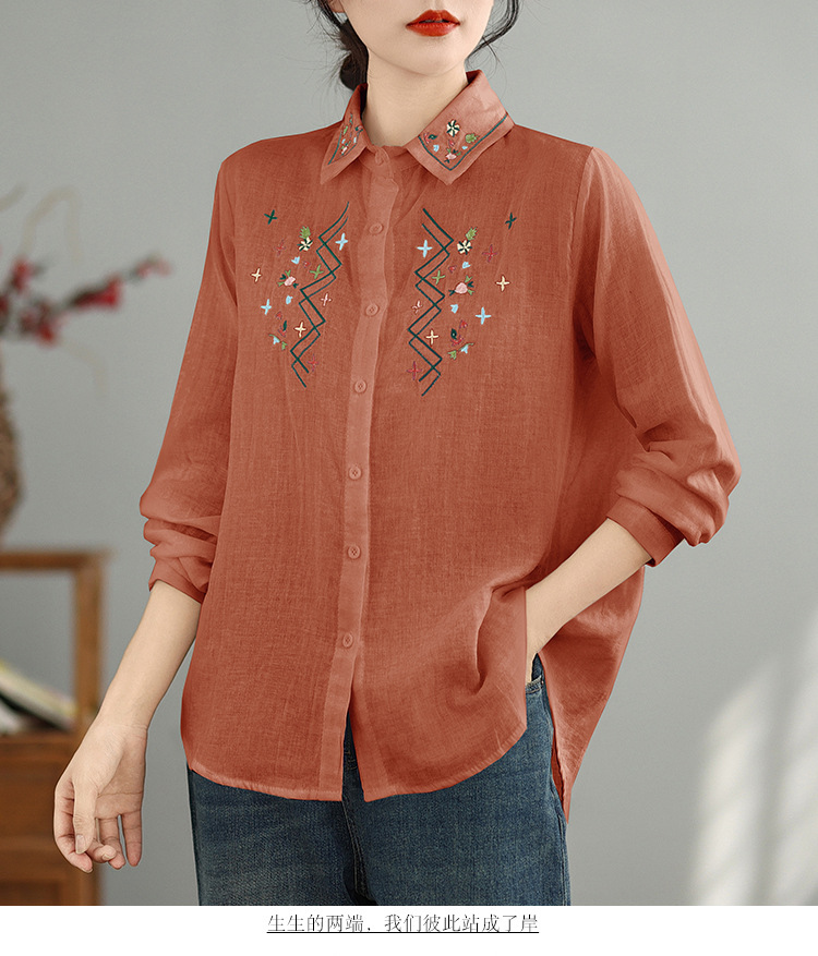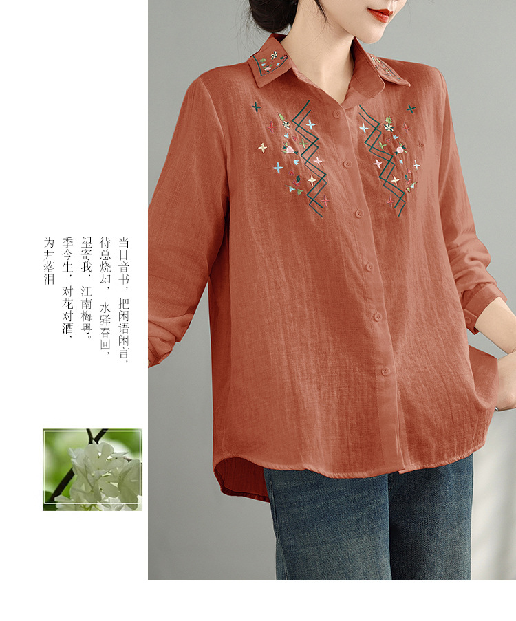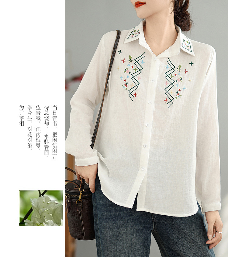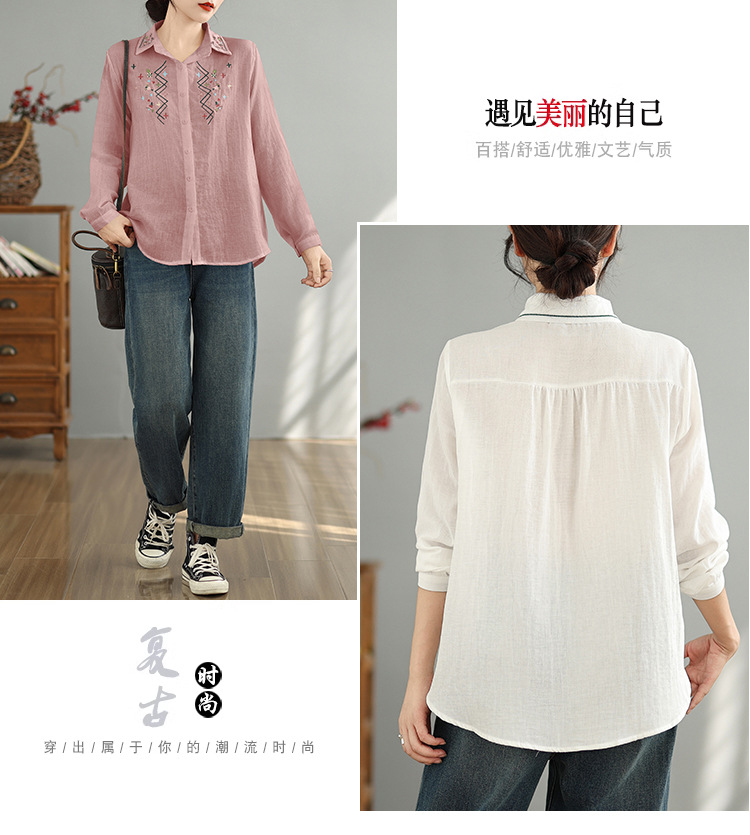 AHM wyss6982碎花刺绣勾花双层纱衬衫时尚翻领宽松上衣 商品图0