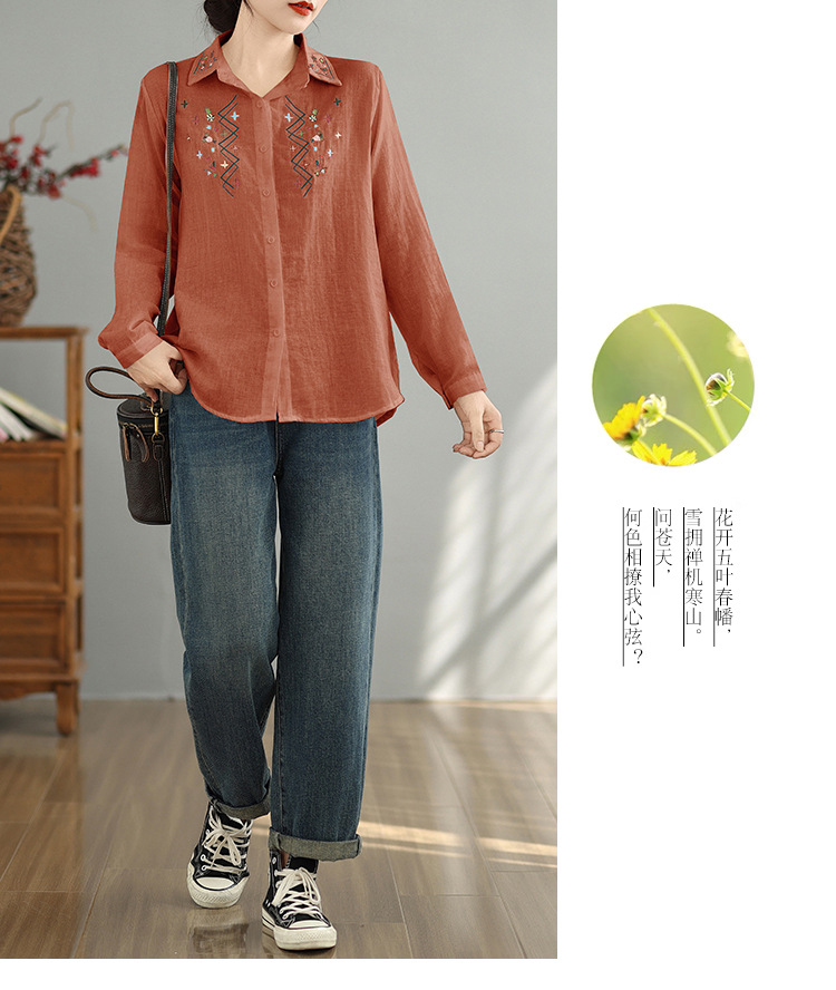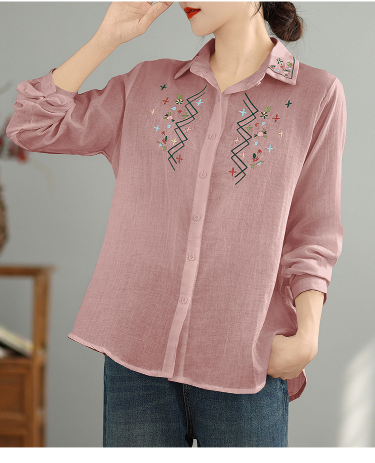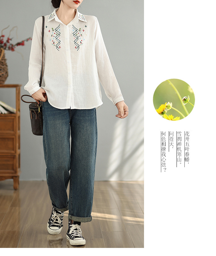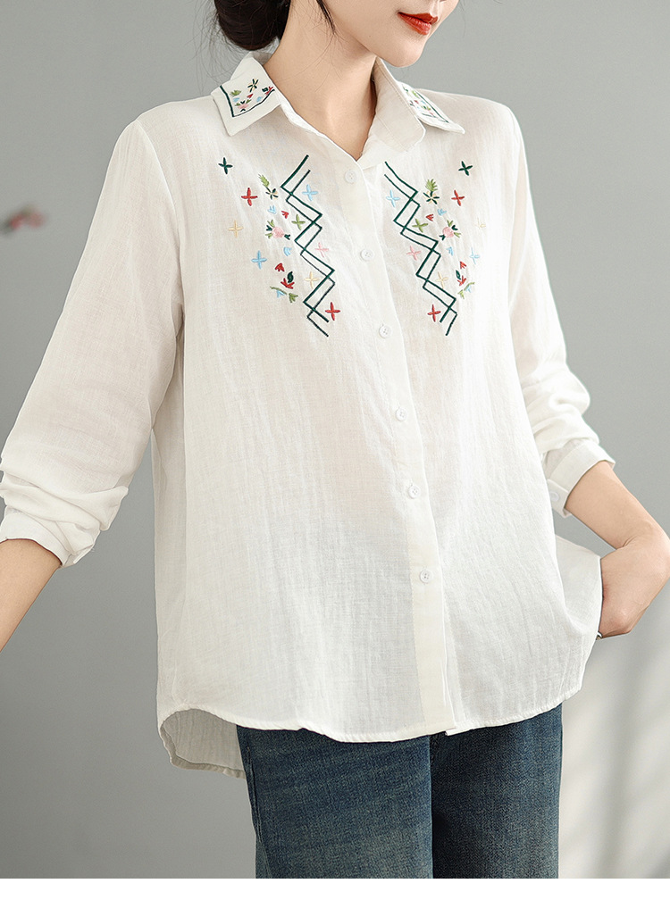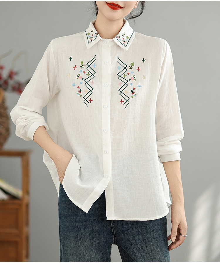 AHM wyss6982碎花刺绣勾花双层纱衬衫时尚翻领宽松上衣 商品图0