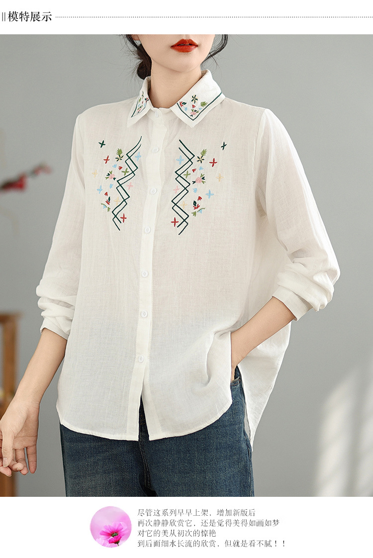 AHM wyss6982碎花刺绣勾花双层纱衬衫时尚翻领宽松上衣 商品图2