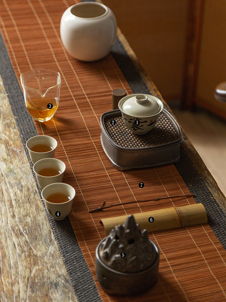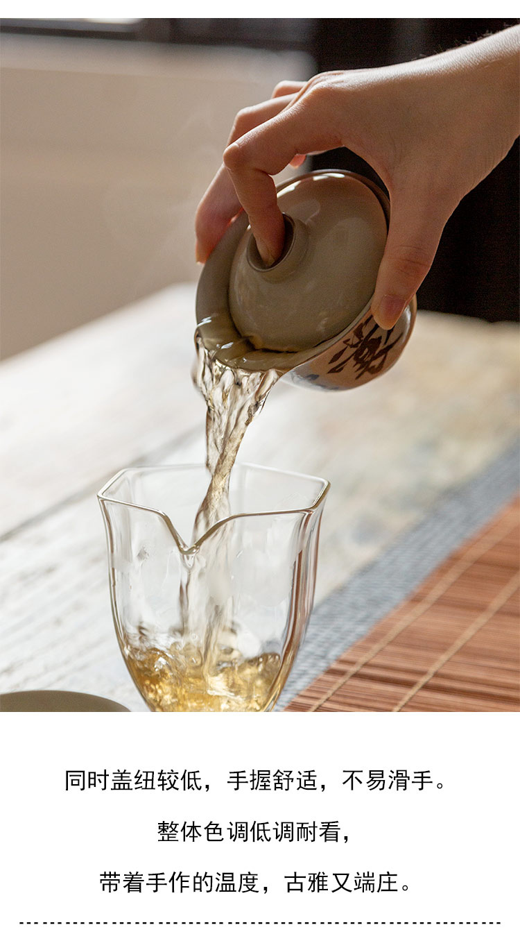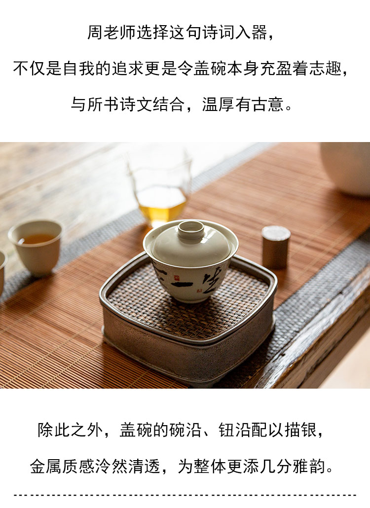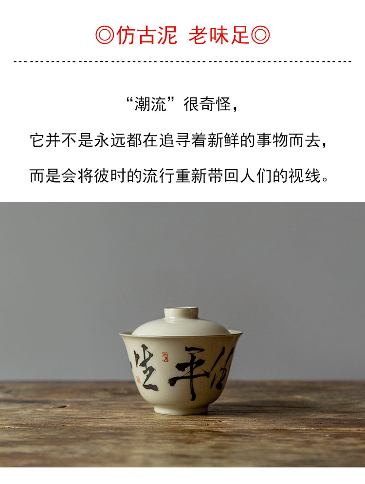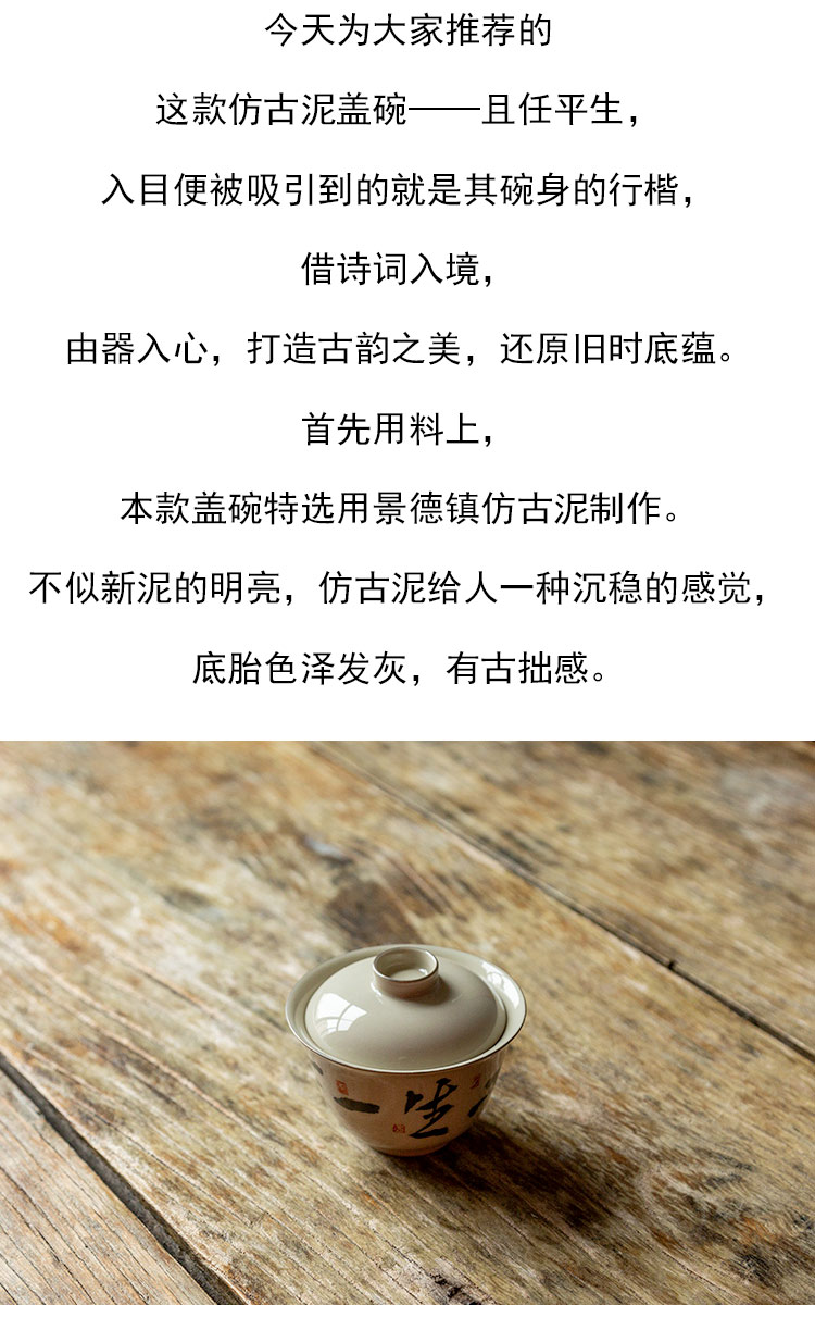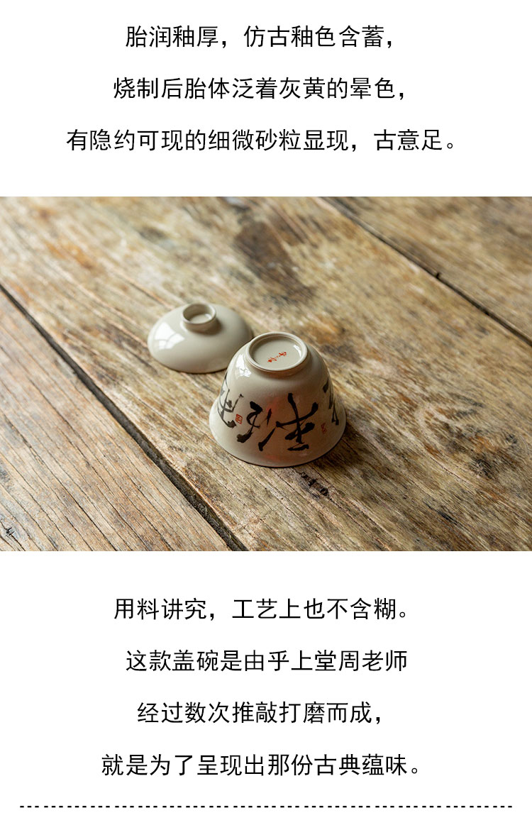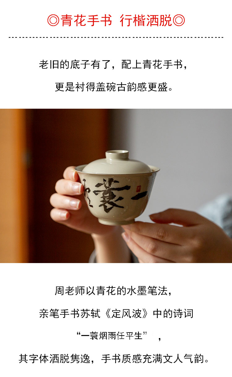 茶香记 仿古泥盖碗 且任平生 清雅古典 青花手书 行楷洒脱