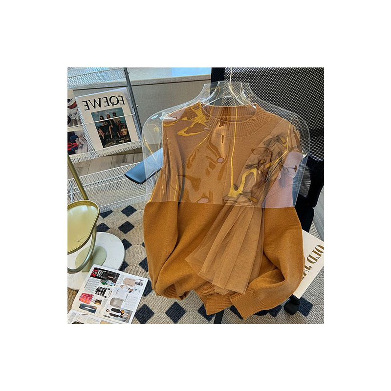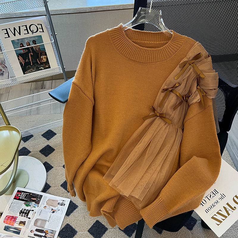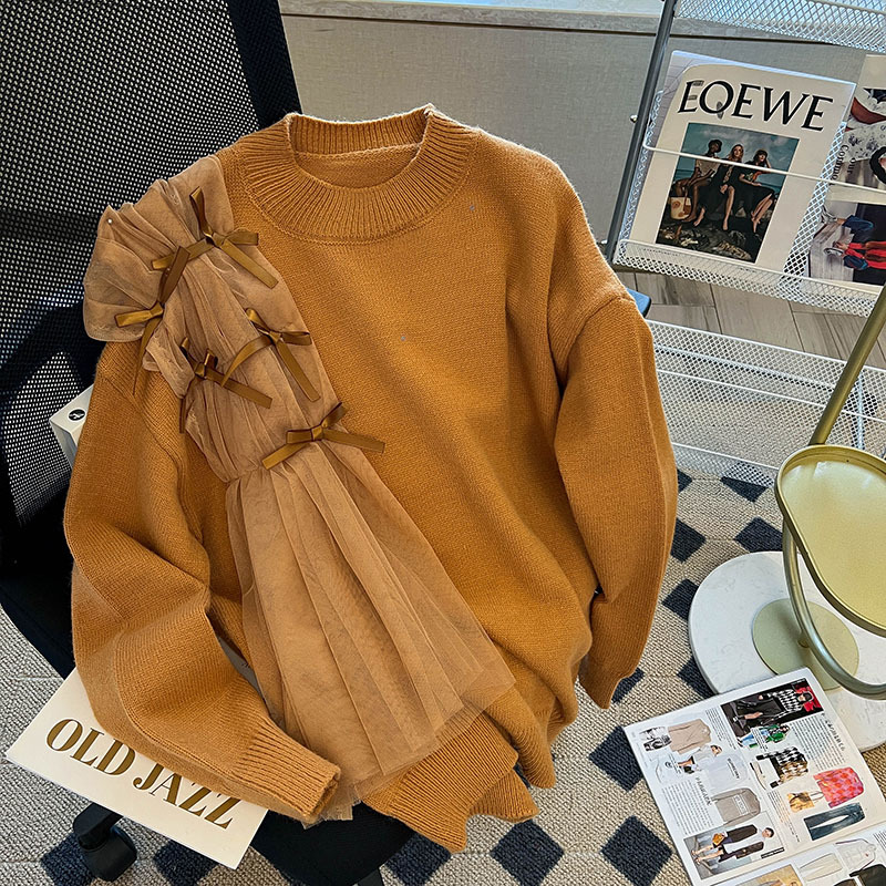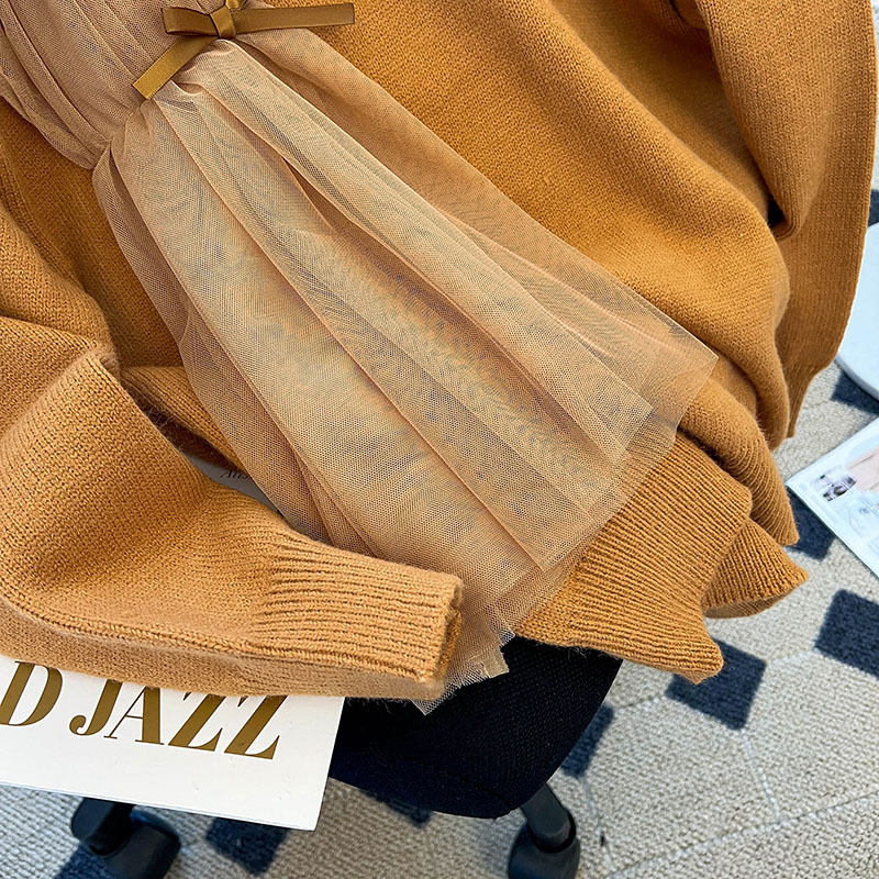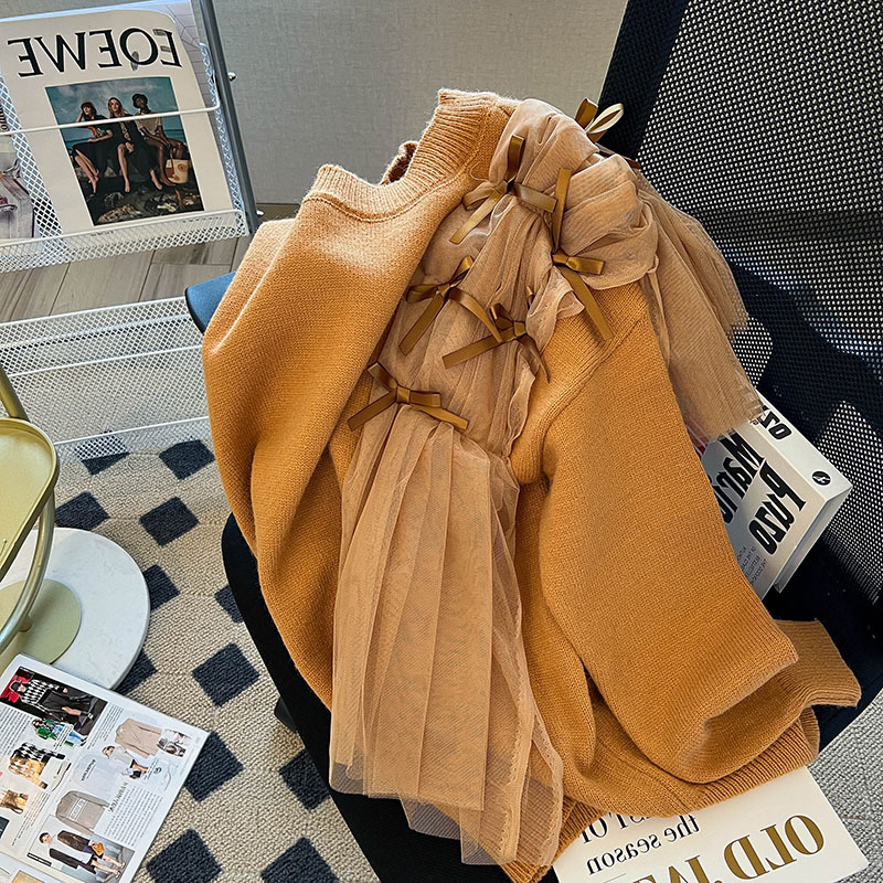 DX 气质网纱拼接蝴蝶结加厚设计感针织上衣