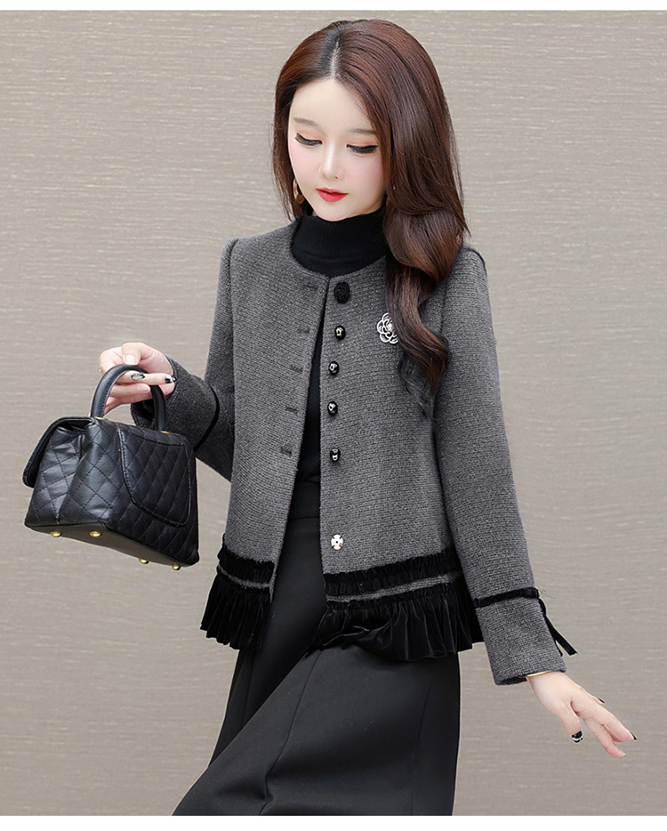 QYM L2542-Y洋气小香风外套时尚拼结休闲上衣