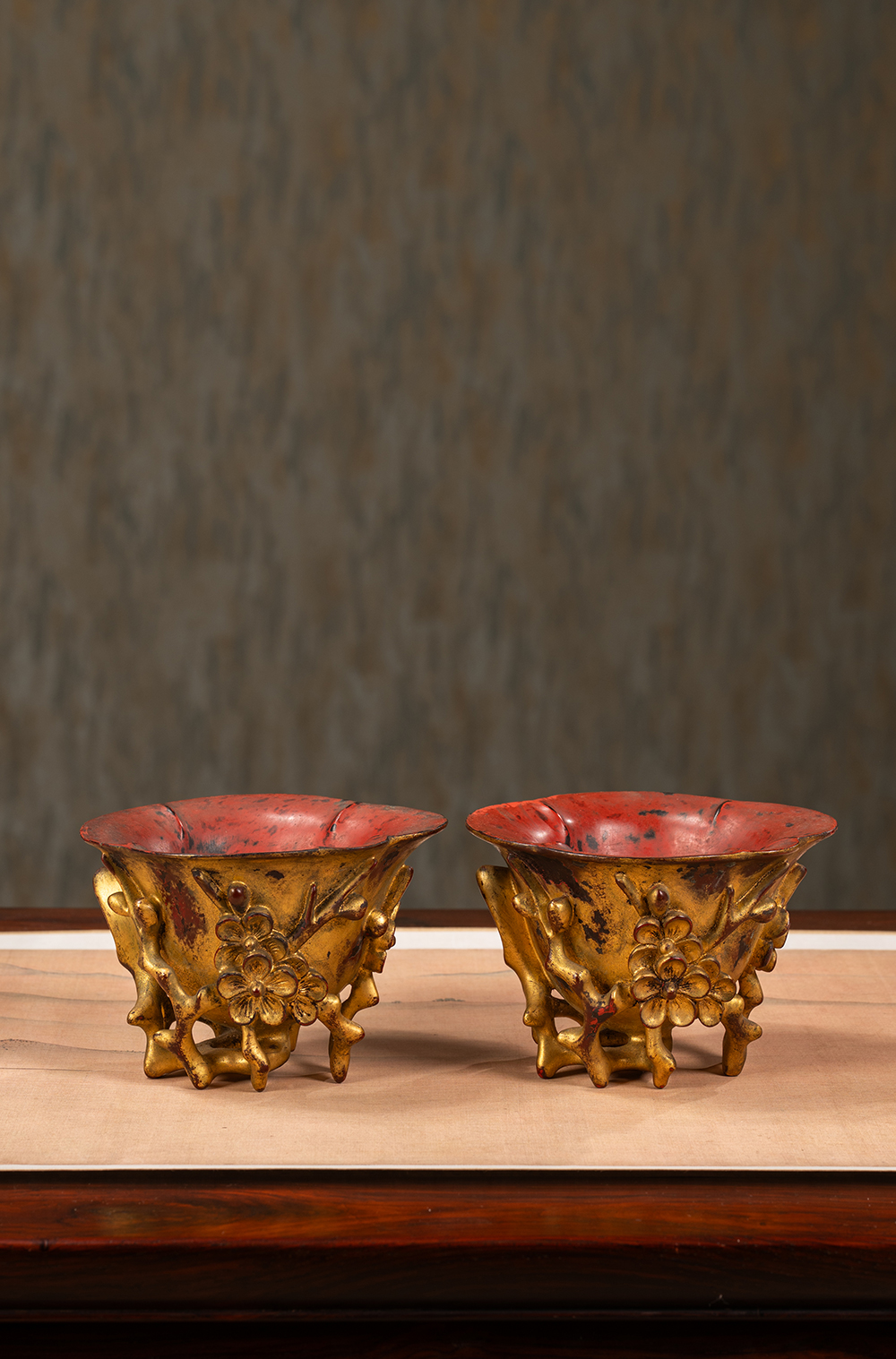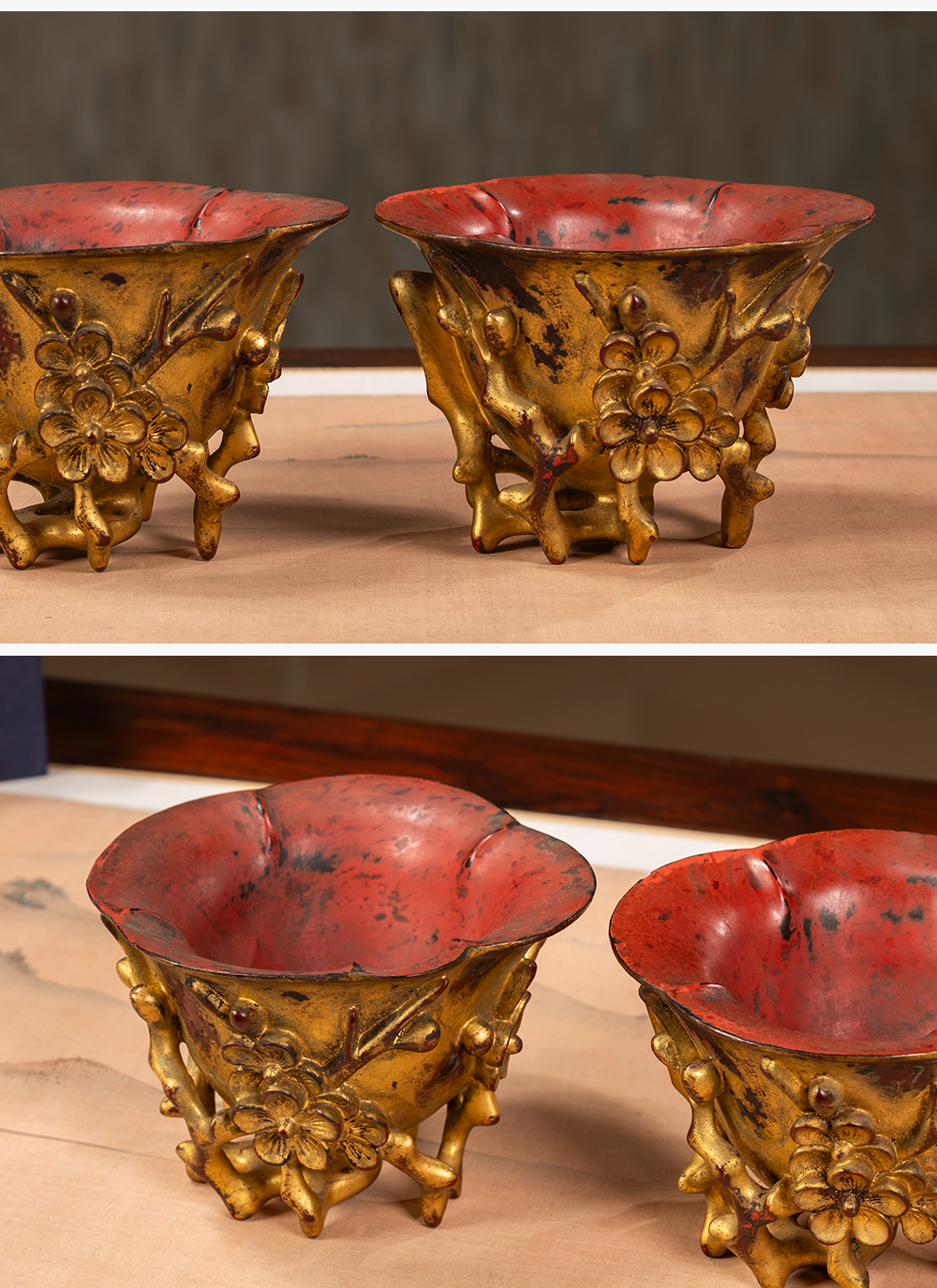 二十世纪 红木螭龙纹带围栏三层架格(一对)