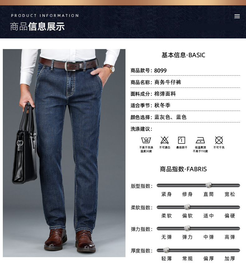 YFT-DKH8099天丝牛仔裤男宽松直筒商务男装2020秋冬新款高腰弹力男式牛仔裤