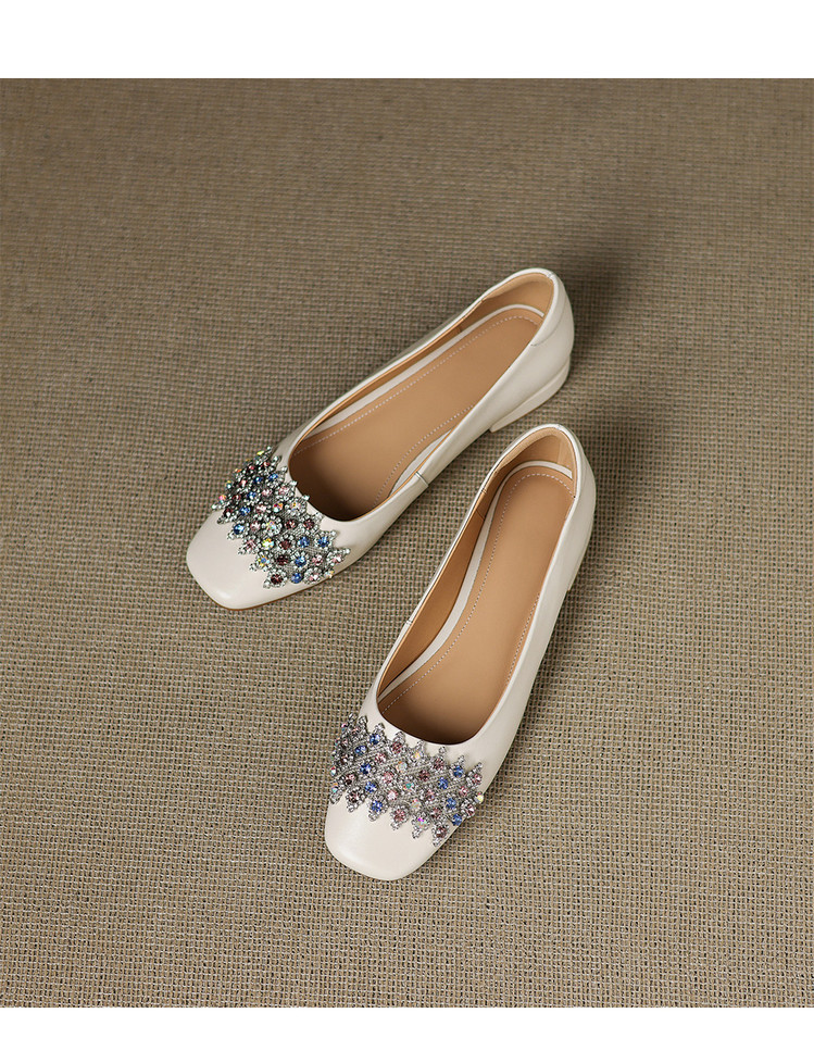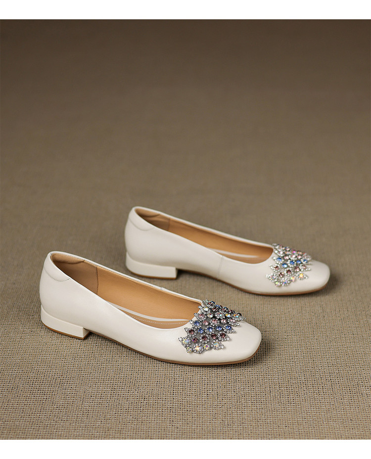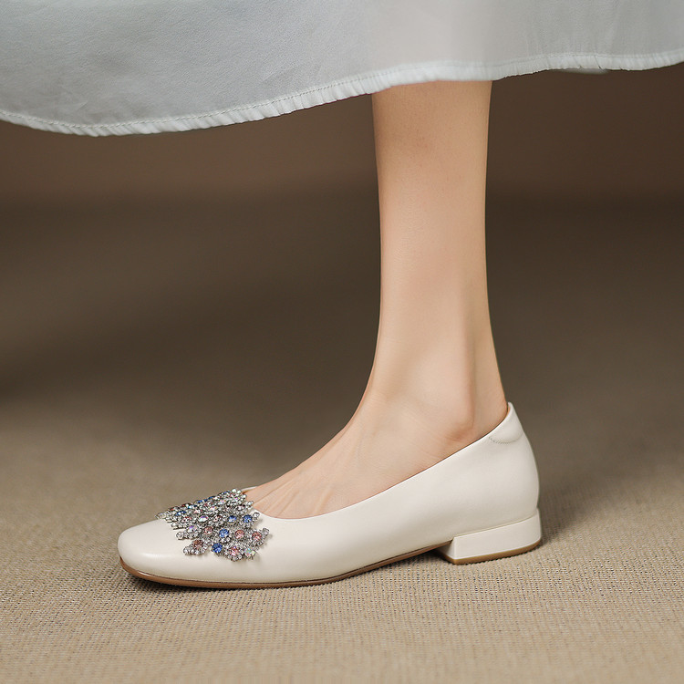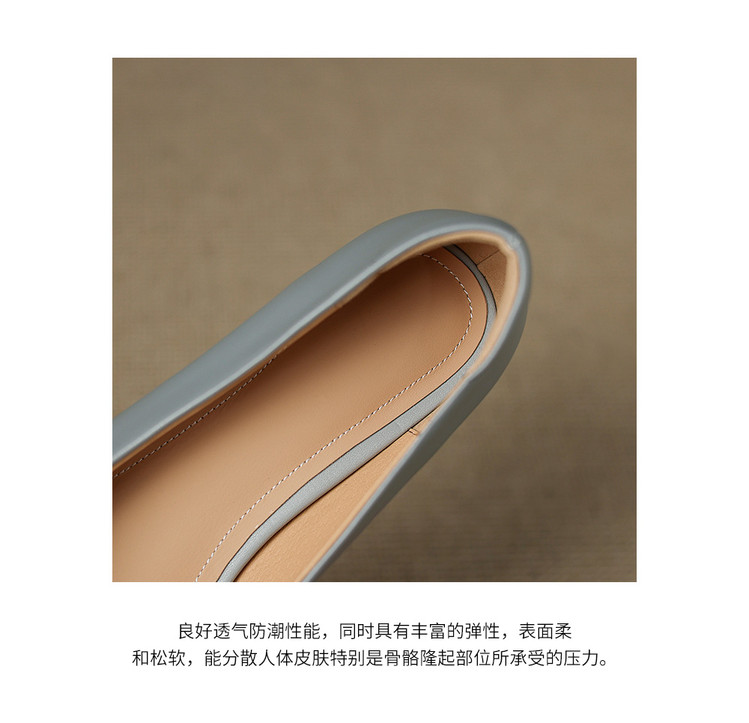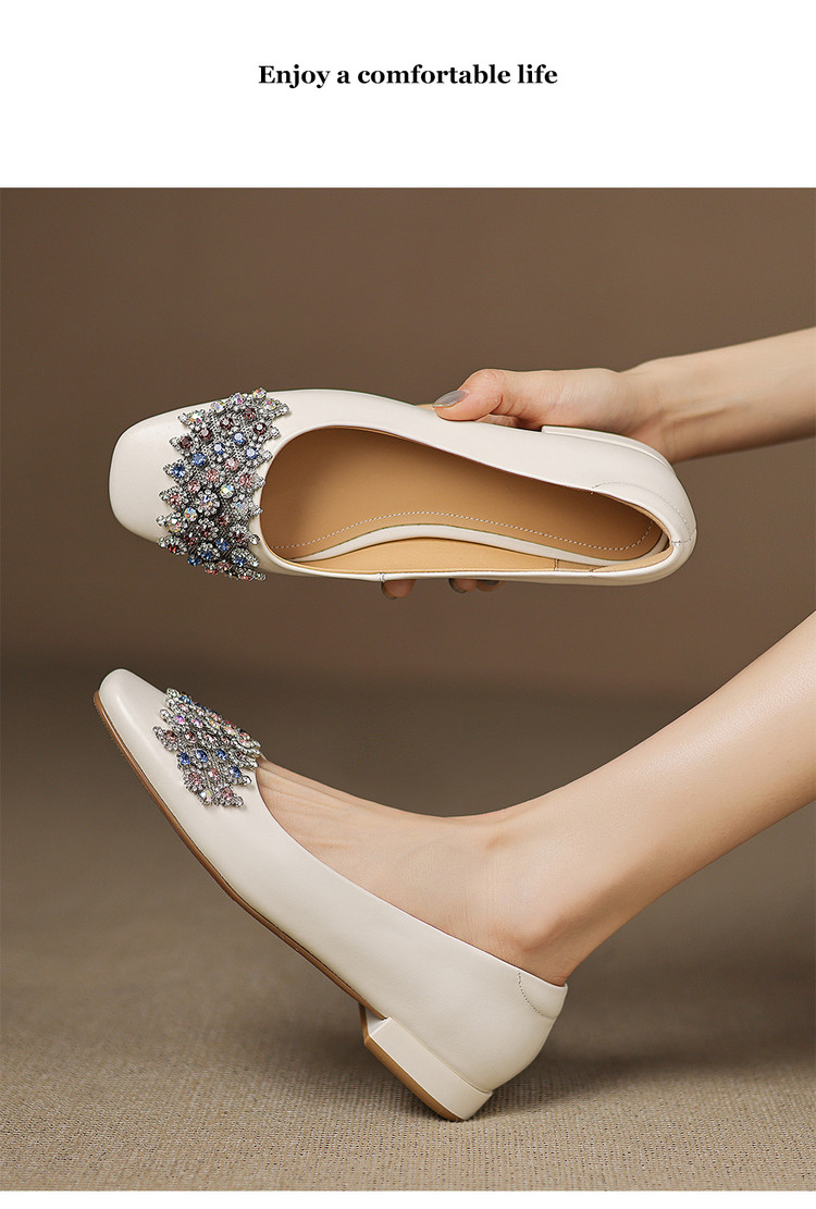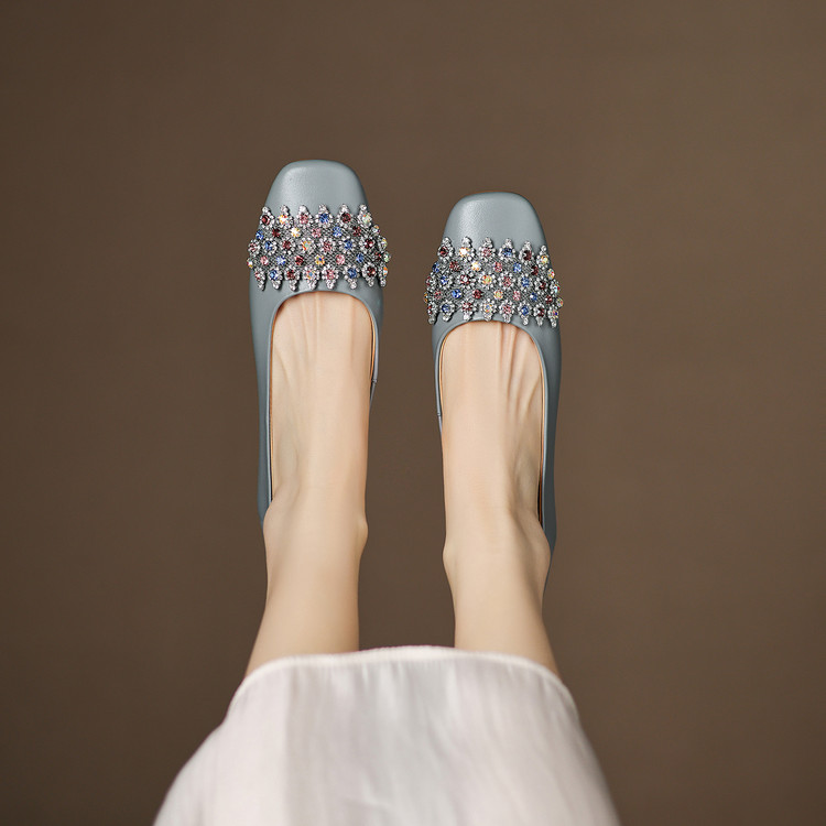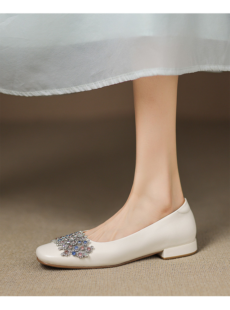 【预售5天】优雅气质法式单鞋女新款水钻方头低跟粗跟真皮灰色通勤瓢鞋ZYY&A1270
