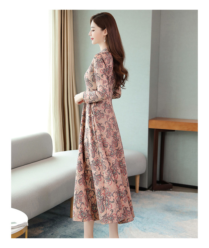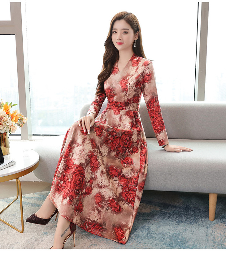 气质优雅,V领鹿皮绒大摆长裙AHM-xrxm751