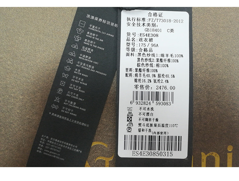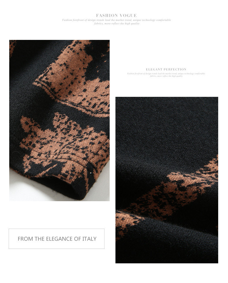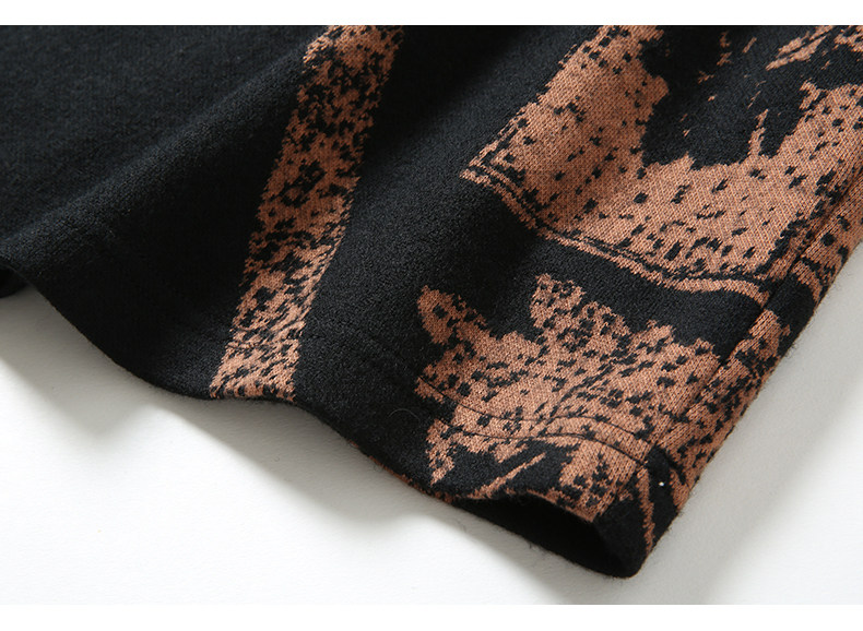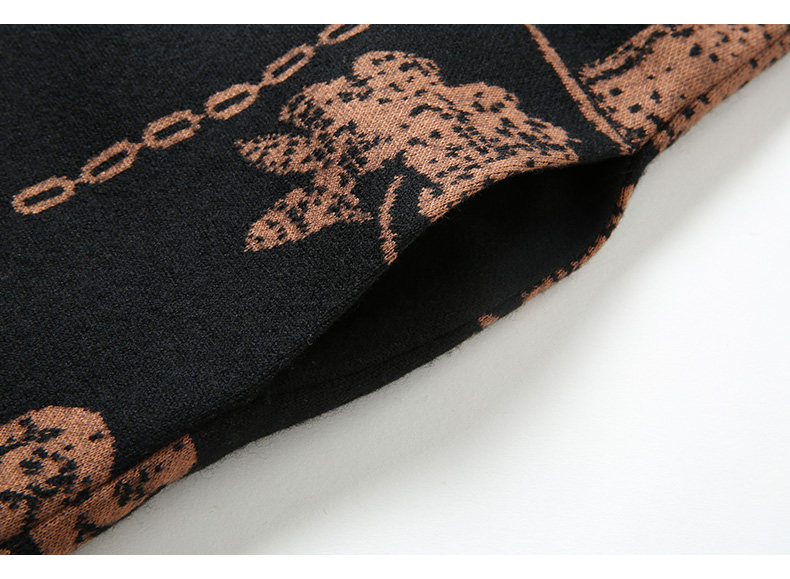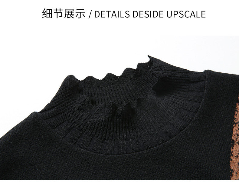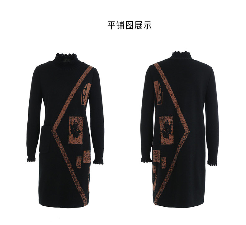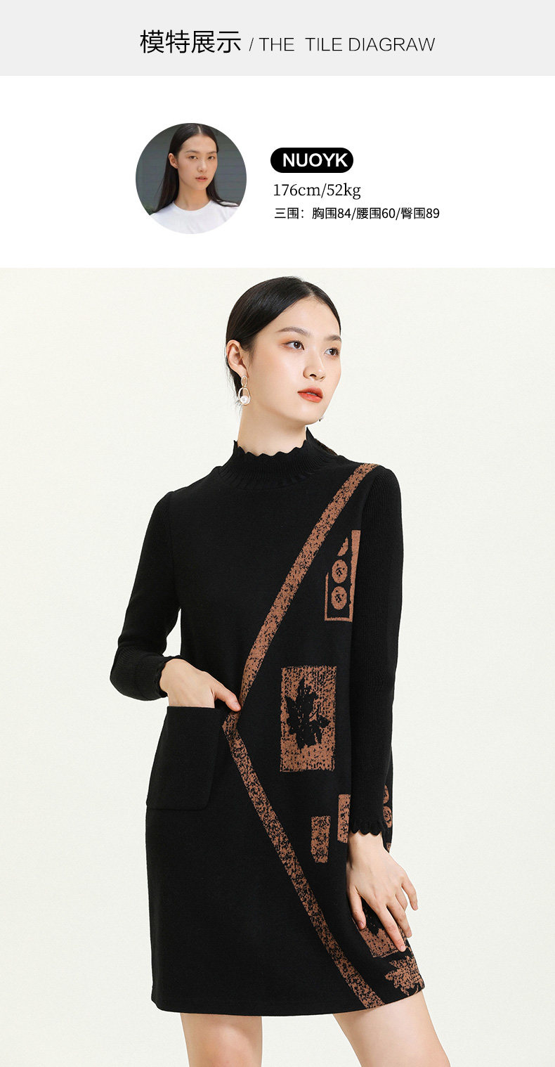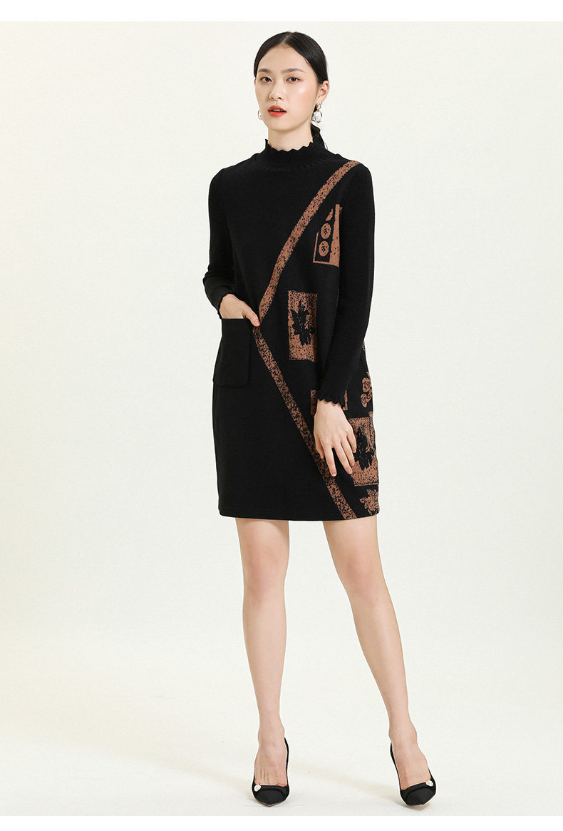 乔万尼秋冬新款花边立领设计几何印花羊毛宽松舒适设计感连衣裙ES4E308