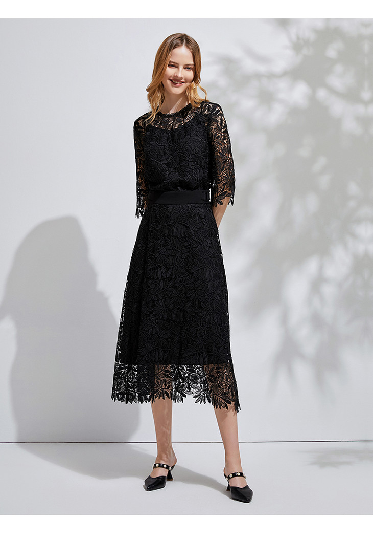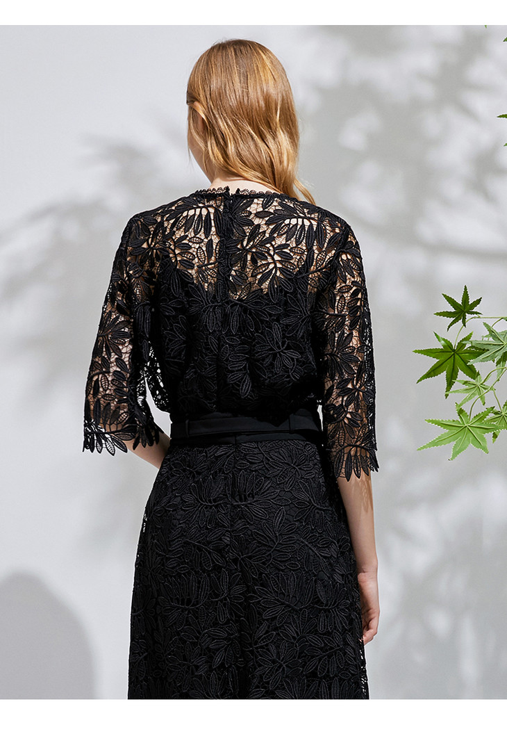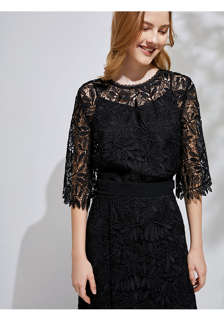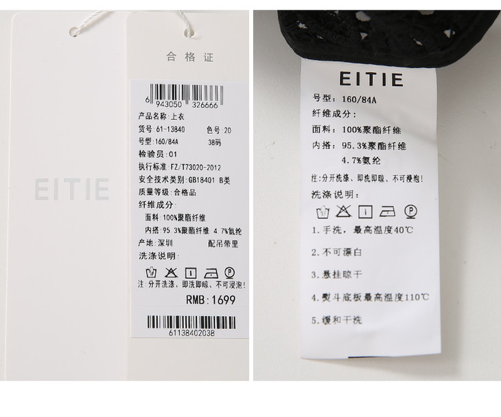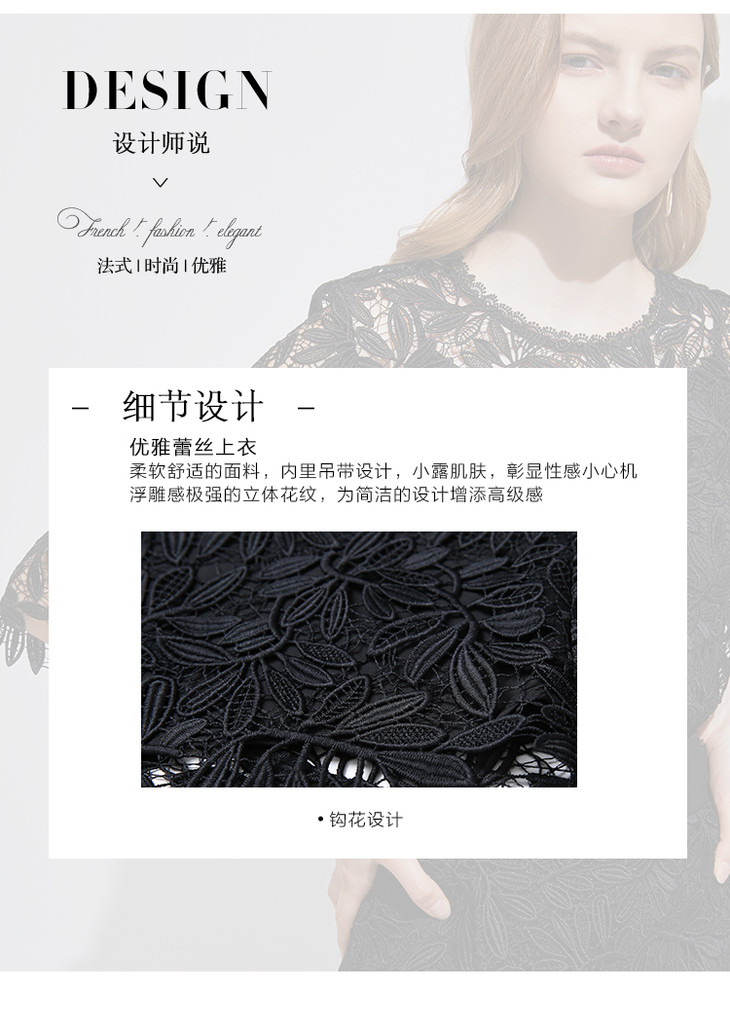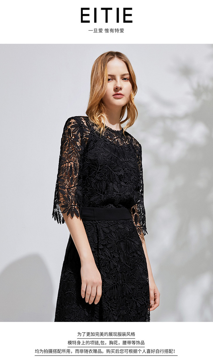 EITIE爱特爱春季新款优雅气质钩花蕾丝镂空显瘦两件套女上衣6113840