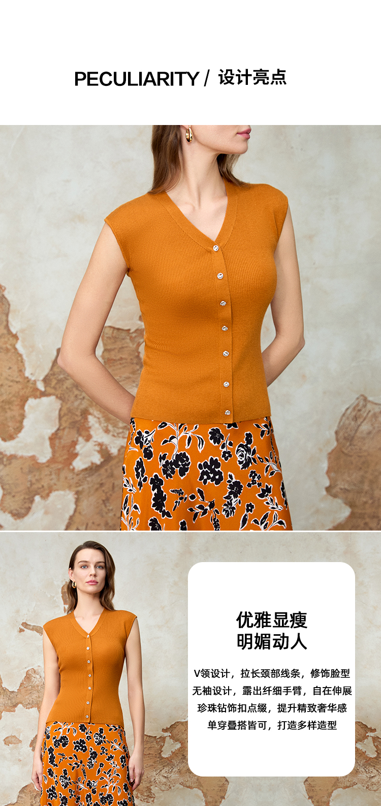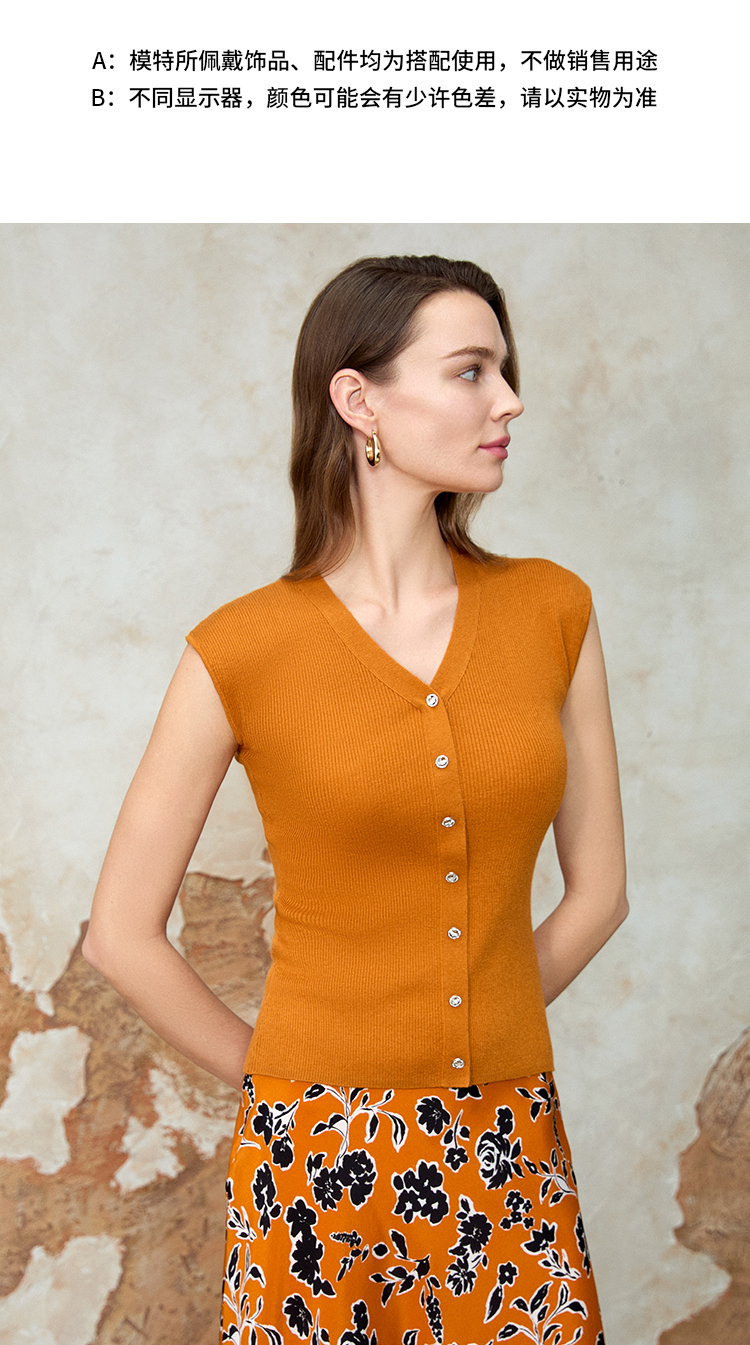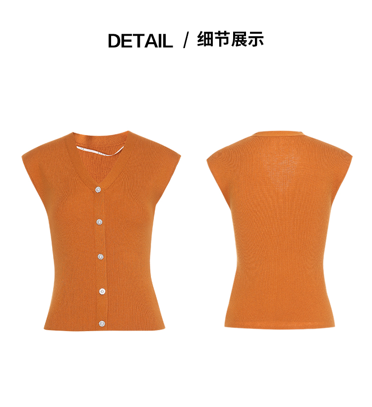 EITIE爱特爱气质V领修身显瘦百搭纯色针织衫夏季新款8201902