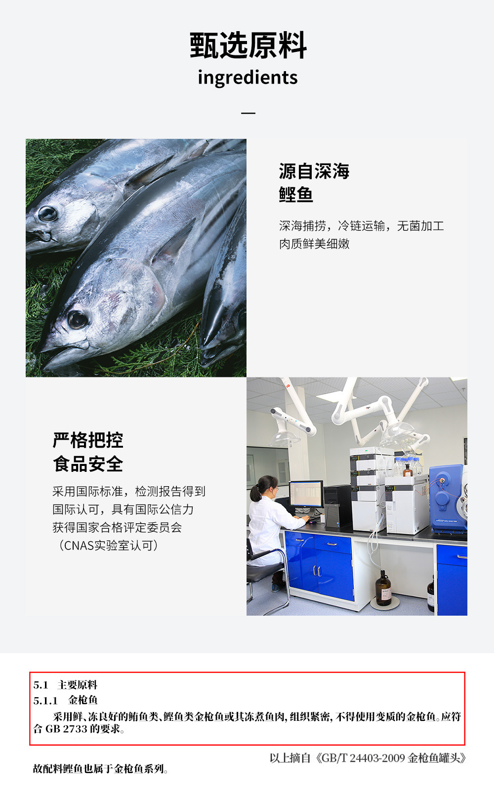金枪鱼处于食物链的较顶端,一般来说体内的重金属和水银容易超标,但是泰祥工厂对原材料的质检尤其严格,一旦发现有重金属超标现象,立马拒收!