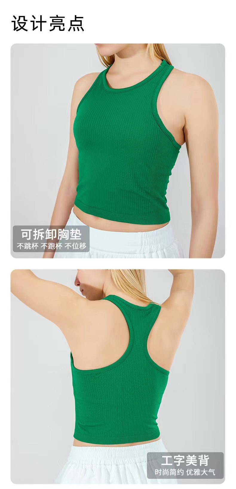 跃牌【活力缤纷】系列 高弹螺纹瑜伽背心带胸垫工字美背 BF88251