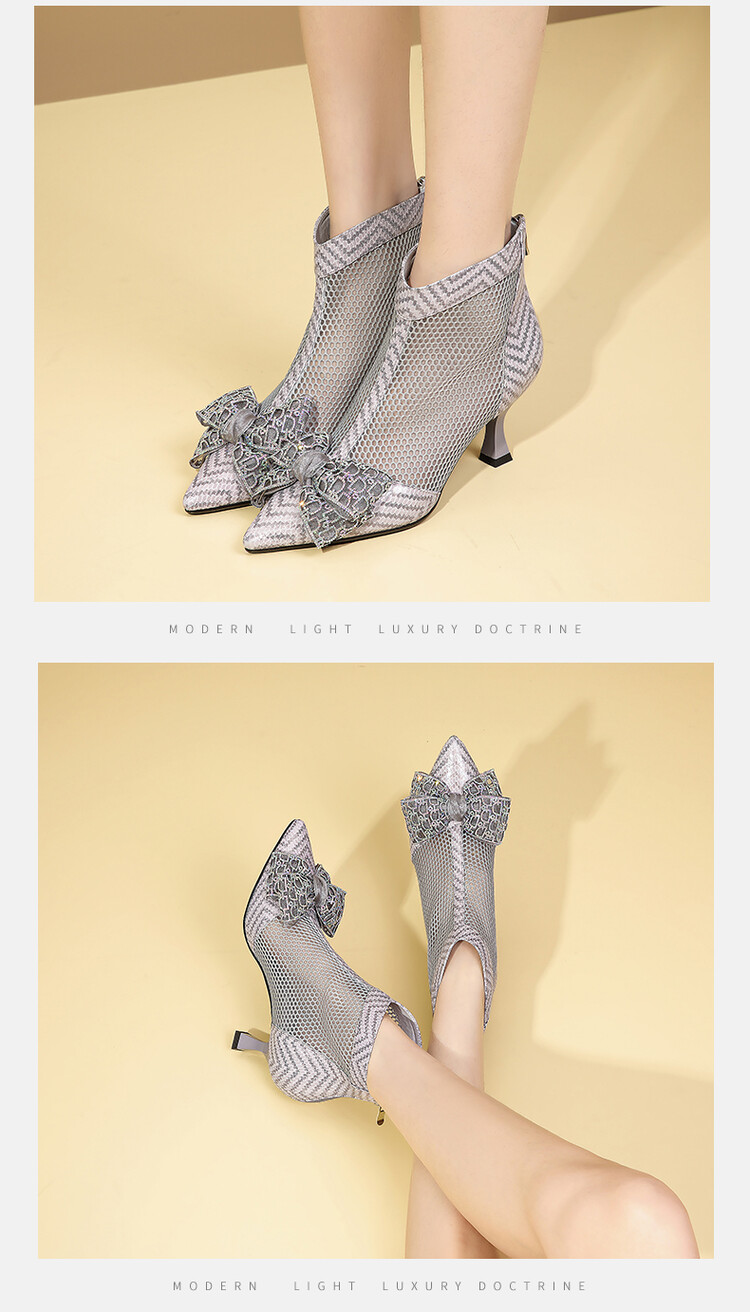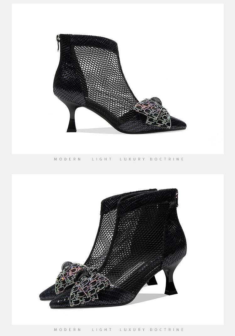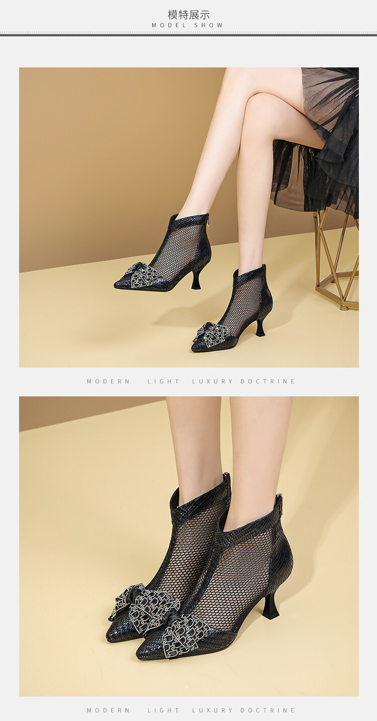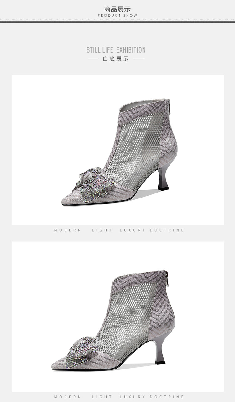 新款凉靴夏时尚百搭粗跟中跟马丁短靴镂空网纱凉靴 GLS343