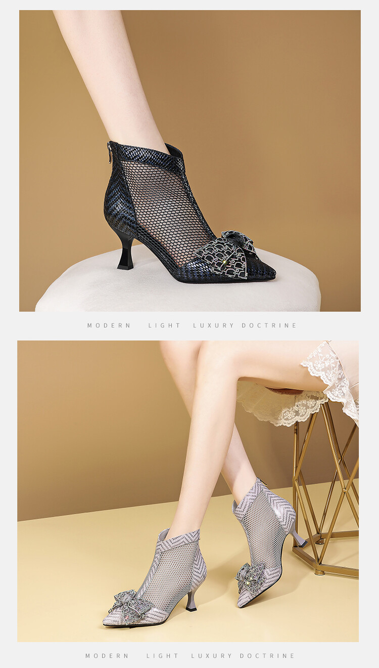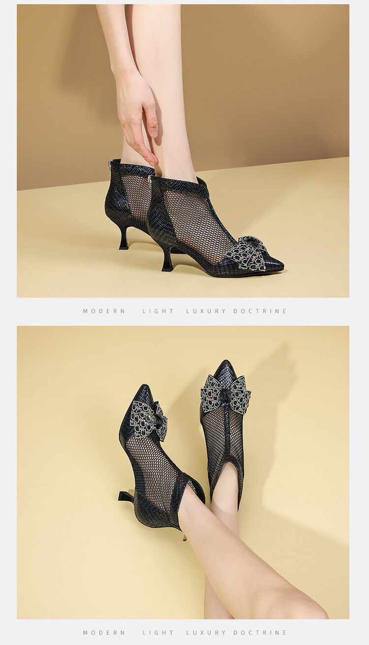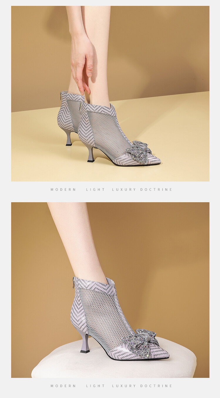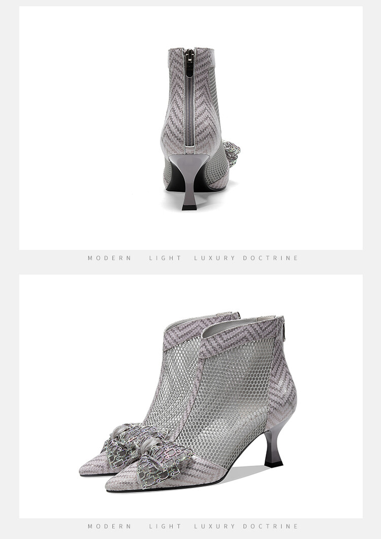 新款凉靴夏时尚百搭粗跟中跟马丁短靴镂空网纱凉靴 GLS343