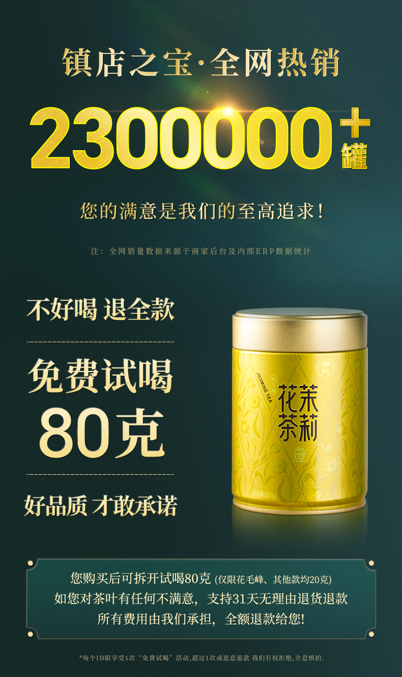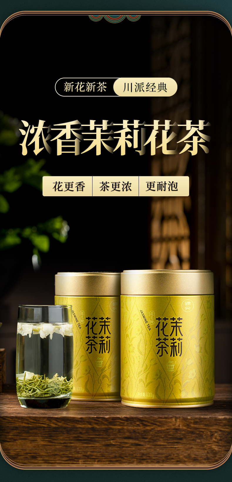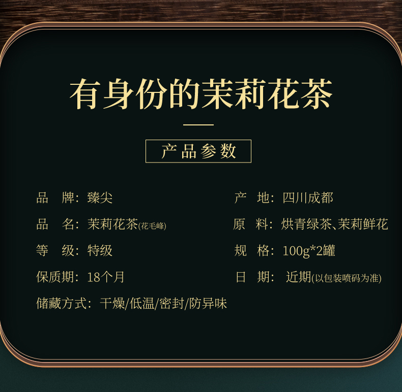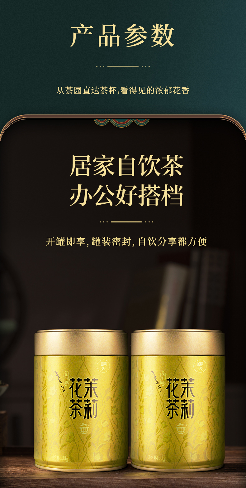 【臻尖-花毛峰】特级浓香型四川口粮茉莉花茶100g*2罐
