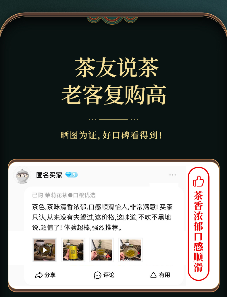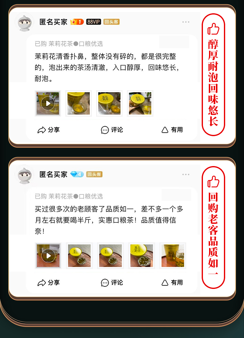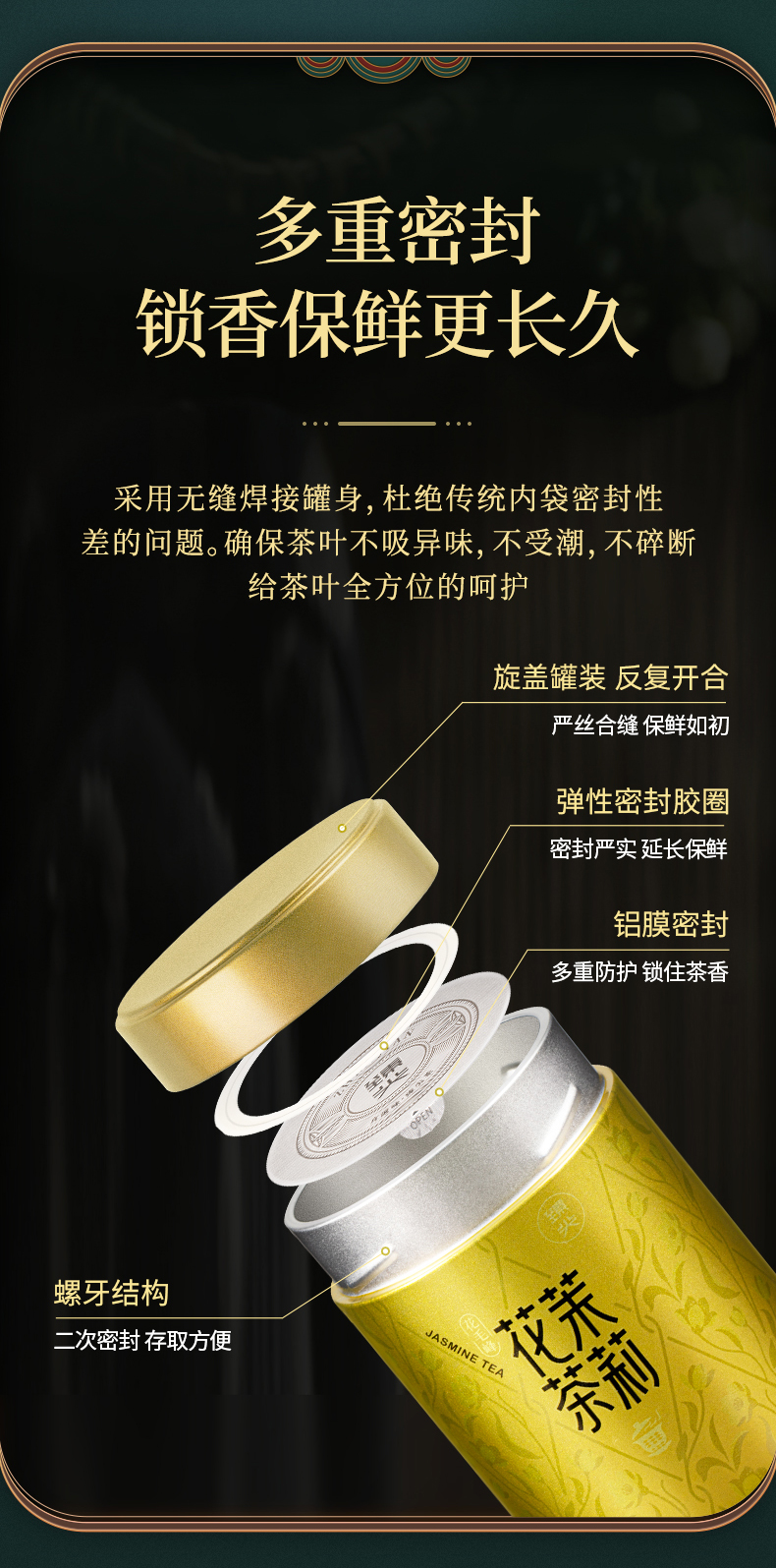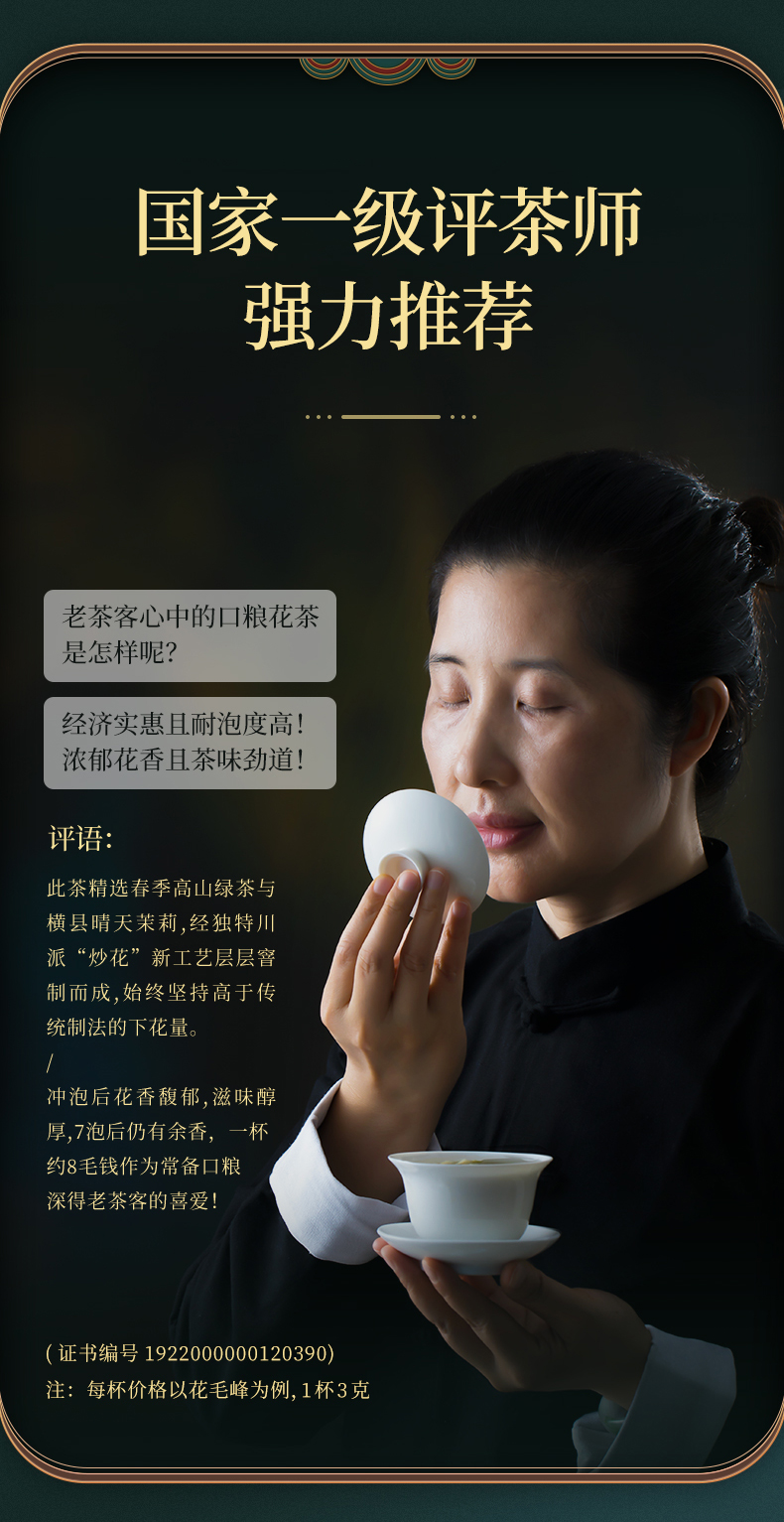 【臻尖-花毛峰】特级浓香型四川口粮茉莉花茶100g*2罐