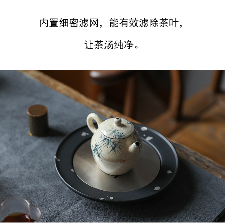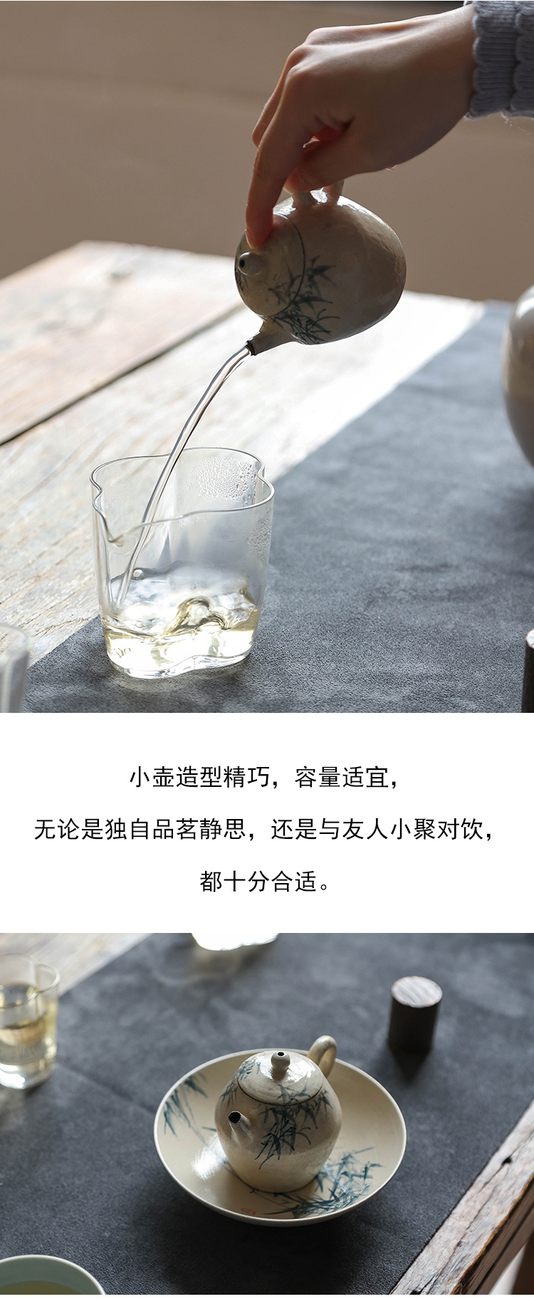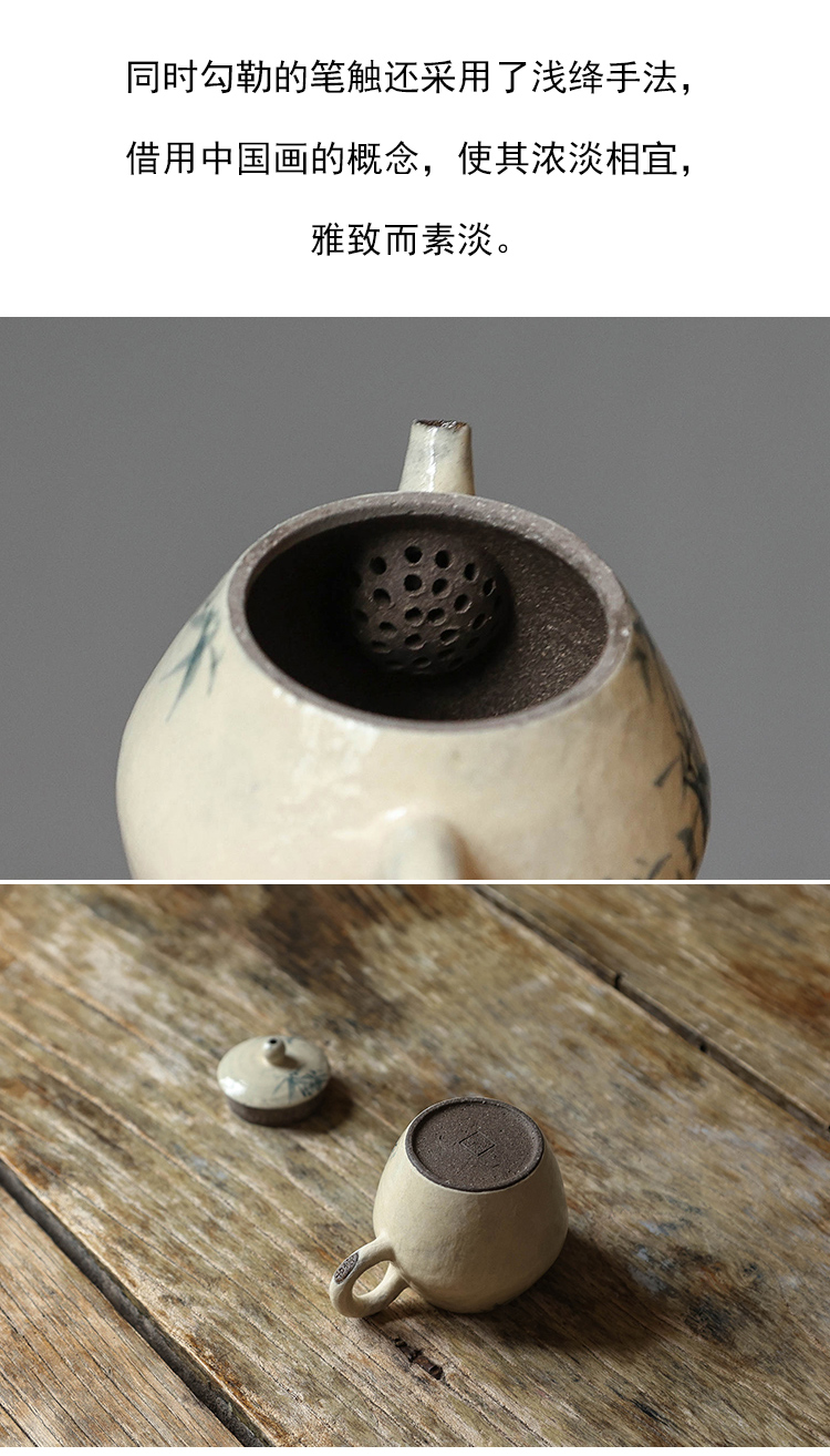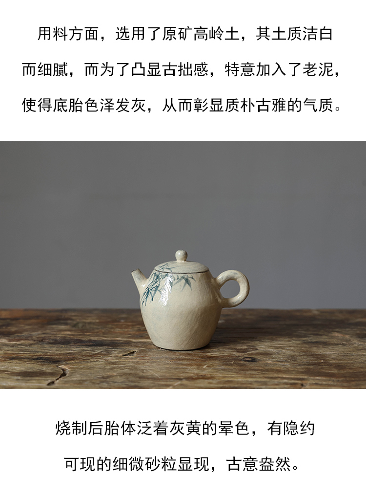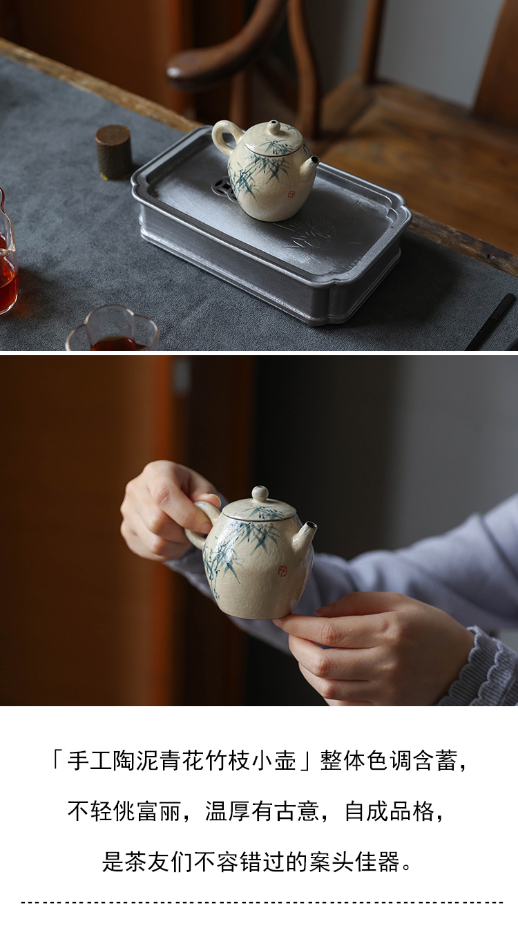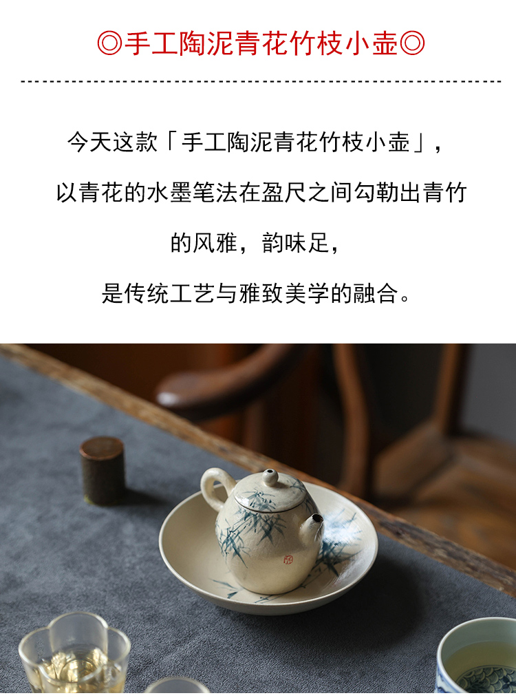 茶香记 手工陶泥青花竹枝小壶120ml陶瓷泡茶壶质朴典雅简洁茶具