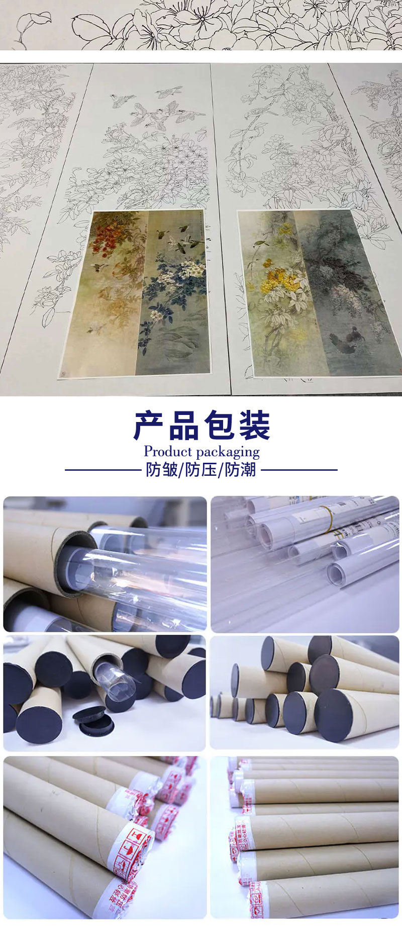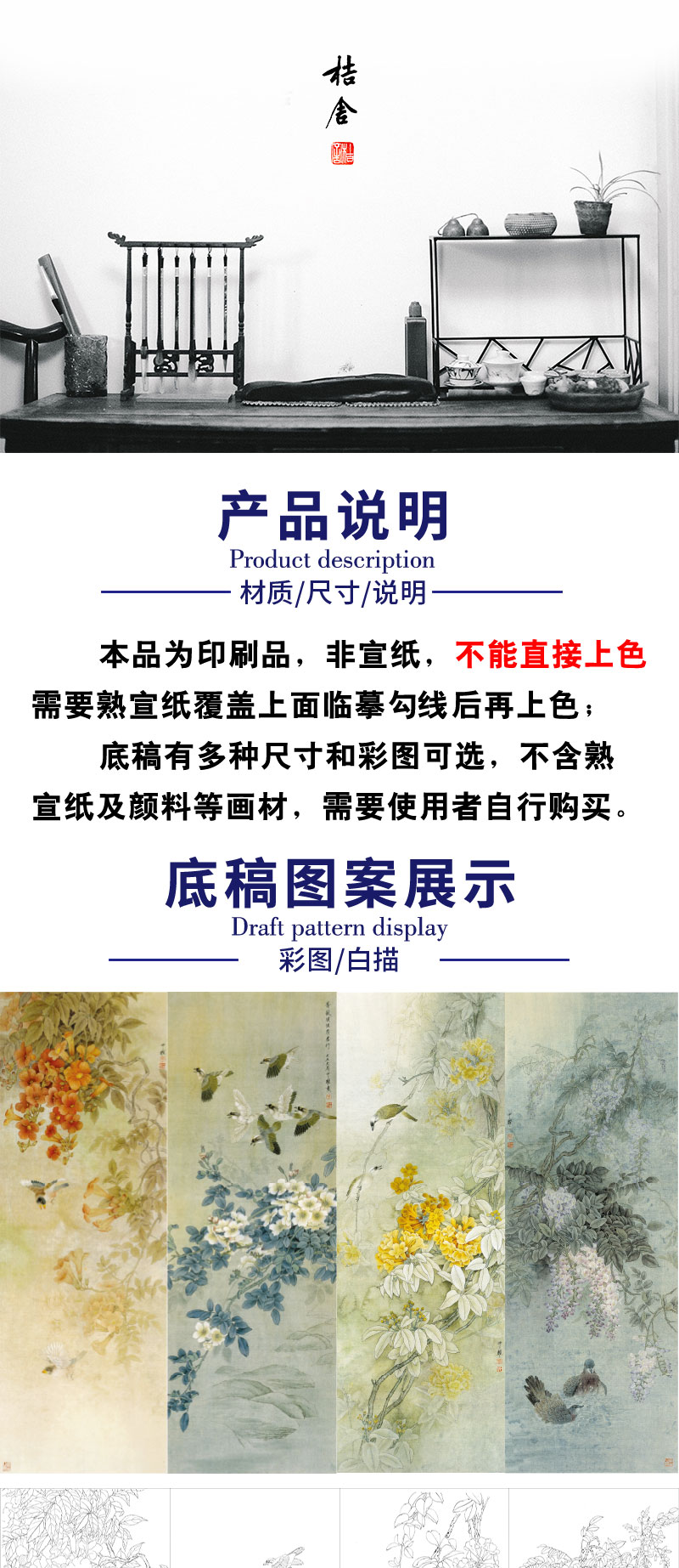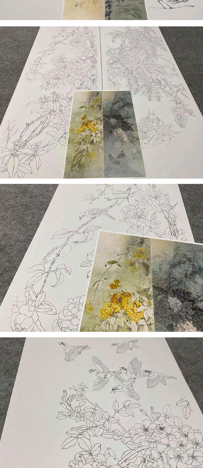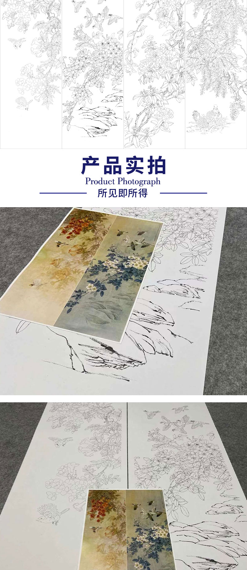【四条屏】周中耀工笔画白描底稿牵牛花临摹勾线花鸟线稿TP33
