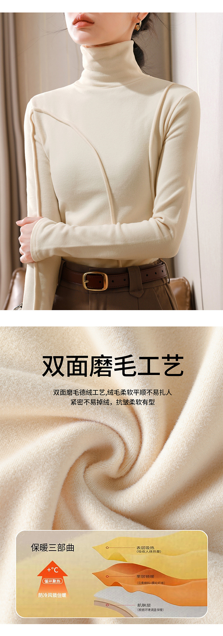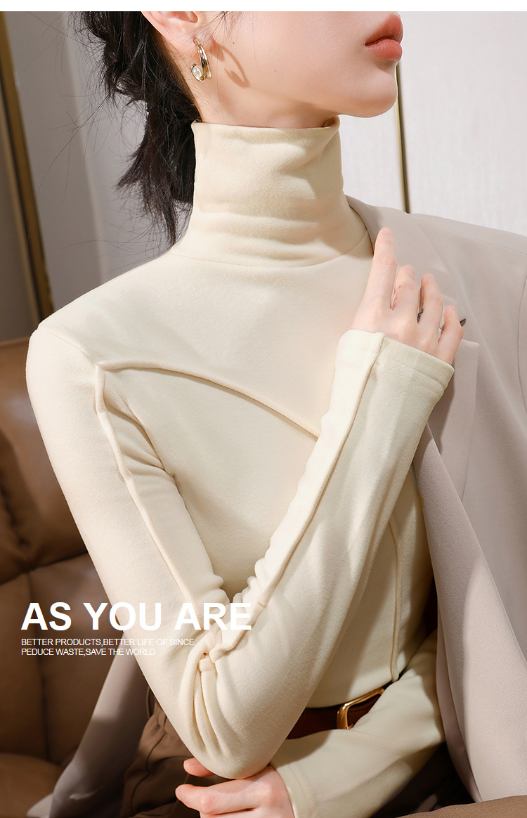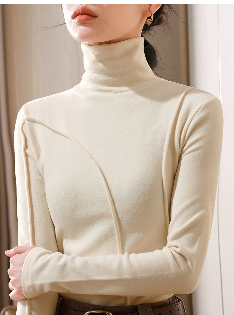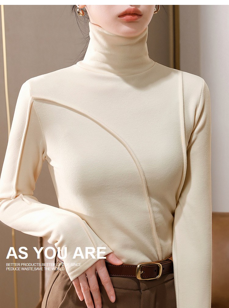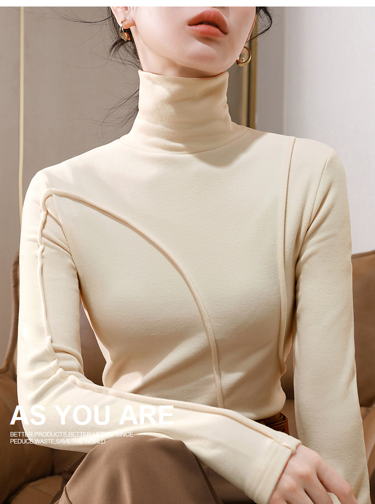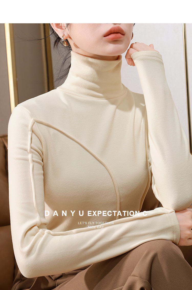 J5D3072-CS双面德绒打底衫女2025新款女装气质高领长袖保暖内搭鱼骨收腰上衣
