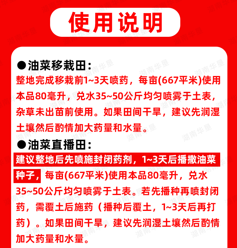封定50%乙.异噁松油菜田封闭除草剂异松乙草胺封地杀草籽专用农药