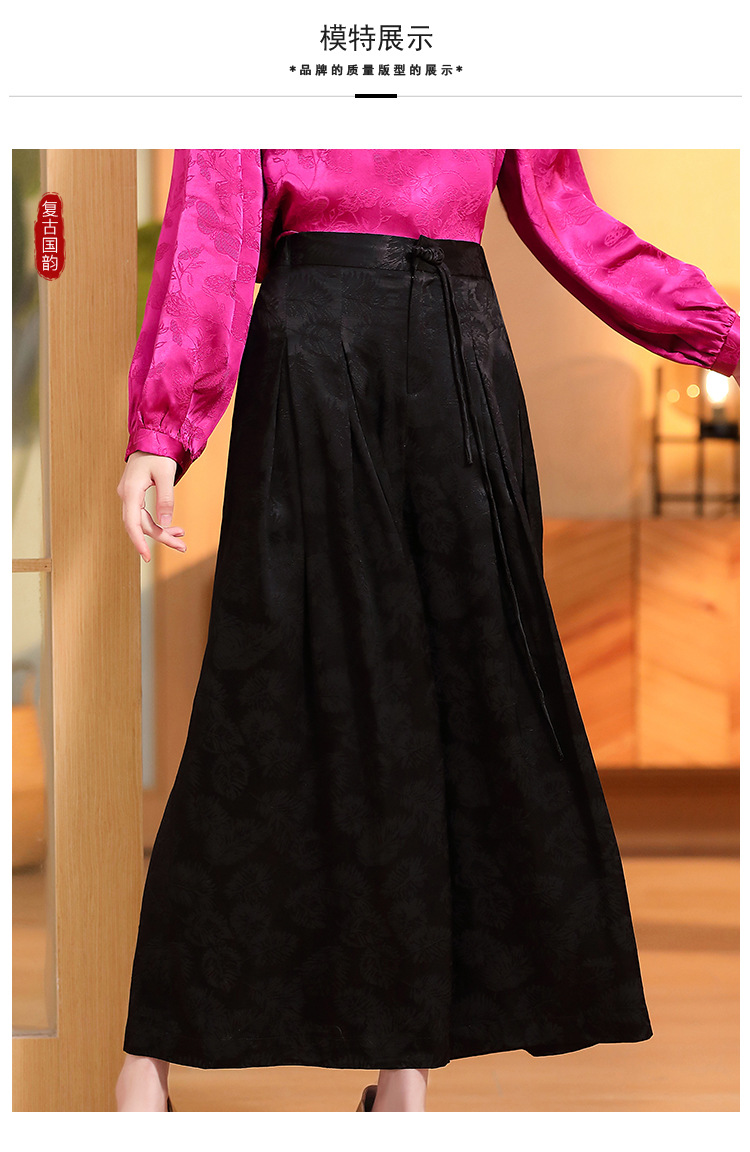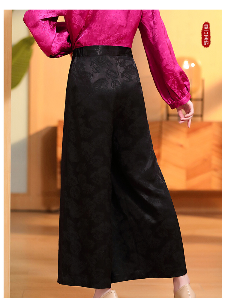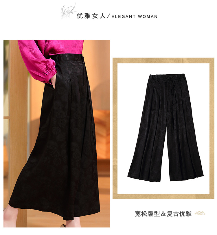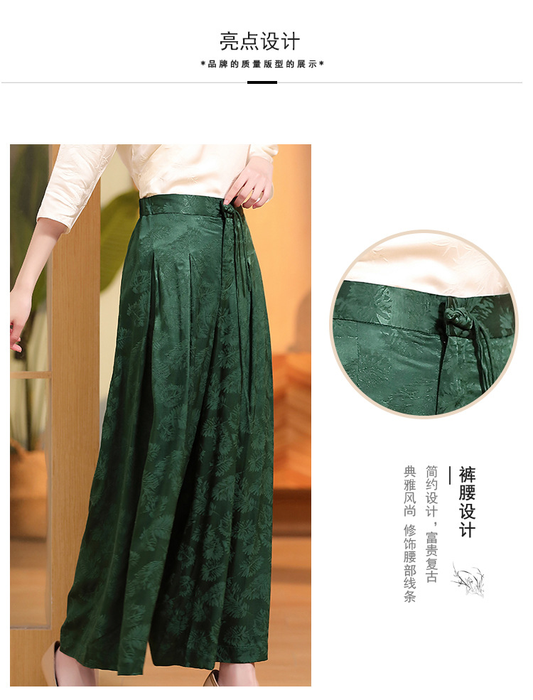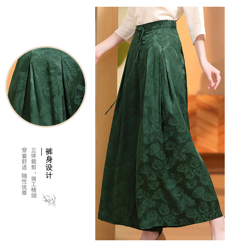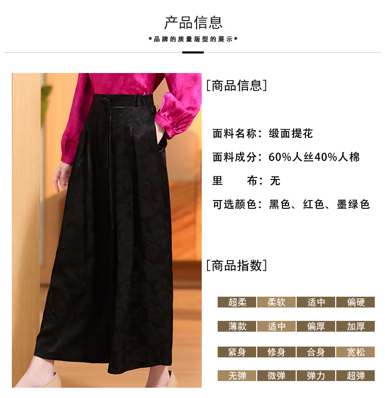 QF-230128 人丝提花长款阔腿裤女复古国风百搭宽松时尚女裤2023新款春夏女装
