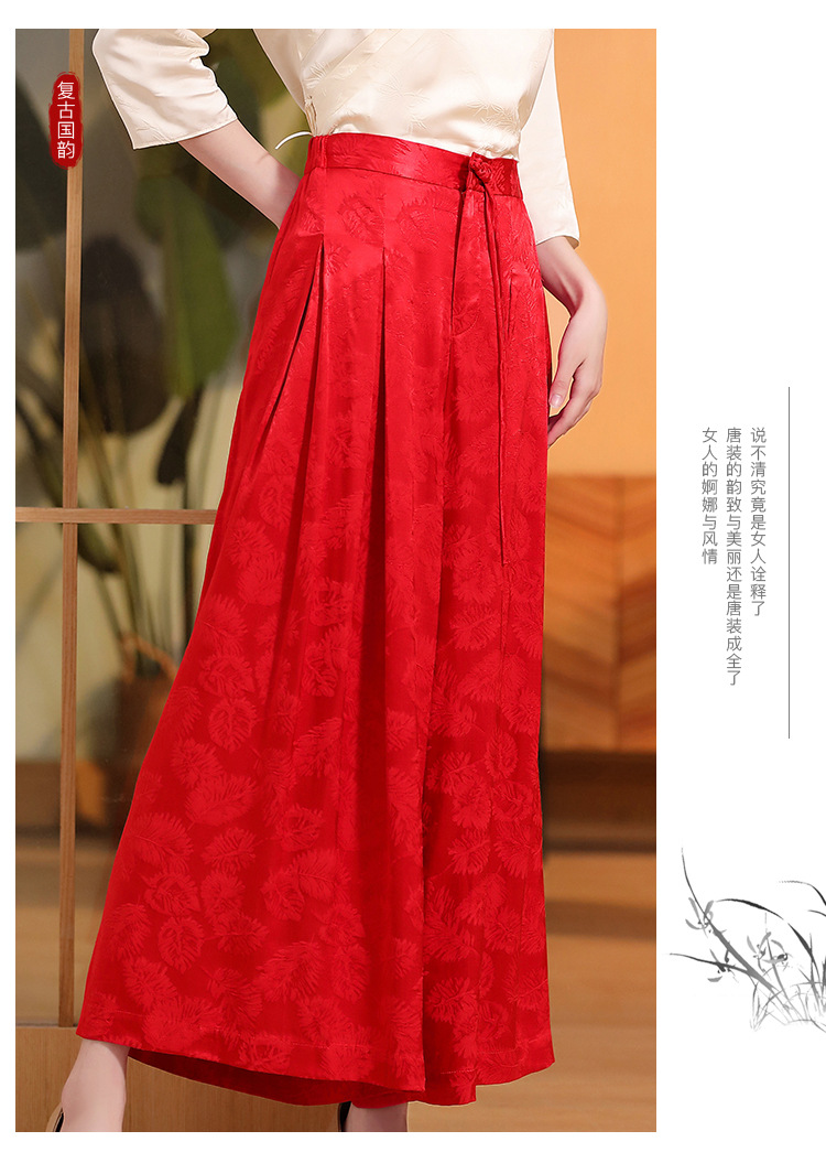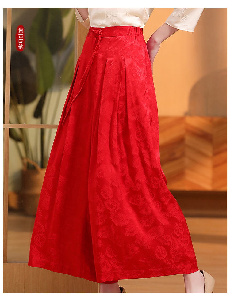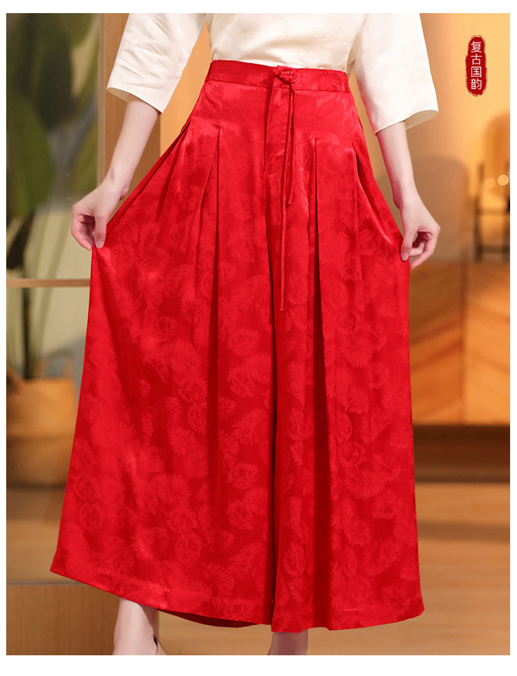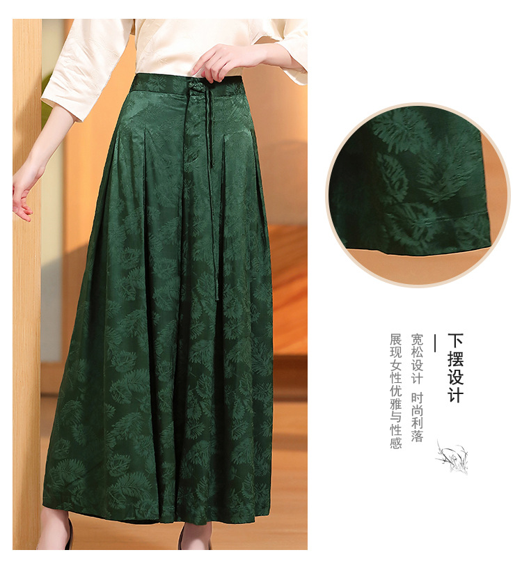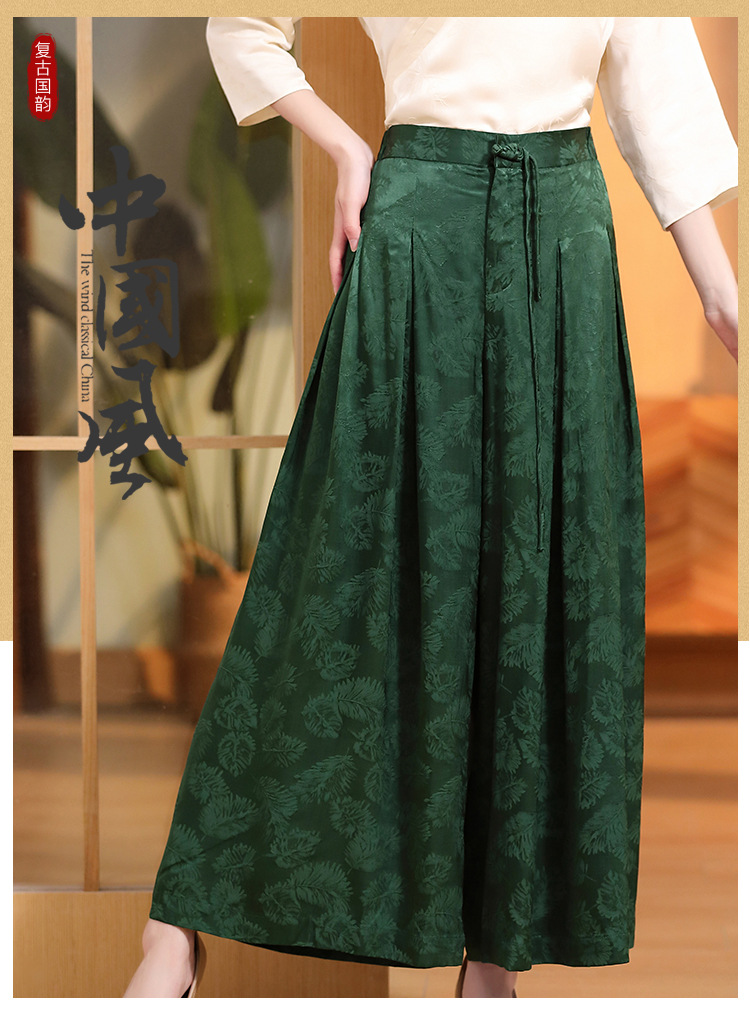 QF-230128 人丝提花长款阔腿裤女复古国风百搭宽松时尚女裤2023新款春夏女装