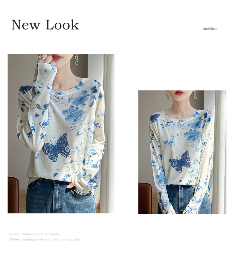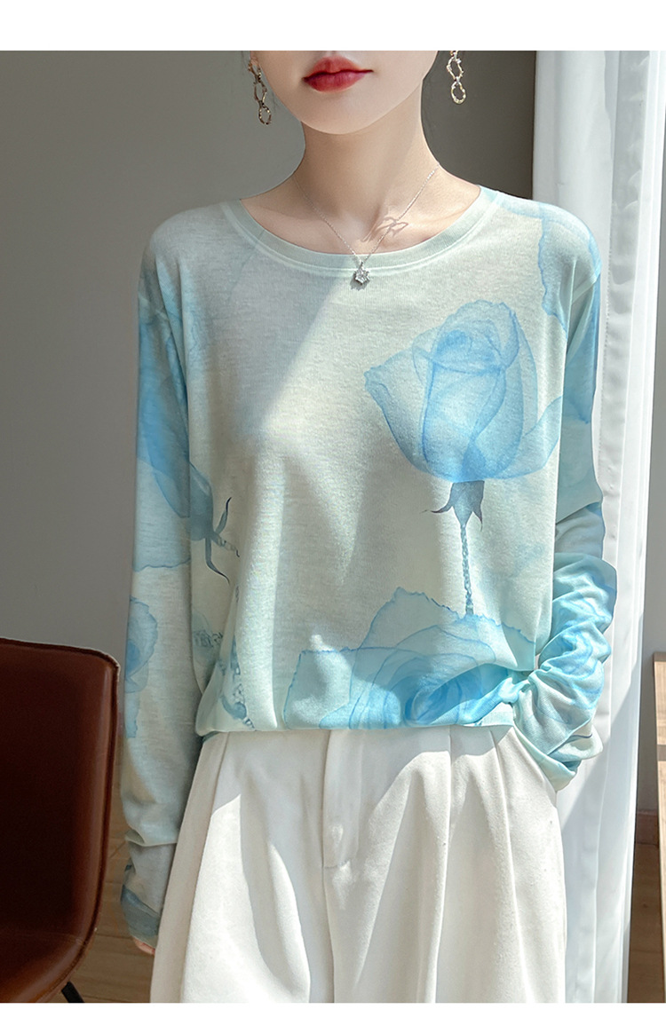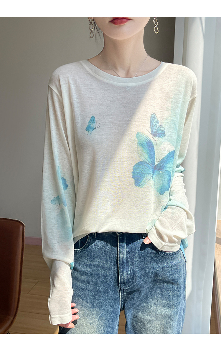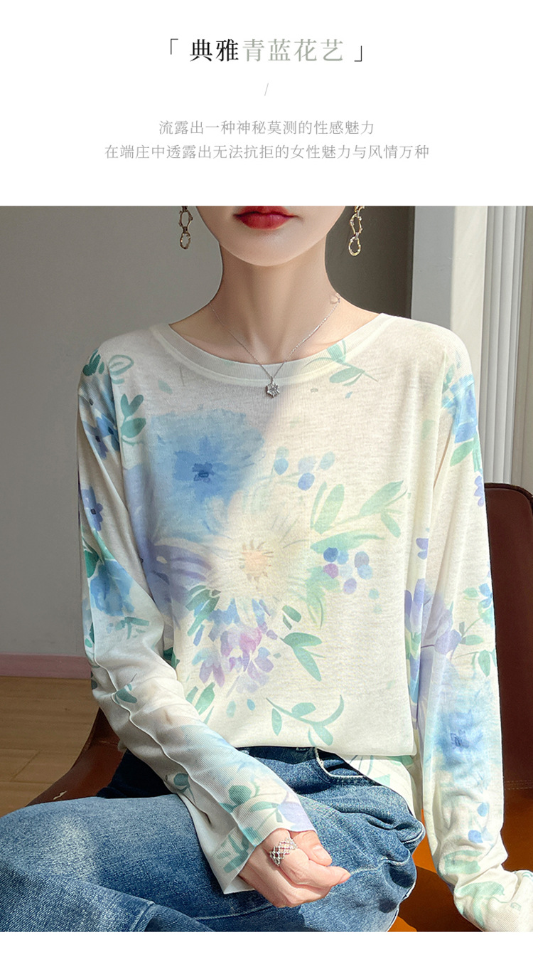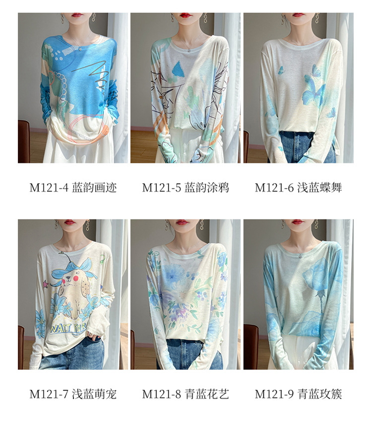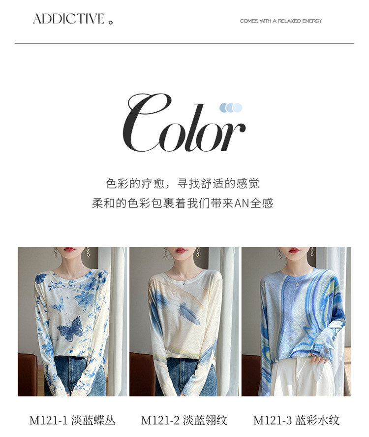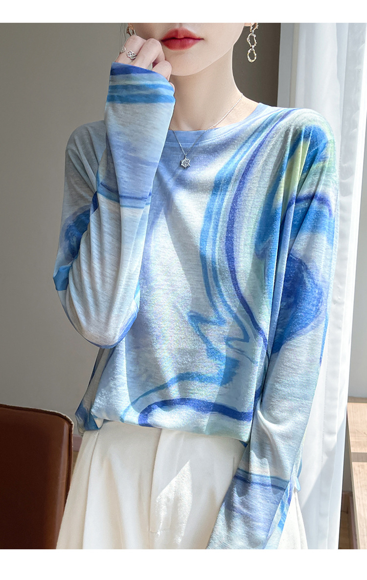 百媚生  宽松圆领渐变扎染T恤防晒薄款上衣R-M121 商品图1