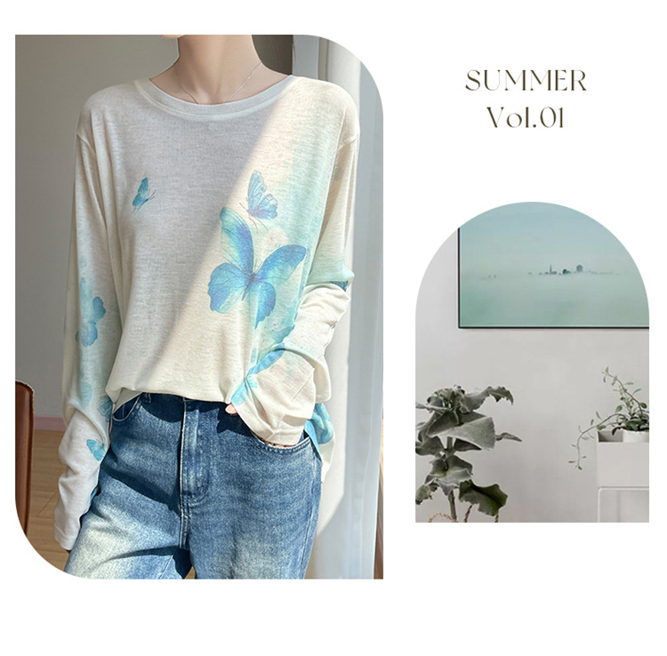 百媚生 宽松圆领渐变扎染T恤防晒薄款上衣R-M121