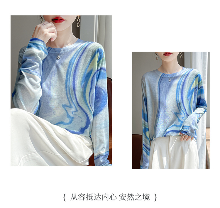 百媚生  宽松圆领渐变扎染T恤防晒薄款上衣R-M121 商品图4