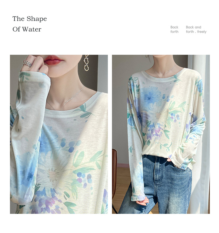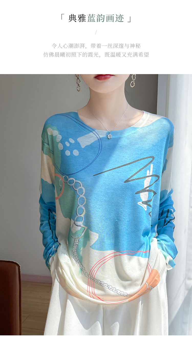 百媚生  宽松圆领渐变扎染T恤防晒薄款上衣R-M121 商品图3