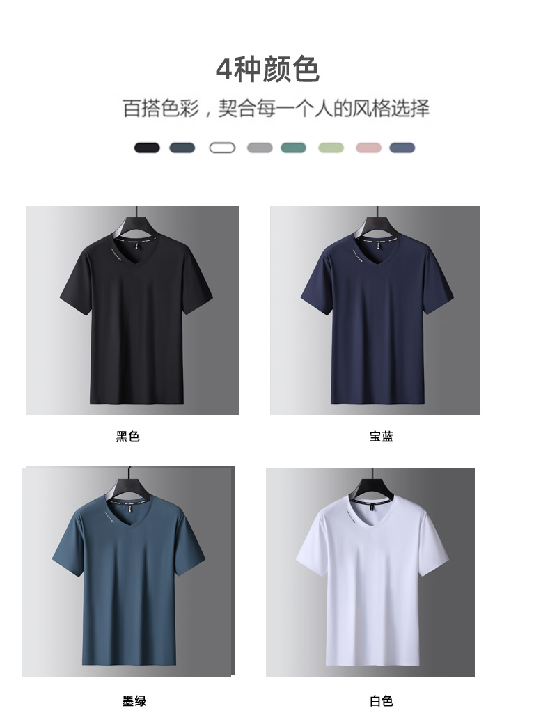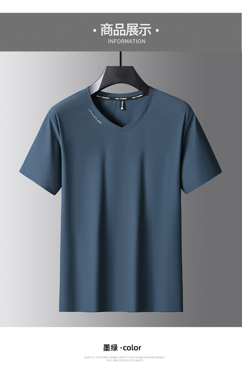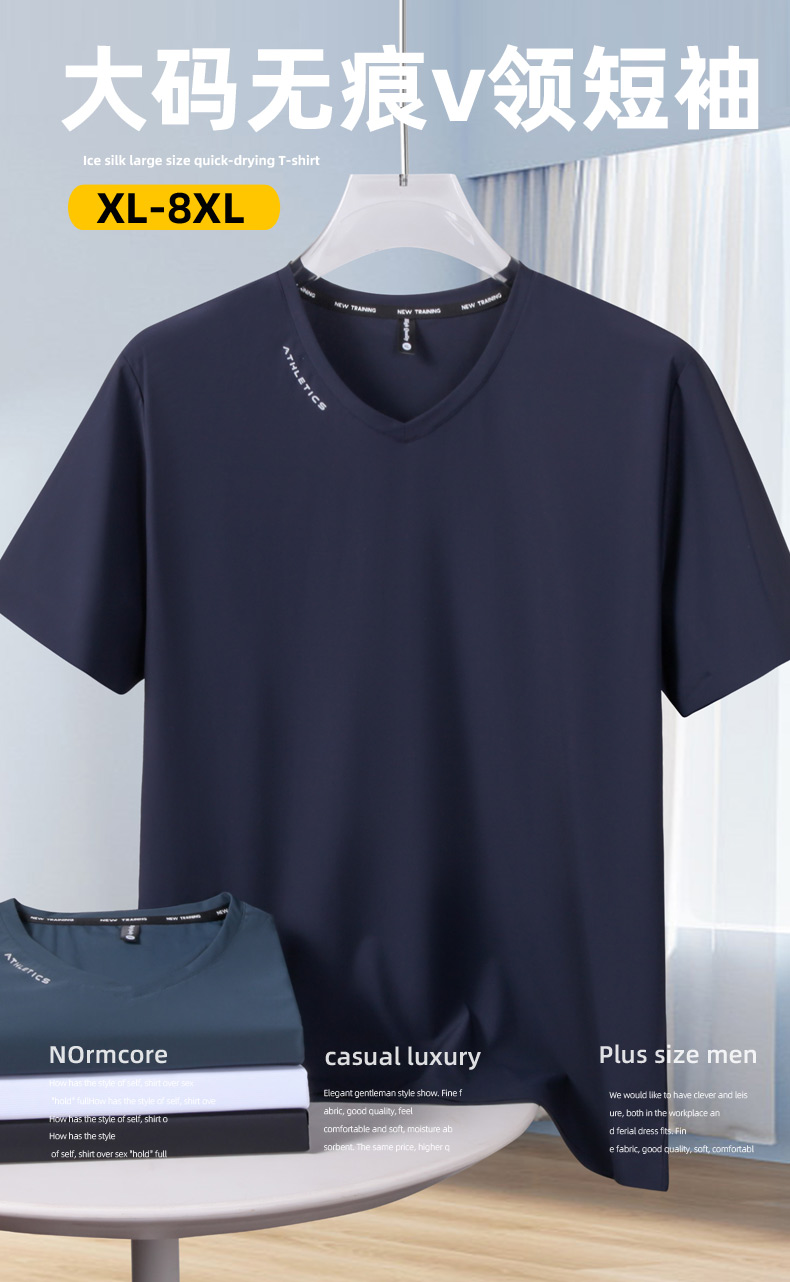 【DK】大依优型大码冰丝V领短袖T恤弹力半袖夏季加肥加大肥佬休闲运动宽松透气弹力男装上衣
