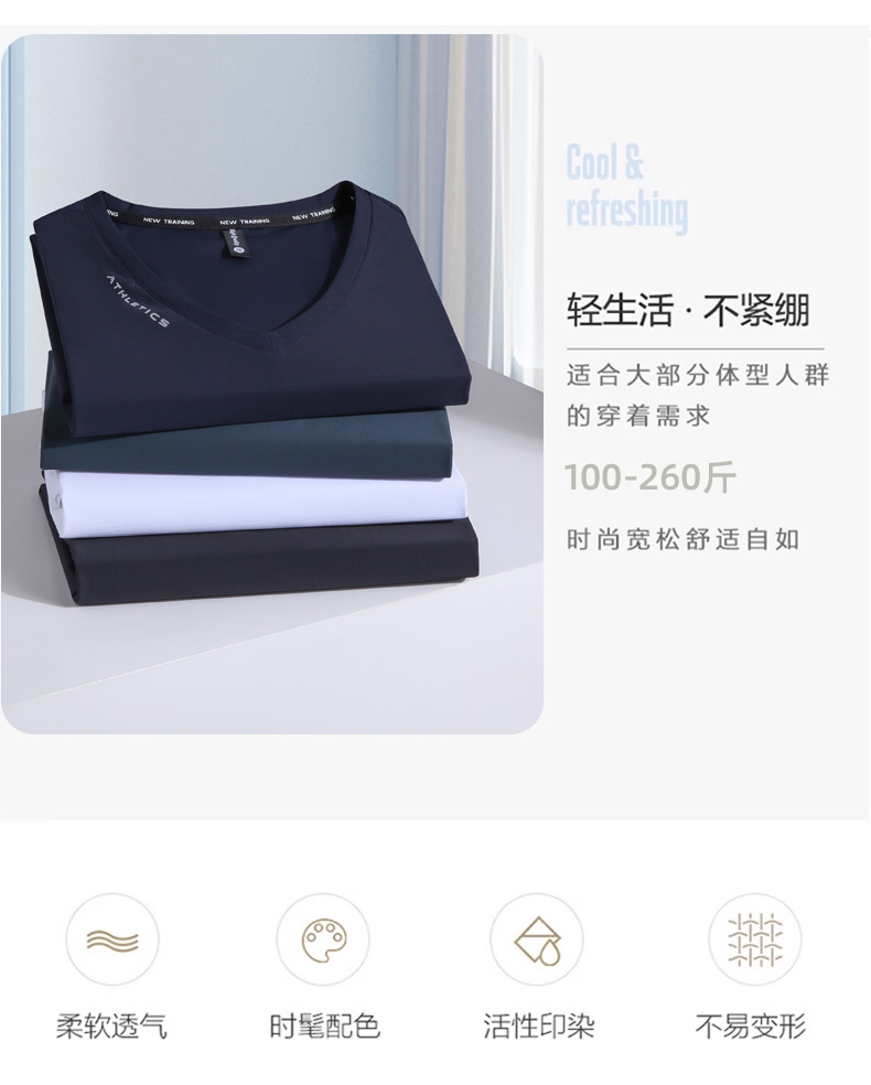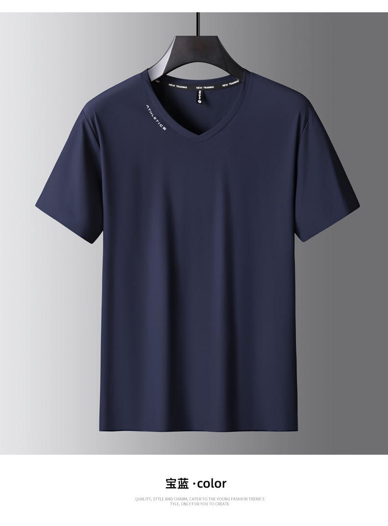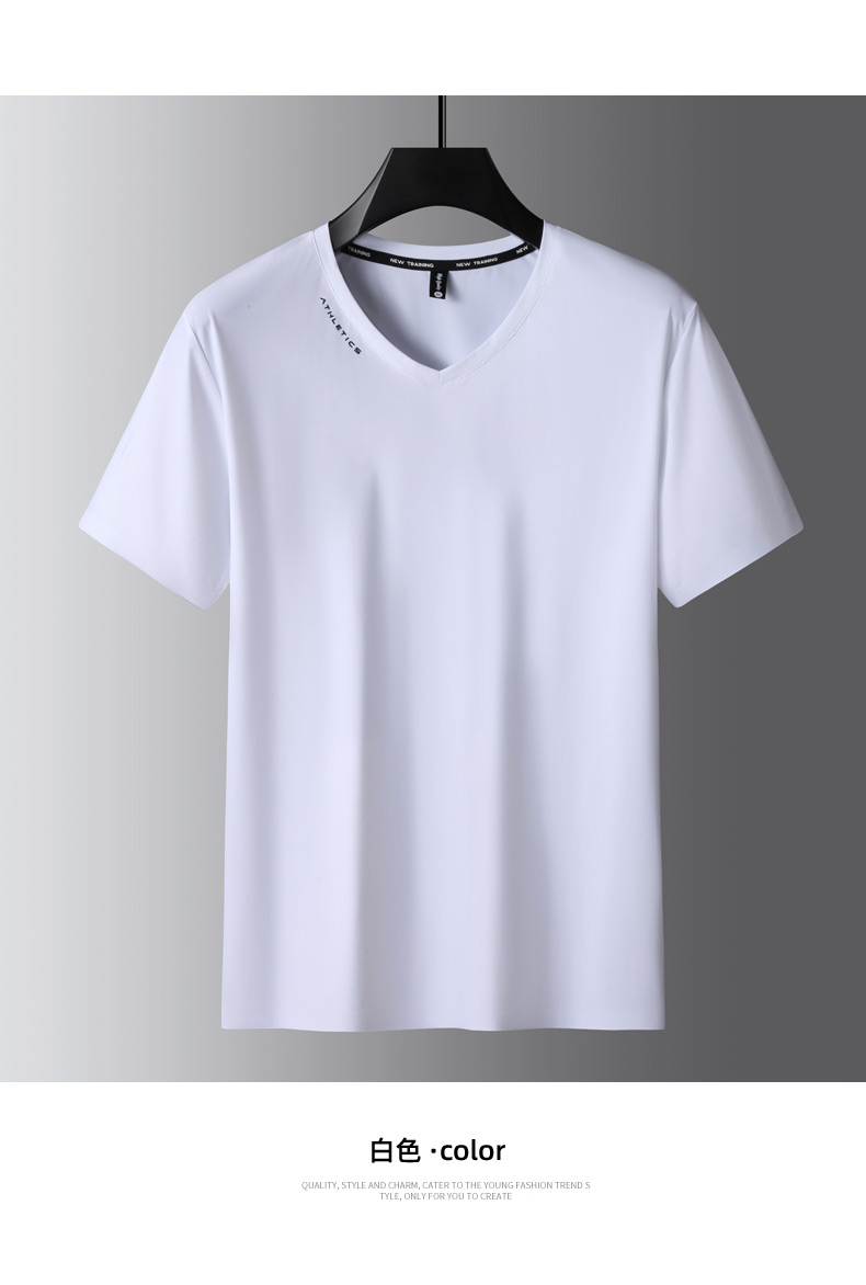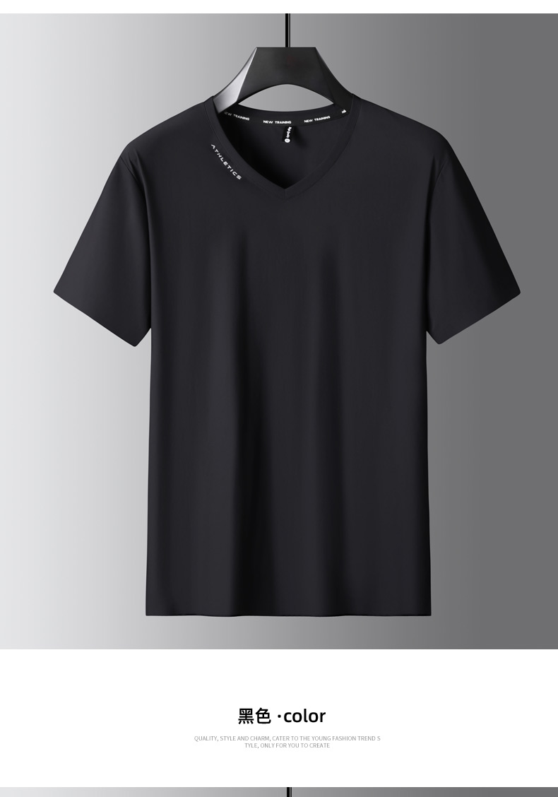 【DK】大依优型大码冰丝V领短袖T恤弹力半袖夏季加肥加大肥佬休闲运动宽松透气弹力男装上衣