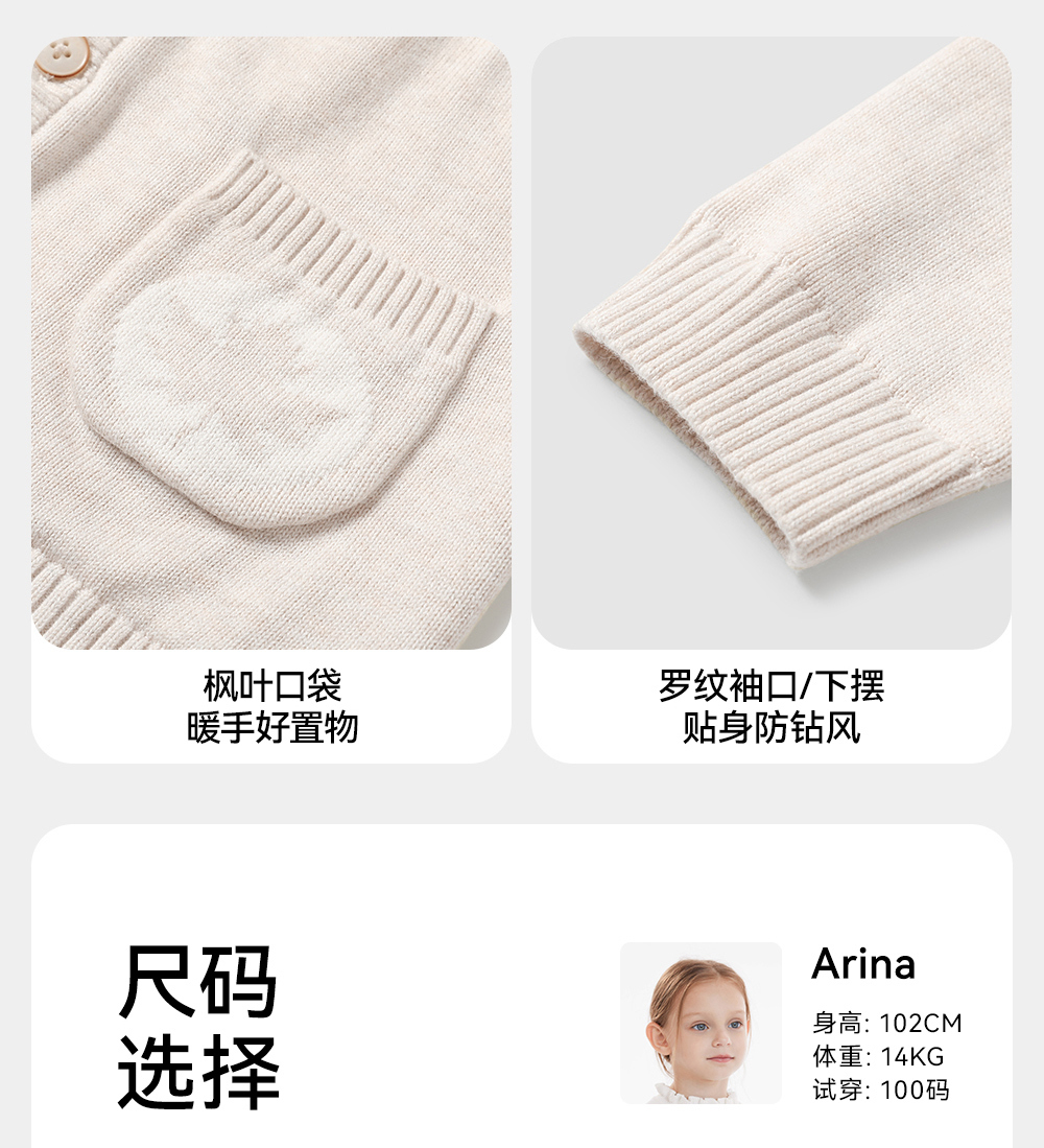 【商场同款】英氏童装毛衫外套女童针织衫开衫上衣男童毛衣