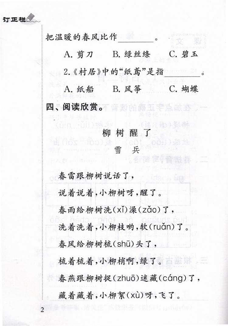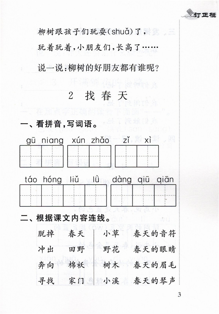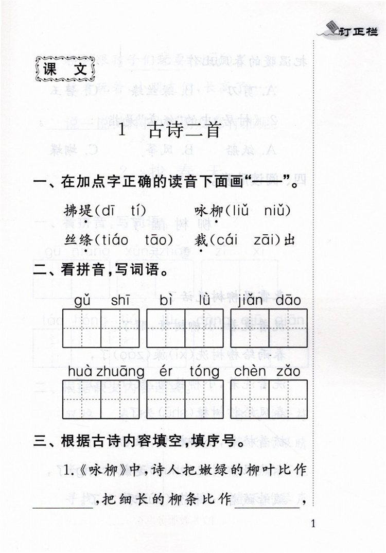 2025春 小学语文补充习题 二年级下册 2下 小学教辅