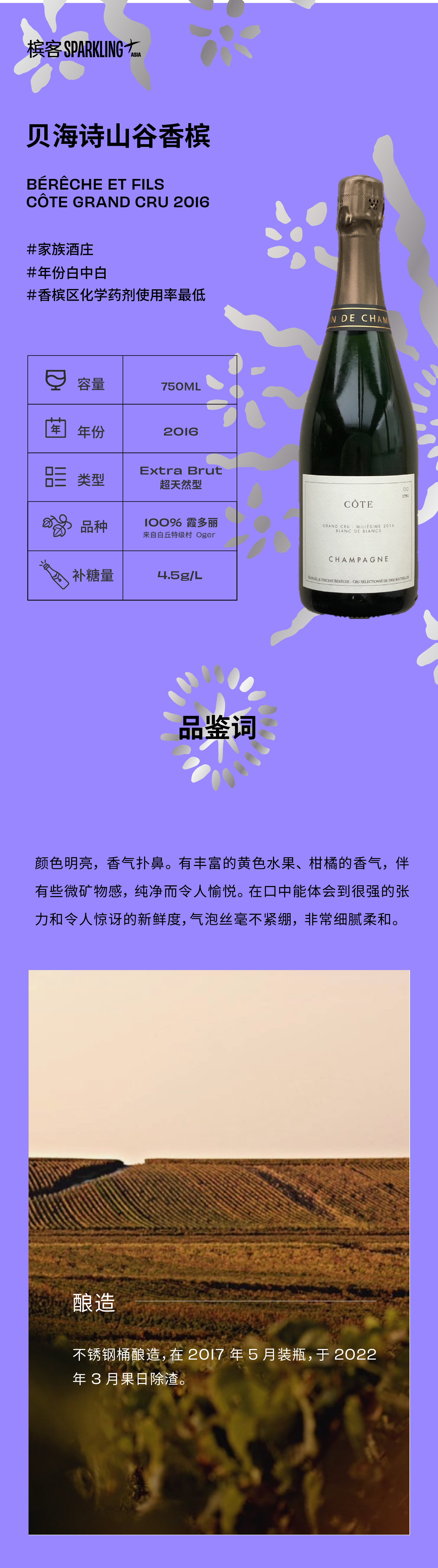 Bérêche et Fils Côte Grand Cru 2016 贝海诗山谷香槟 2016