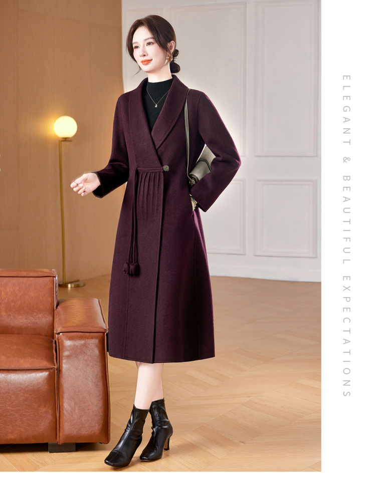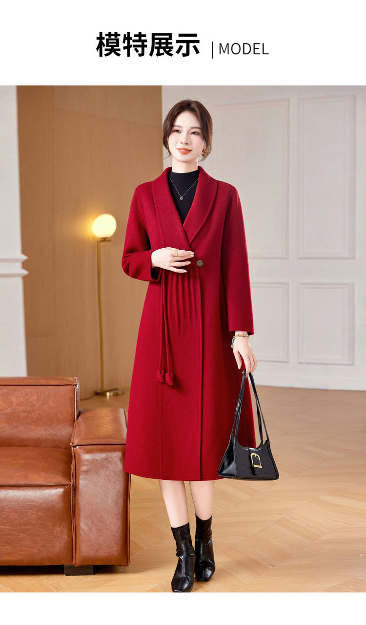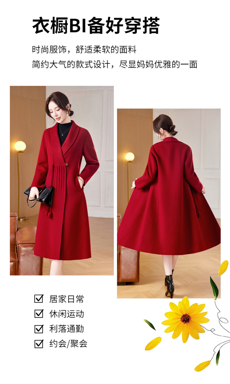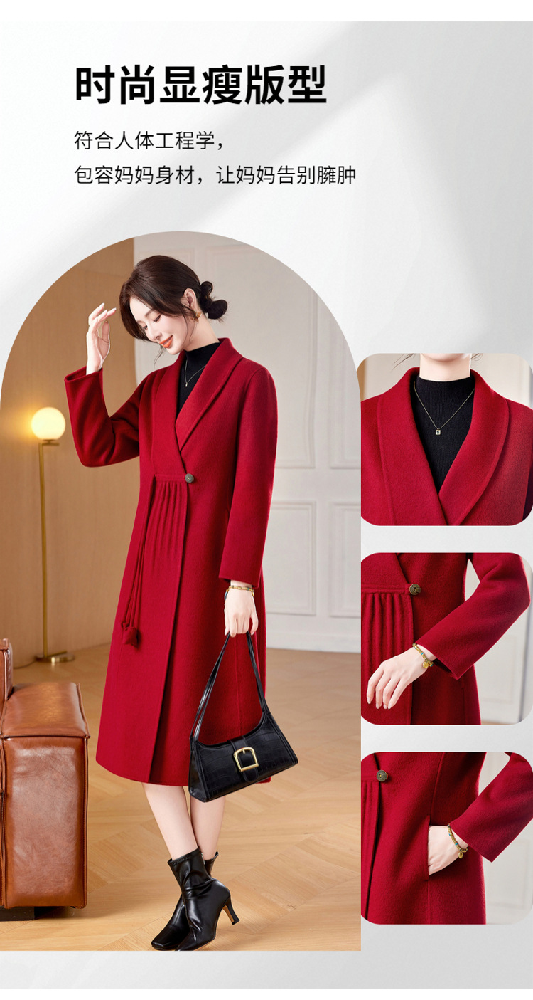 ZZ 8825双面绒羊毛大衣中长款妈妈秋冬高端毛呢外套