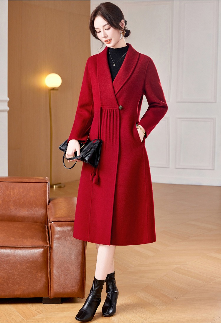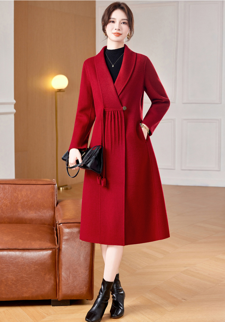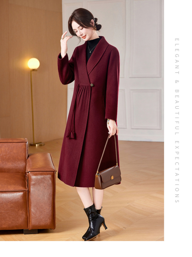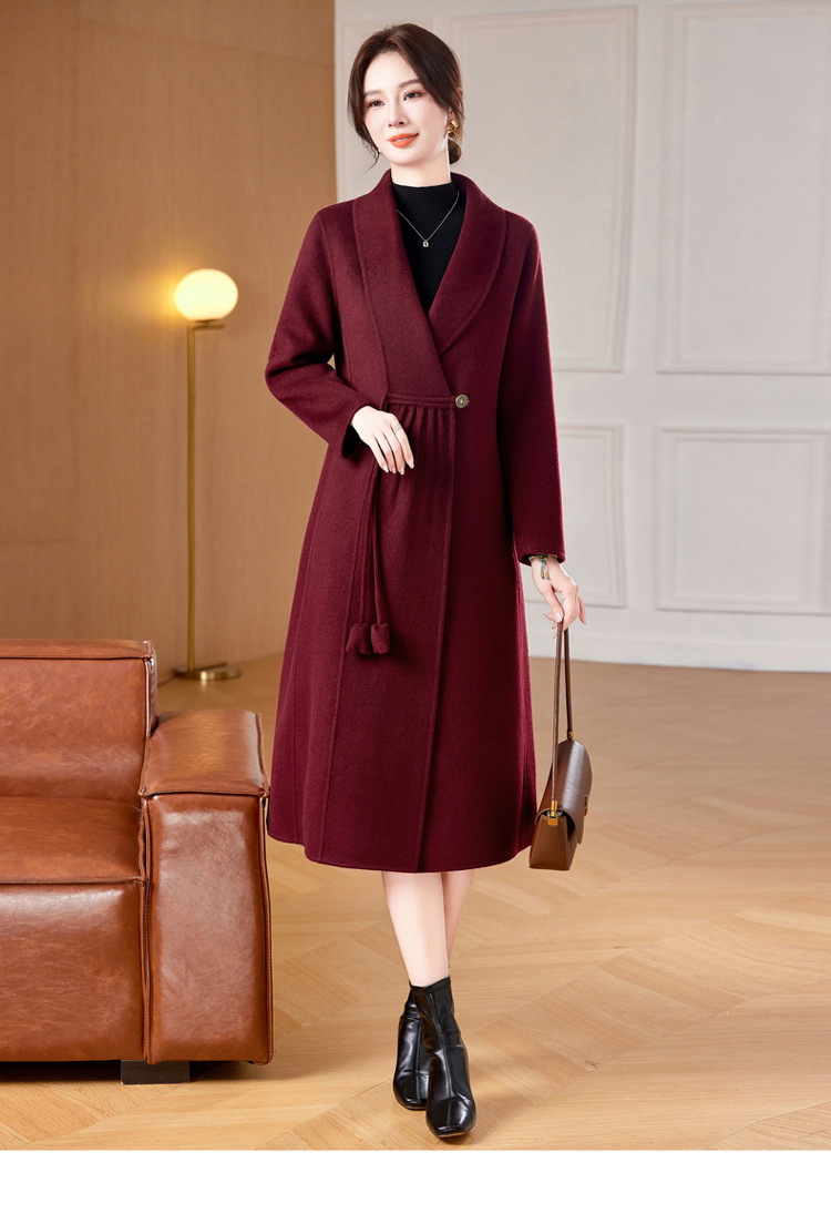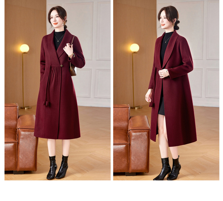 ZZ 8825双面绒羊毛大衣中长款妈妈秋冬高端毛呢外套