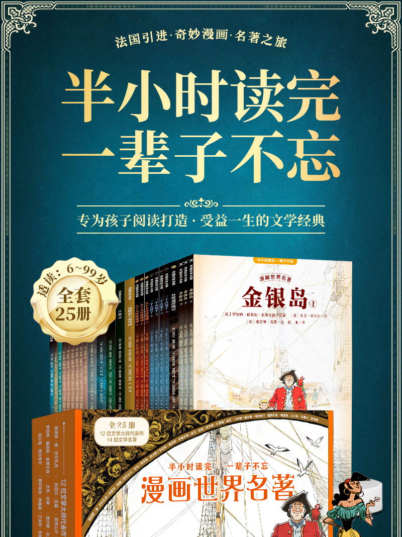 《漫画世界名著》礼盒装全25册 | 14部世界经典一次收录,本本高分、精彩好读,半小时一本,专治孩子不爱读名著,眼界、见识全面升级